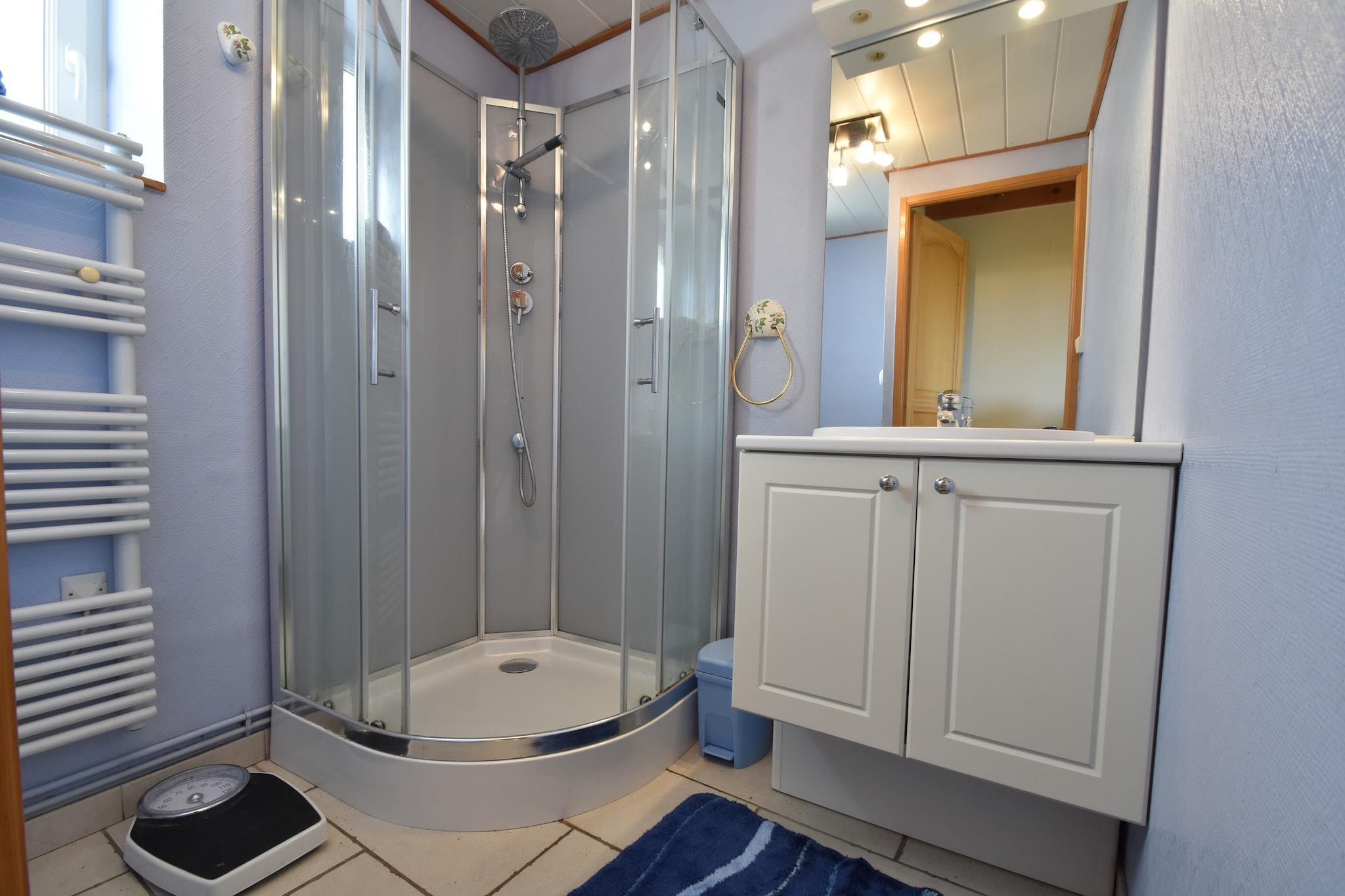 Ground floor: (open kitchen(electric kettle, coffee machine(pads), oven, microwave, dishwasher, fridge-freezer), Living/diningroom(TV, dining table, stove, seating area), bathroom(shower, washbasin, toilet)) On the 1st floor: (bedroom(single folding bed, double bed(140 x 190 cm)), walk-through bedroom(double bed(140 x 190 cm))) freezer, bathtub or shower, washing machine, heating(electric), terrace(private), garden(private, fenced), bicycle storage, garden furniture, sun loungers, BBQ, parking, deckchairs, parasol, play equipment, children's bed, high chair, ironing board