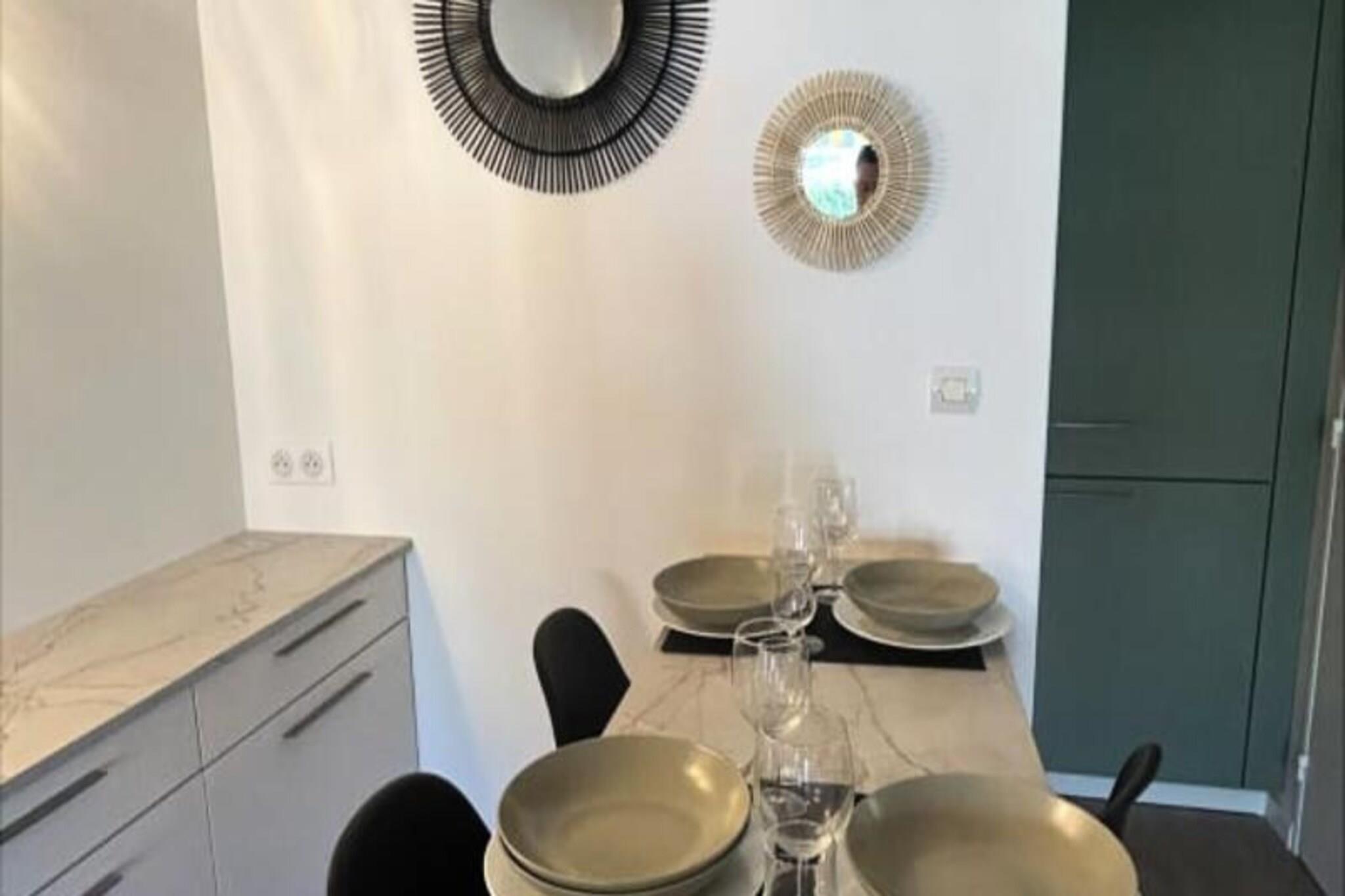 This modern, fully air-conditioned apartment is the perfect retreat for up to four guests, with air conditioning in every room to ensure a comfortable stay. It features a spacious living room, a well-equipped kitchen, and two separate bedrooms. The property is pet-friendly, making it an ideal choice for those traveling with furry companions. A private deposit is required for added security during your stay. Located just 100 meters from the beach, this apartment offers easy access to the best of the coastal area. Nearby, you’ll find a variety of shops, cafes, and restaurants, providing all the essentials for a relaxing vacation. For outdoor enthusiasts, there are opportunities to rent bikes, paddles, or take part in kitesurfing lessons. The region also boasts picturesque cycle paths that wind through ponds and villages, and visitors can spot the stunning pink flamingos. Inside the apartment, you’ll find a well-equipped kitchen with everything you need to prepare your meals, as well as a modern bathroom with a large shower. Whether you’re enjoying a meal in the intimate outdoor space or relaxing indoors, this accommodation offers a perfect balance of comfort and convenience for your stay.