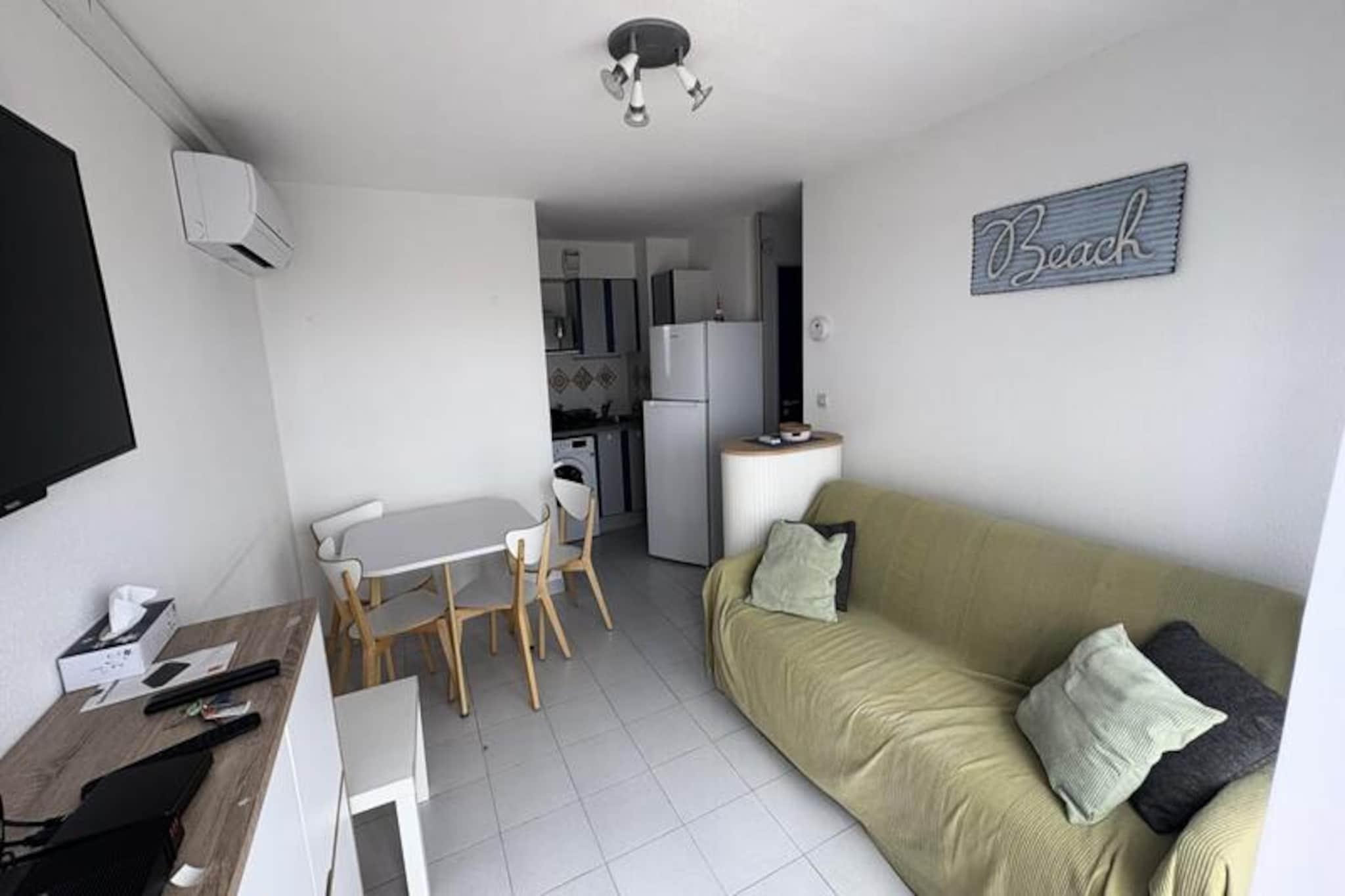 Wake up to the gentle sound of waves and the warm Mediterranean breeze in this charming one-bedroom apartment, perfectly situated in the heart of coastal France. Perched on the third floor of a secure residence with elevator access, this air-conditioned retreat offers a serene escape with a private terrace boasting breathtaking panoramic views of the sea and surrounding landscape. Whether you're sipping your morning coffee or enjoying a sunset aperitif, the terrace is your front-row seat to the beauty of the French Riviera. Inside, the apartment is thoughtfully designed for comfort and convenience. The cozy bedroom invites restful nights, while the modern bathroom ensures a refreshing start to your day. The living space flows seamlessly onto the terrace, creating a bright and airy atmosphere. With air conditioning to keep you cool during the balmy summer months, this apartment is a haven of relaxation after a day of exploring. Step outside, and you'll find yourself just 50 meters from the golden sands of the beach and 100 meters from the bustling port. Stroll along the avenue lined with local shops, where you can pick up fresh produce, artisanal goods, or a bottle of local wine. The nearby train station makes it easy to explore the region, from charming coastal villages to the vibrant cities of the south. This apartment is the perfect choice for couples or solo travelers seeking a blend of tranquility and accessibility. Whether you're here to unwind by the sea or embark on cultural adventures, this idyllic retreat offers the best of both worlds.