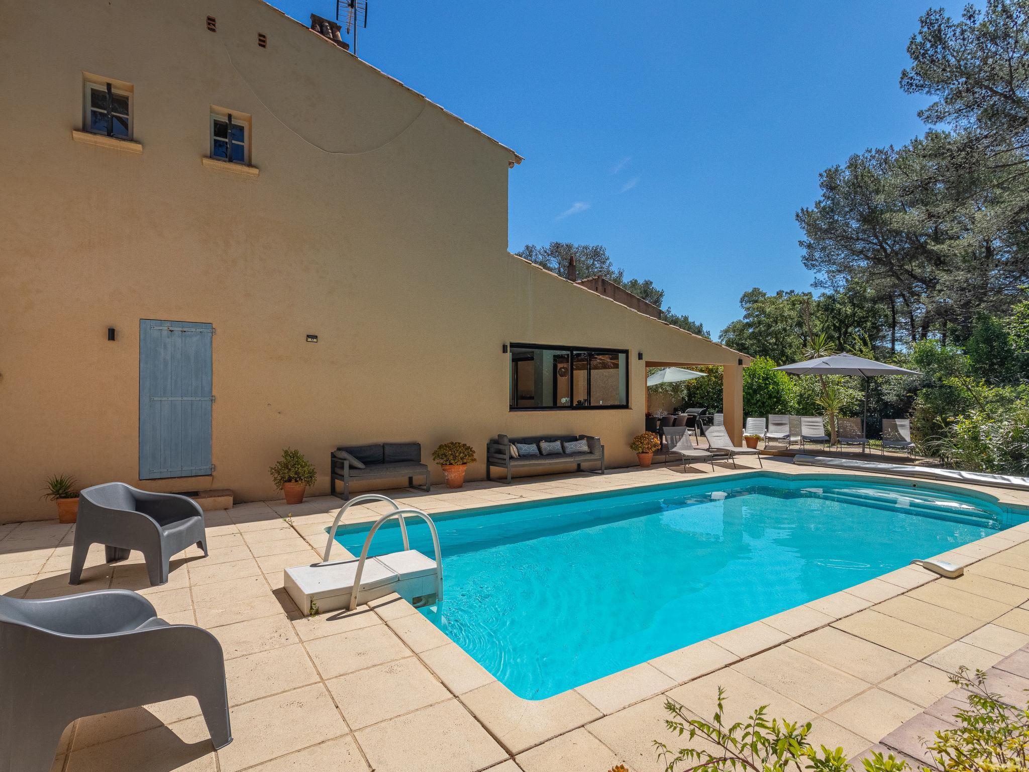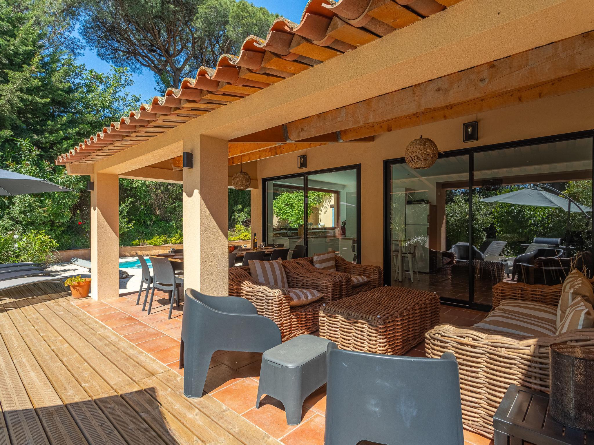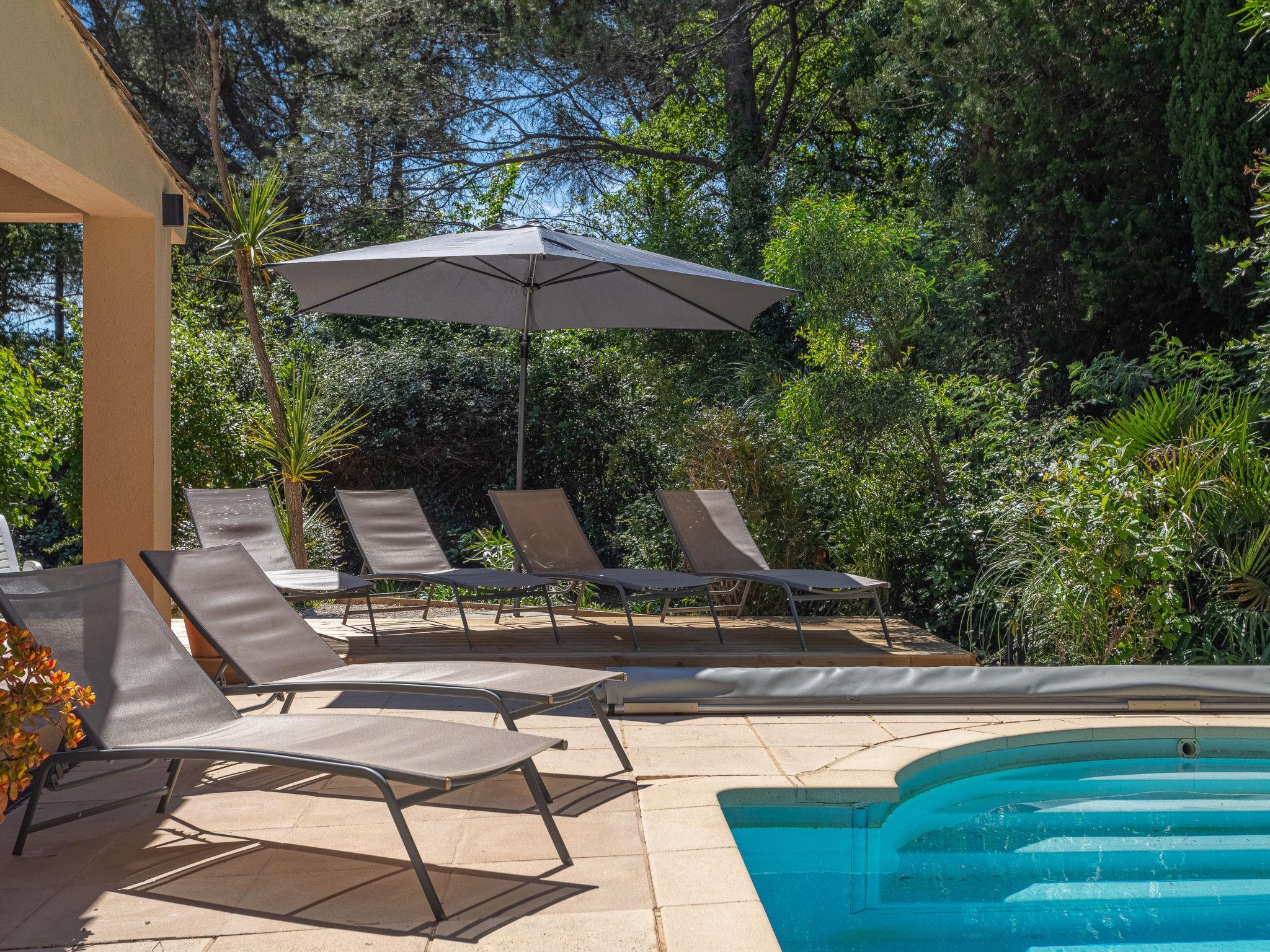 Villa "Les Mimosas". Property composed of main house and outbuilding, outside the resort, 4 km from the centre of Cogolin, 2 km from the sea, in the countryside. For shared use: 2 swimming pools angular (20 x 10 m, seasonal availability: 01.May. - 30.Sep.). Children's pool, tennis, boccia. Private: well-kept garden, swimming pool (8 x 4 m, depth 100 - 180 cm, seasonal availability: 01.Apr. - 30.Oct.) with alarm system. Shop, grocery 800 m, supermarket 1 km, restaurant 1 km, bakery 800 m, bus stop "Font Mourier" 900 m, sandy beach "Marines de Gassin" 2 km. Sports harbour 2 km, sailing school 2 km, minigolf 2 km. Nearby attractions: Parc d'attractions Azur Park 2 km, Port Grimaud 3 km, Saint Tropez 10 km, Pampelonne 10 km, Cannes 84 km, Nice 110 km. Well-known lakes can easily be reached: Le lac de Sainte Croix 92 km. Hiking paths: Le Massif de l'Esterel 50 m. Please note: car recommended. Residence with electric gates. residence has security.