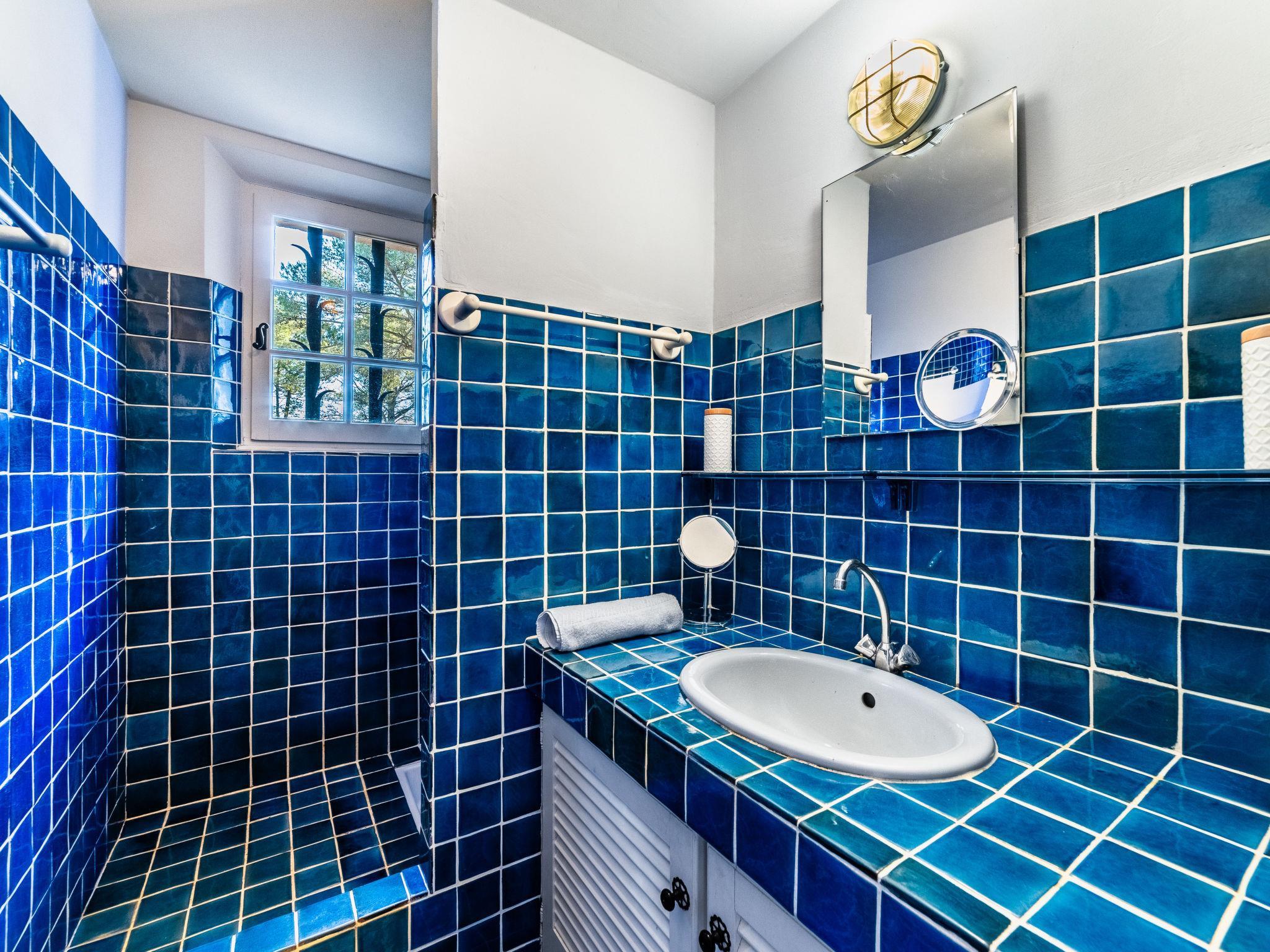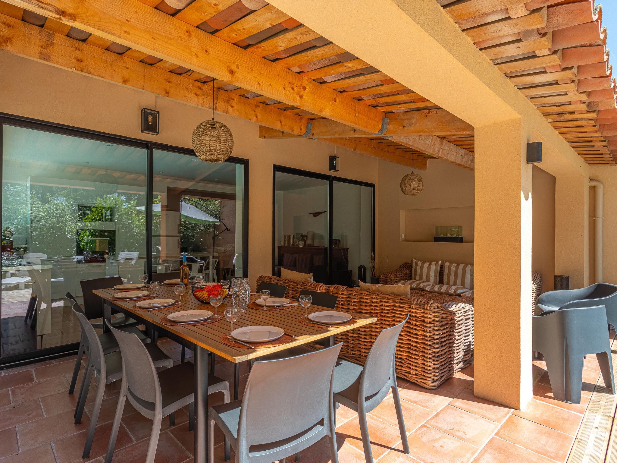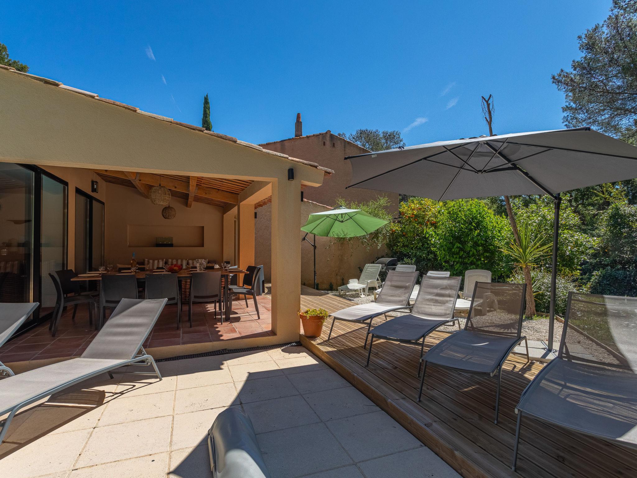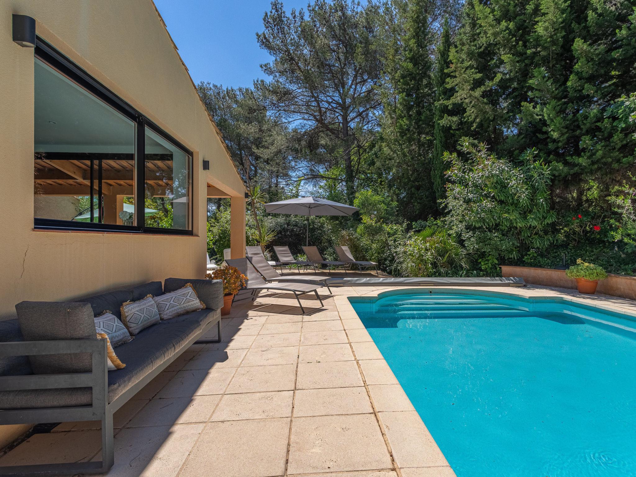 Villa "Les Mimosas". Property composed of main house and outbuilding, outside the resort, 4 km from the centre of Cogolin, 2 km from the sea, in the countryside. For shared use: 2 swimming pools angular (20 x 10 m, seasonal availability: 01.May. - 30.Sep.). Children's pool, tennis, boccia. Private: well-kept garden, swimming pool (8 x 4 m, depth 100 - 180 cm, seasonal availability: 01.Apr. - 30.Oct.) with alarm system. Shop, grocery 800 m, supermarket 1 km, restaurant 1 km, bakery 800 m, bus stop "Font Mourier" 900 m, sandy beach "Marines de Gassin" 2 km. Sports harbour 2 km, sailing school 2 km, minigolf 2 km. Nearby attractions: Parc d'attractions Azur Park 2 km, Port Grimaud 3 km, Saint Tropez 10 km, Pampelonne 10 km, Cannes 84 km, Nice 110 km. Well-known lakes can easily be reached: Le lac de Sainte Croix 92 km. Hiking paths: Le Massif de l'Esterel 50 m. Please note: car recommended. Residence with electric gates. residence has security.