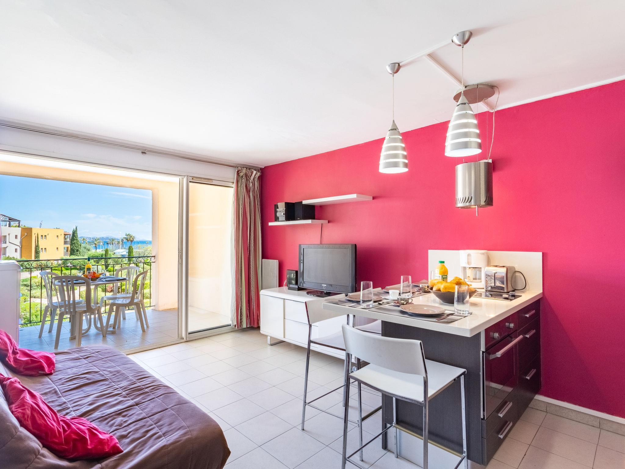 "Les Marines de Gassin 1", 2-room apartment 32 m2 on 2nd floor. Object suitable for 2 adults + 2 children. Renovated in 2016, comfortable and beautiful furnishings: living/dining room with 1 double sofabed (120 cm, length 190 cm), TV (flat screen), air conditioning. Exit to the terrace. 1 room with 1 french bed (140 cm, length 190 cm). Kitchenette (2 hot plates, oven, dishwasher, electric coffee machine, cooking island). Bathroom, sep. WC. Electric heating. Terrace 9 m2. Terrace furniture. View of the sea. Facilities: Internet (WiFi, free). Please note: maximum 1 small pet/ dog allowed. Smoke alarm. 83065000069LG