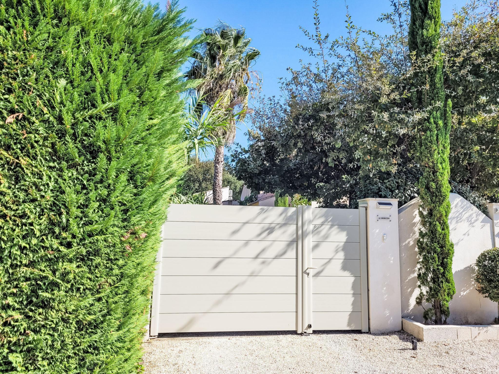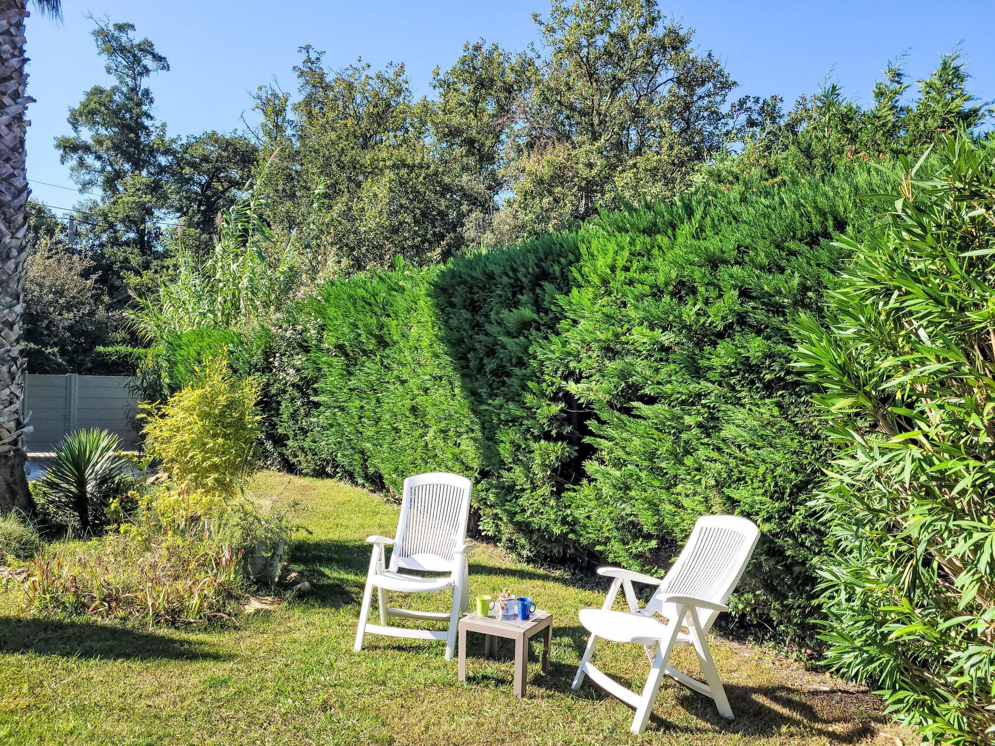 Small terraced house "Le Mimosa St Laurent". In the residential district, 4 km from the sea, 4 km from the beach. Private: garden 200 m2 (fenced) with lawn, parking (for 2 cars) on the premises. Shop 2 km, grocery 1.5 km, supermarket 2 km, restaurant 2 km, bus stop "Le Pierredon" 800 m, sandy beach "Marines de Gassin" 4 km. Sports harbour 4 km, golf course (18 hole) 4.5 km, sailing school 4 km, tennis 500 m, minigolf 4 km. Nearby attractions: Parc d'attractions Azur Park 4 km, Saint Tropez 8 km, Sainte Maxime 12 km, Plages de Pampelonne 15 km, Cannes 84 km, Nice 110 km. Well-known lakes can easily be reached: Le Lac de Sainte Croix 89 m. Hiking paths: Le Massif de l'Esterel 50 km. Please note: car recommended.