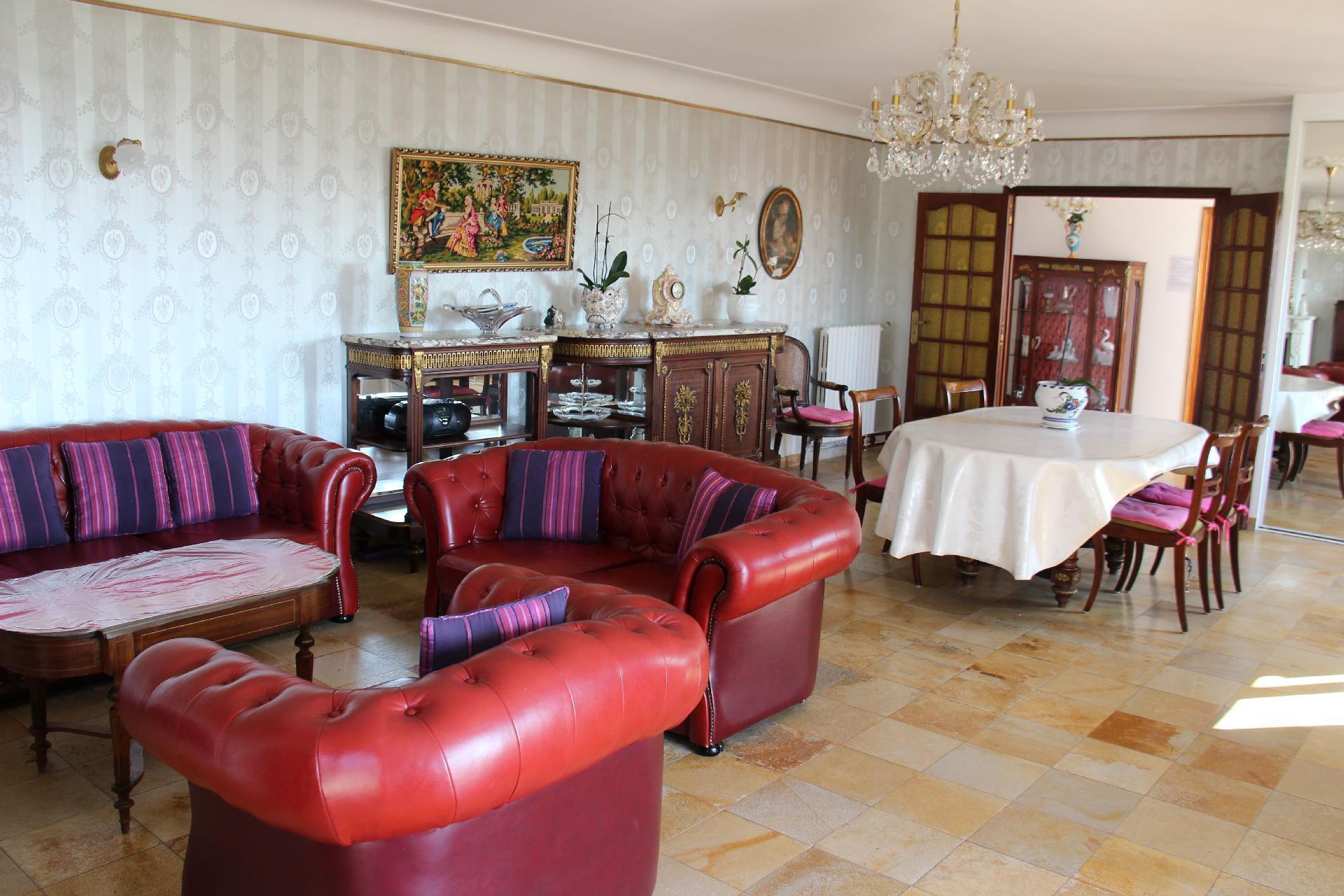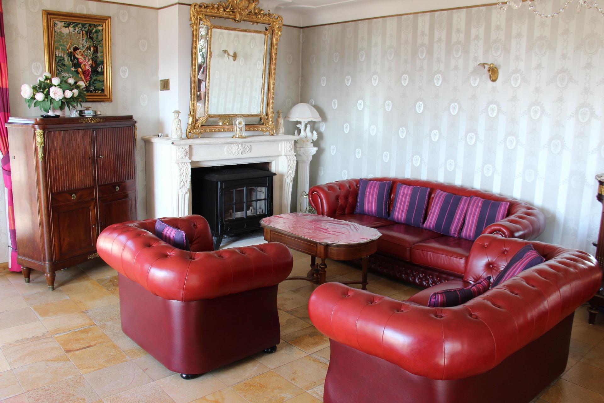 The 125 m² non-smoking flat offers plenty of space in its French-style rooms, as evidenced by the 60 m² living room. It consists of a comfortable lounge set in front of the fireplace with leather sofa and armchairs and a dining set. The spacious kitchen is fully equipped. There are three bedrooms in all, also furnished in an elegant, timeless style. Two of the bedrooms each have a double bed (160 x 200 cm), while the third has another double bed (140 x 190 cm), a single bed (90 x 190 cm) and a folding bed (80 x 180 cm). Each bedroom has its own fan. The spacious bathroom has a bath, shower, double washbasin and bidet. For safety and hygiene reasons, particular care is taken with the final cleaning of the accommodation, outside areas, terrace and swimming pool, making the rental area 600 square metres completely private.