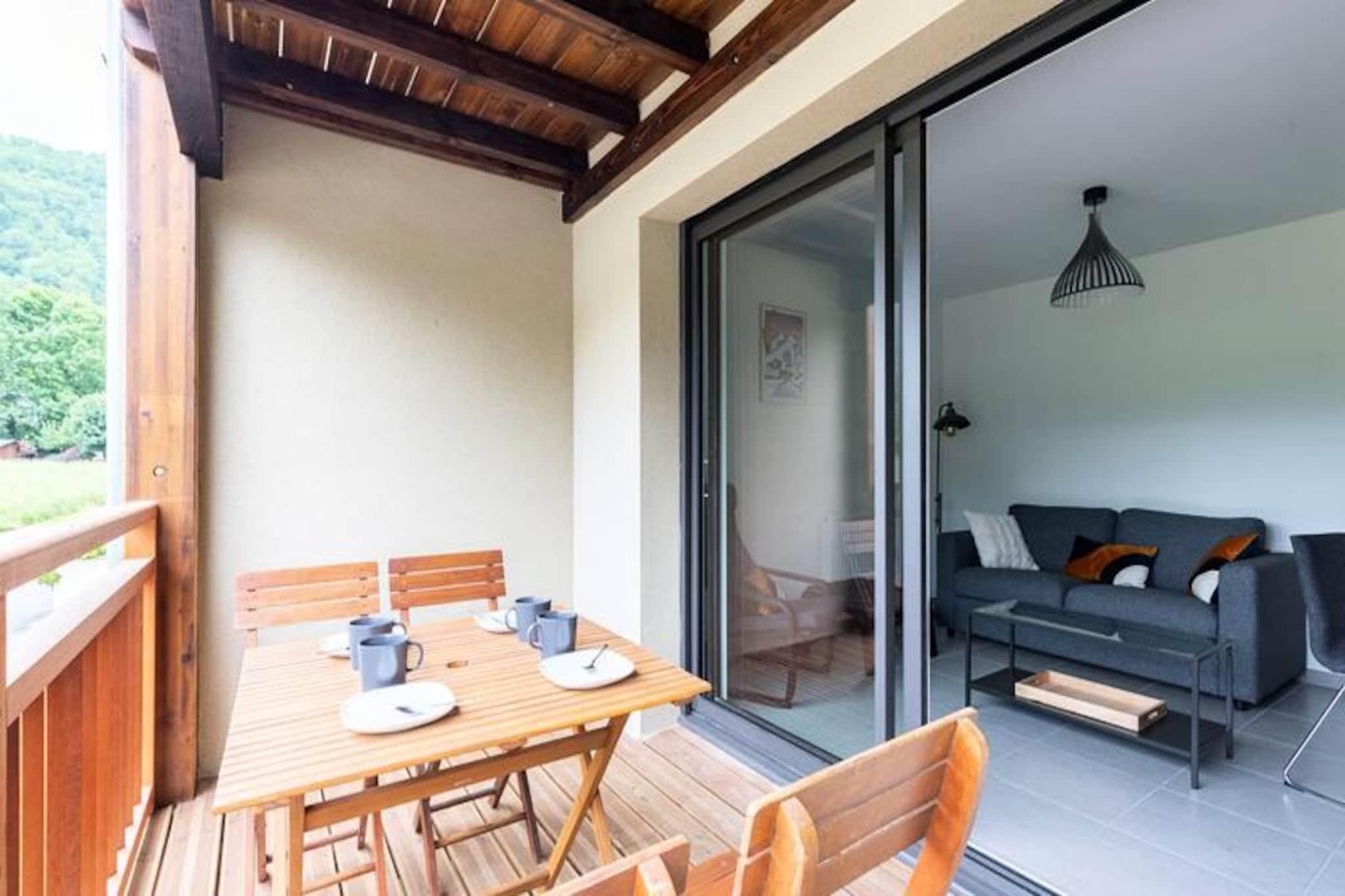 Where shimmering waters meet lush mountain landscapes, this charming apartment in Génos offers a serene escape just steps from Lake Loudenvielle. Imagine waking up to the gentle sound of nature, sipping coffee on your sunny terrace while gazing at the tranquil lake views. Whether you're seeking outdoor adventures or peaceful relaxation, this property is your gateway to the enchanting Hautes-Pyrénées region. Perfectly situated within the new residence 'Les Reflets du Lac,' it combines modern comfort with breathtaking surroundings. \n\nInside, the apartment is thoughtfully designed to accommodate up to four guests. The open-plan kitchen and living room create a welcoming space for shared meals and cozy evenings. The terrace, furnished for outdoor enjoyment, invites you to soak in the sunshine and fresh mountain air. With one bedroom featuring a double bed and another with two bunk beds, families or small groups will find ample space to unwind. Additional amenities include private parking and secure bicycle storage, ensuring convenience for every guest. \n\nStep outside and discover the vibrant offerings of Lake Loudenvielle, just 50 meters away. From pedal boats and water parks to charming restaurants, the area is brimming with activities for all ages. Explore scenic trails, indulge in local cuisine, or simply relax by the water's edge. For cycling enthusiasts, the secure bike storage makes it easy to embark on thrilling rides through the picturesque surroundings. \n\nWhether you're drawn by the allure of the lake or the majestic mountain backdrop, this apartment promises a memorable stay in one of France's most captivating regions. With modern comforts and an unbeatable location, it's the perfect choice for your next getaway.
