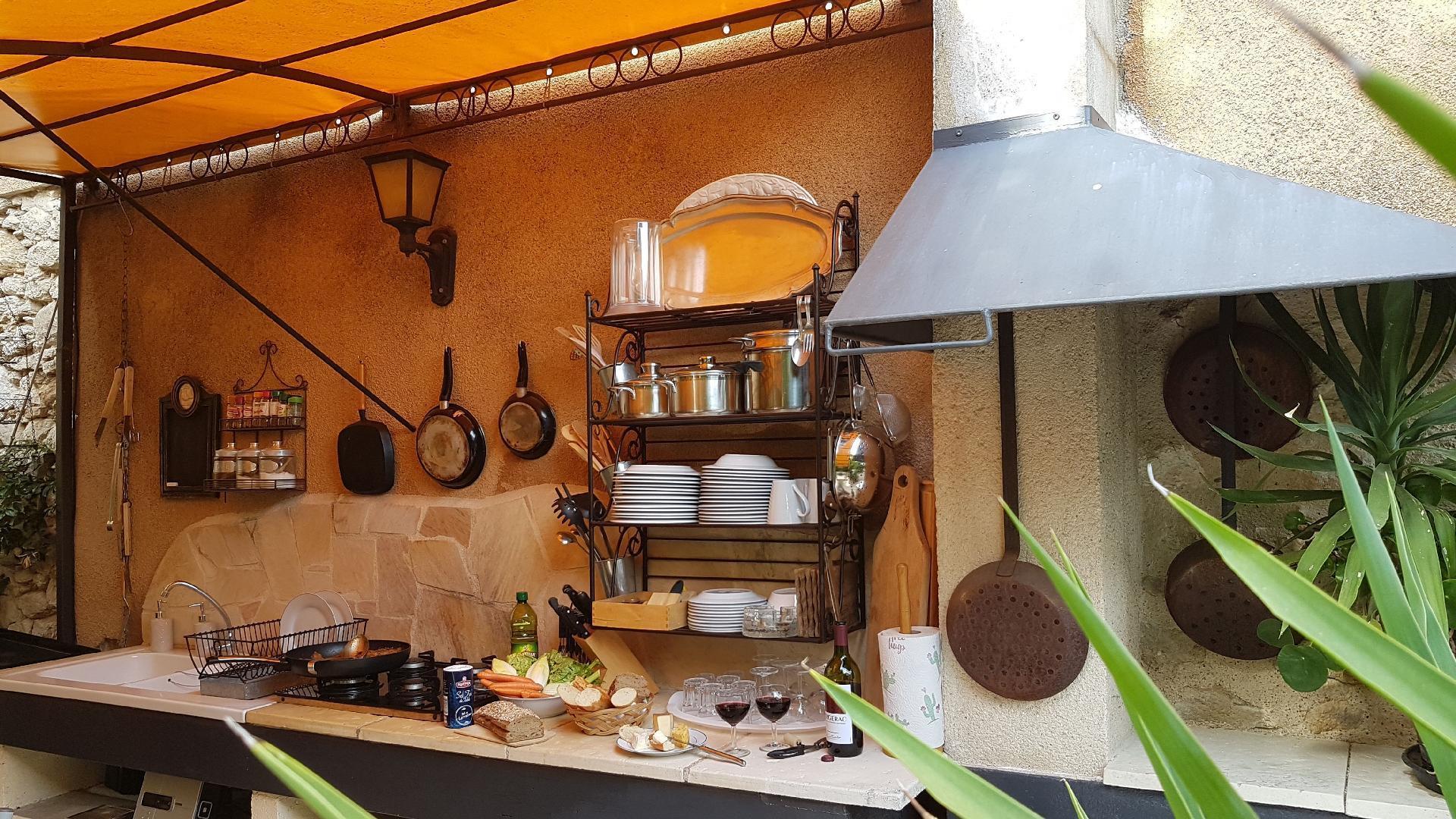 Garden and outdoor facilitiesRecreational facilities at the property : outdoor pool for communal useGarden equipment : garden furniture available, barbecue, bird's nest swingIn the village: tennis court, just behind the inner courtyard is access to the Mediterranean communal garden. Our large pool with a diameter of 5.50 m and the garden shower offer cooling on hot days and the lawns invite you to sunbathe or relax in the shade of the fig trees and review your holiday experiences.many secluded seating areas, including by the idyllic stream, invite you to linger and let the uniqueness of southern nature take effect on you.there is also a bird's nest swing in the garden. We are happy to provide a paddling pool for small children.
