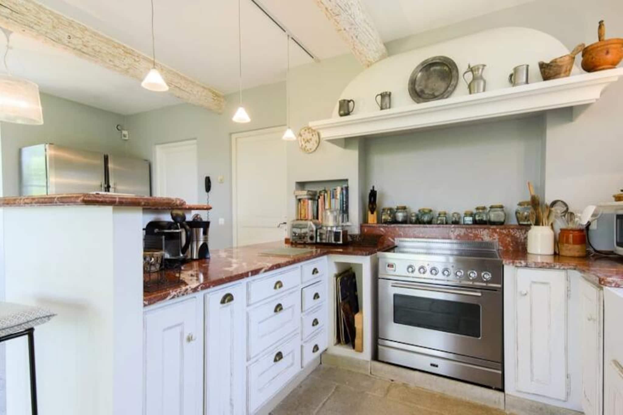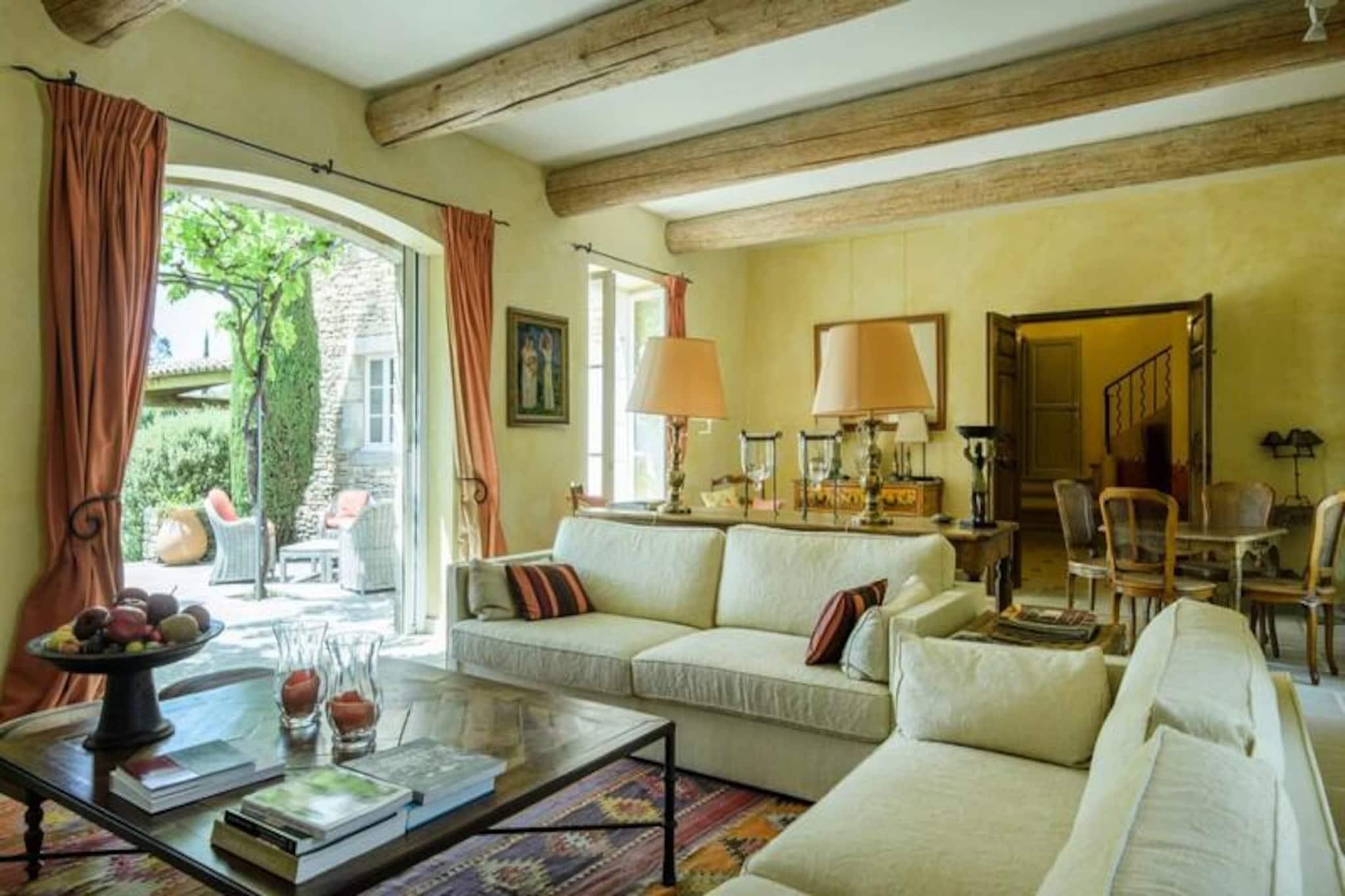 This beautifully renovated 300m² Provençal mas, nestled within a magnificent property near Gordes in the Luberon, accommodates up to 12 guests in six air-conditioned bedrooms. It offers a dominant position and creates an intimate atmosphere, perfect for a relaxing getaway. Located steps from the center of Gordes, one of the most beautiful villages in the Luberon, this holiday home provides easy access to shops, cafes, bistros, and the local market. It’s an ideal base for exploring the Luberon Regional Natural Park, including the Bories village and Sénanque Abbey. Nearby perched villages like Roussillon, Lacoste, Bonnieux, and Ménerbes are also worth visiting. The mas features a living room with a fireplace, a dining room, a fully equipped kitchen, six bedrooms, and multiple bathrooms. Outside, there are several terraces, a garden with olive trees and a fountain, a secure 12x7m heated swimming pool, a private garage, and parking. Linens, towels, and bathrobes are provided, beds are made upon arrival, and toiletries and refreshments are provided. Four hours of weekly cleaning are included. Optional services include a private chef, extra cleaning, wine tours, bike rentals, and grocery delivery. A manager is available to assist guests. A deposit is required.