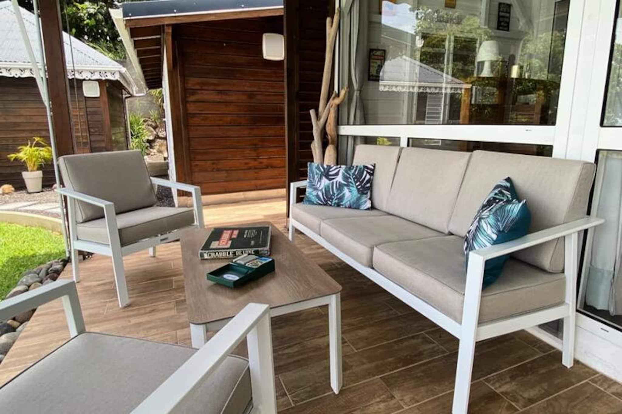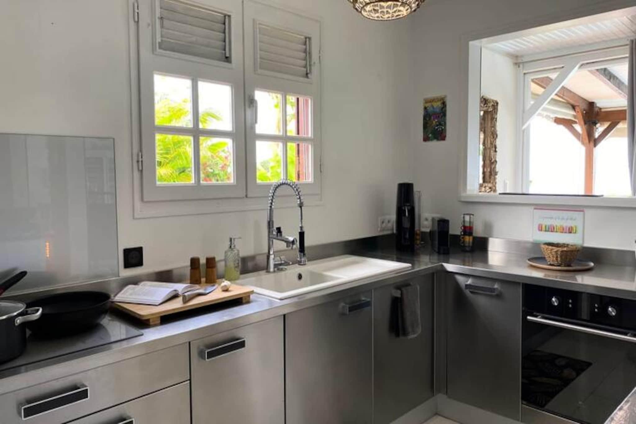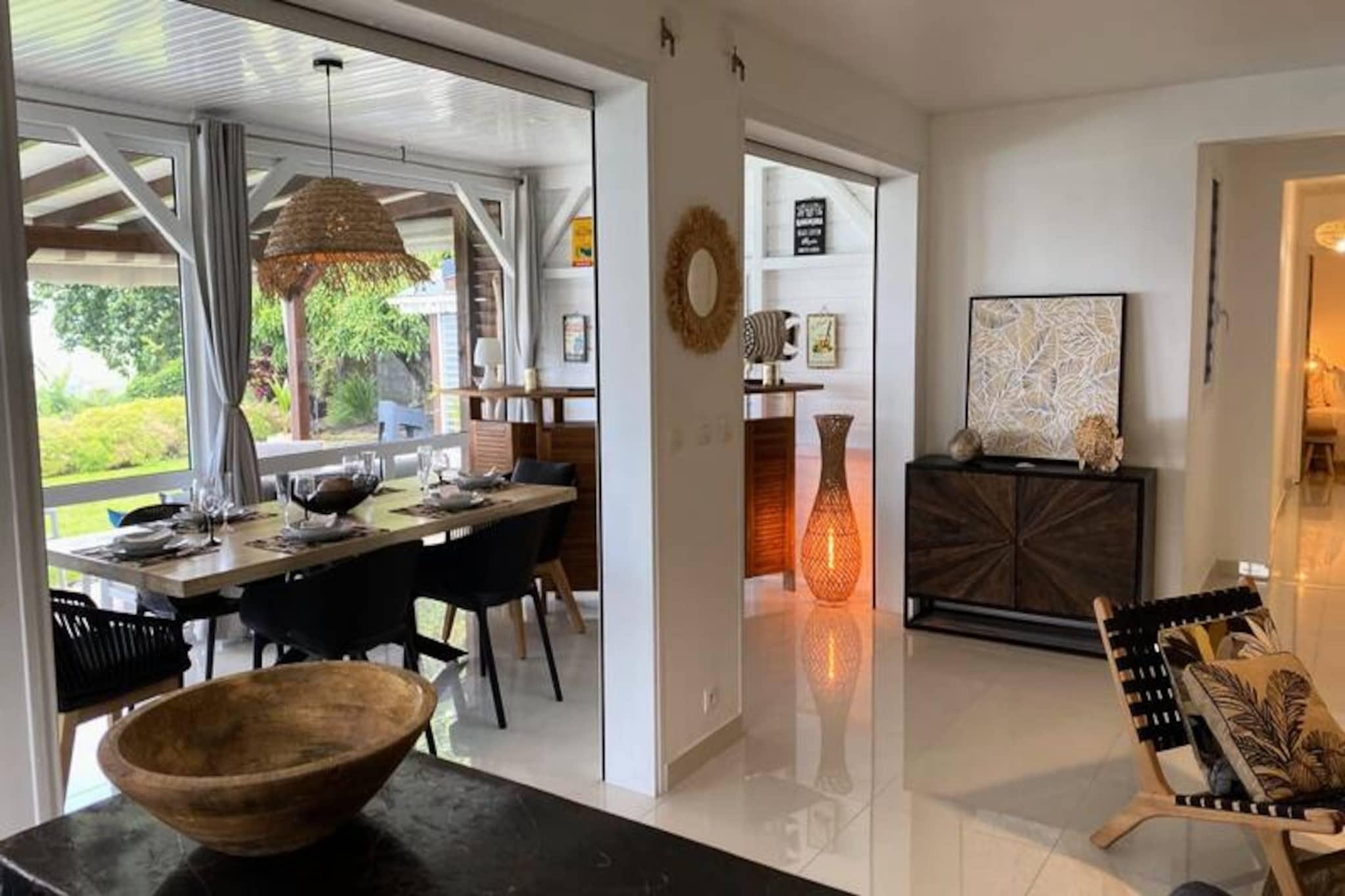 In the lush embrace of Gourbeyre, where verdant hills meet the azure Caribbean Sea, Villa Le Nid des Colibris offers a serene escape for those seeking tranquility and natural beauty. This 4-star villa, with its private pool and breathtaking 180° sea views, is a haven of comfort and elegance, perfect for up to six guests. Imagine waking up to the gentle sound of tropical birds and ending your day with a sunset that paints the sky in hues of gold and crimson. Spanning 130 m², this single-story villa is thoughtfully designed to combine modern amenities with Caribbean charm. It features three air-conditioned bedrooms, including two in the main villa with cozy 140cm beds and a third in an adjoining bungalow for added privacy. The villa boasts three contemporary bathrooms and a fully equipped indoor kitchen with an oven, microwave, and even an ice maker, perfect for preparing local delicacies. For those who love dining under the stars, the outdoor kitchen and spacious terrace provide the ideal setting. A large living room with air conditioning and fans ensures cool, relaxing moments together, while the private pool invites you to unwind under the warm sun. Located just minutes from Basse-Terre and close to the natural wonders of Guadeloupe, the villa is a gateway to adventure. Explore the majestic La Soufrière volcano, hike through Guadeloupe National Park to discover the Carbet Falls, or relax in the natural hot springs of Dolé. The nearby Rivière-Sens beach and marina offer opportunities for seaside relaxation and excursions. For underwater enthusiasts, the Cousteau Reserve in Bouillante is a must-visit, as are the picturesque islets of Les Saintes, just a short boat ride away. Whether you’re seeking adventure, relaxation, or a mix of both, Villa Le Nid des Colibris promises an unforgettable Caribbean getaway. With personalized concierge services and a warm welcome awaiting you, your dream vacation begins here.