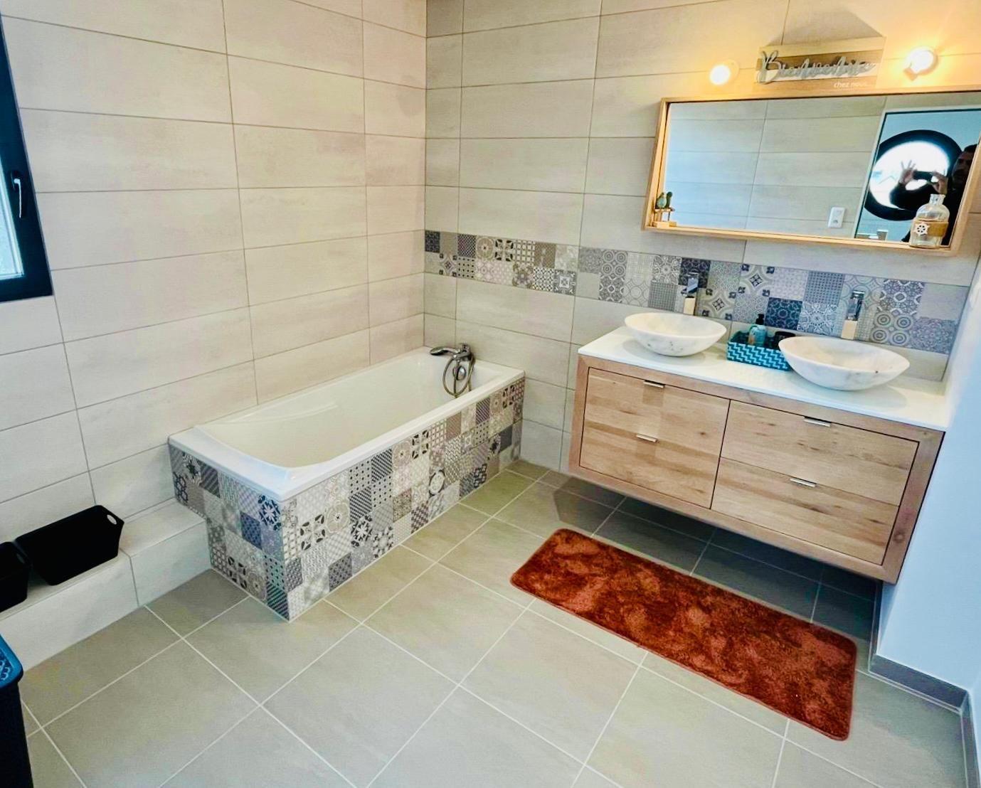 Inside, the house shines through with a layout designed with your comfort in mind. The kitchen, equipped with the latest appliances, is designed to facilitate your culinary preparations, with a central island as its centrepiece. The elegantly furnished living room, with its soft sofas and friendly atmosphere, is the ideal cocoon for those special moments of relaxation. The bedrooms, meanwhile, are peaceful retreats offering comfortable beds and soothing decor, promising a restful night's sleep.