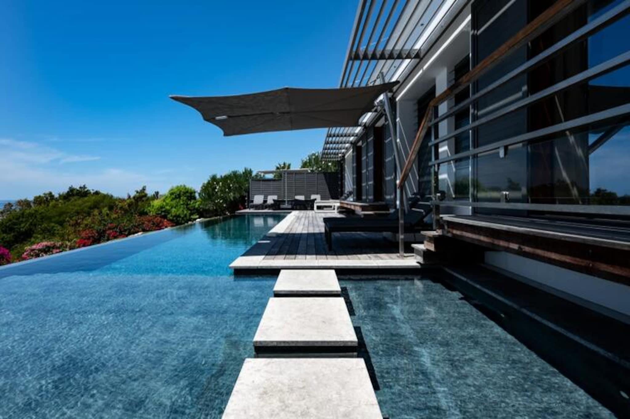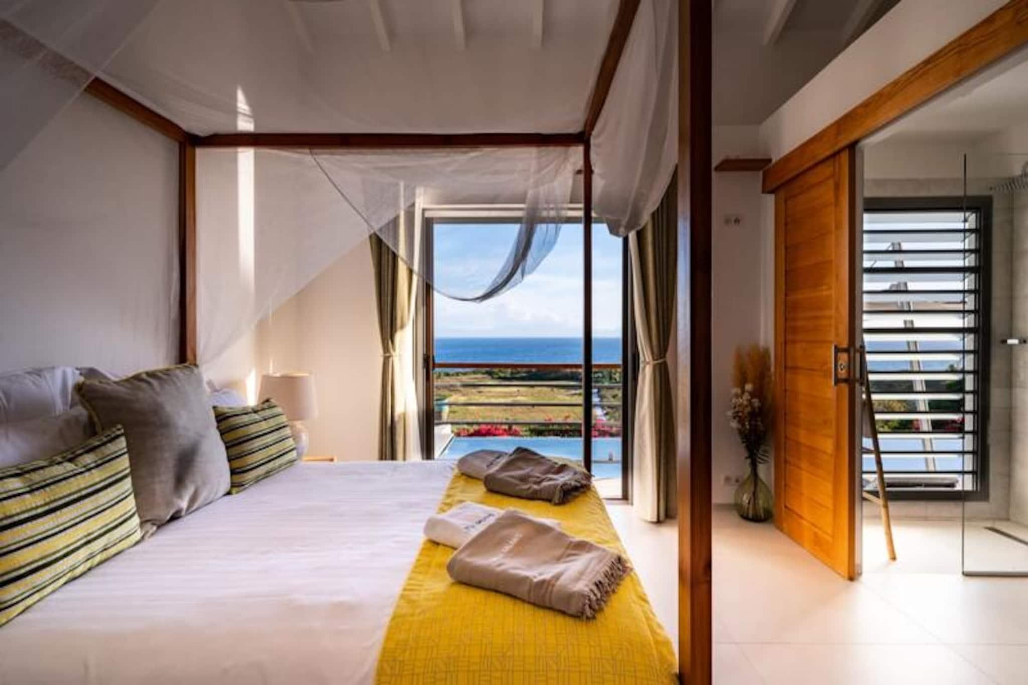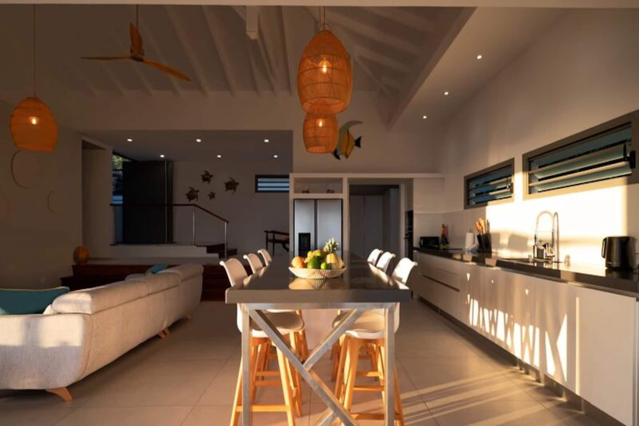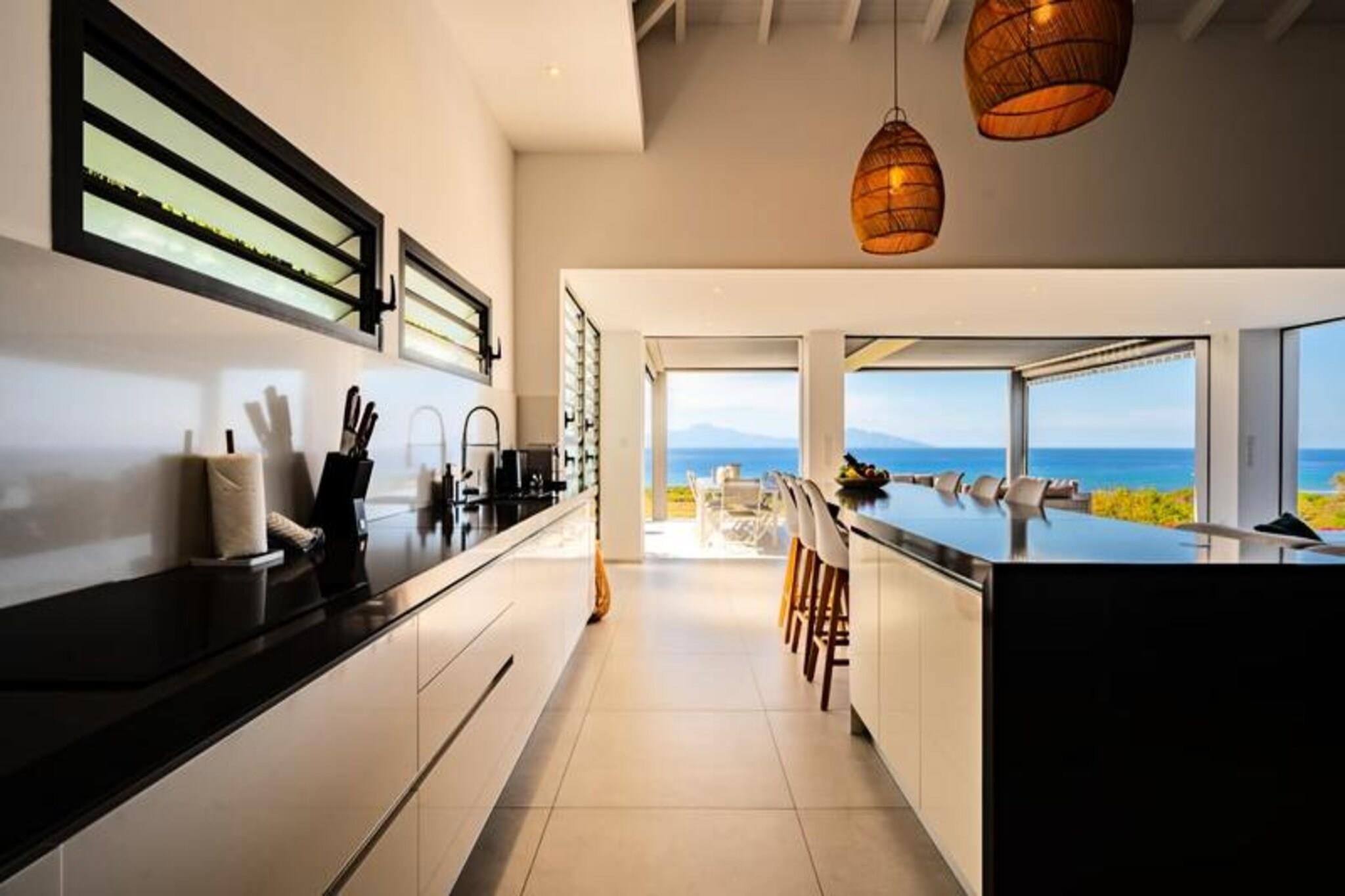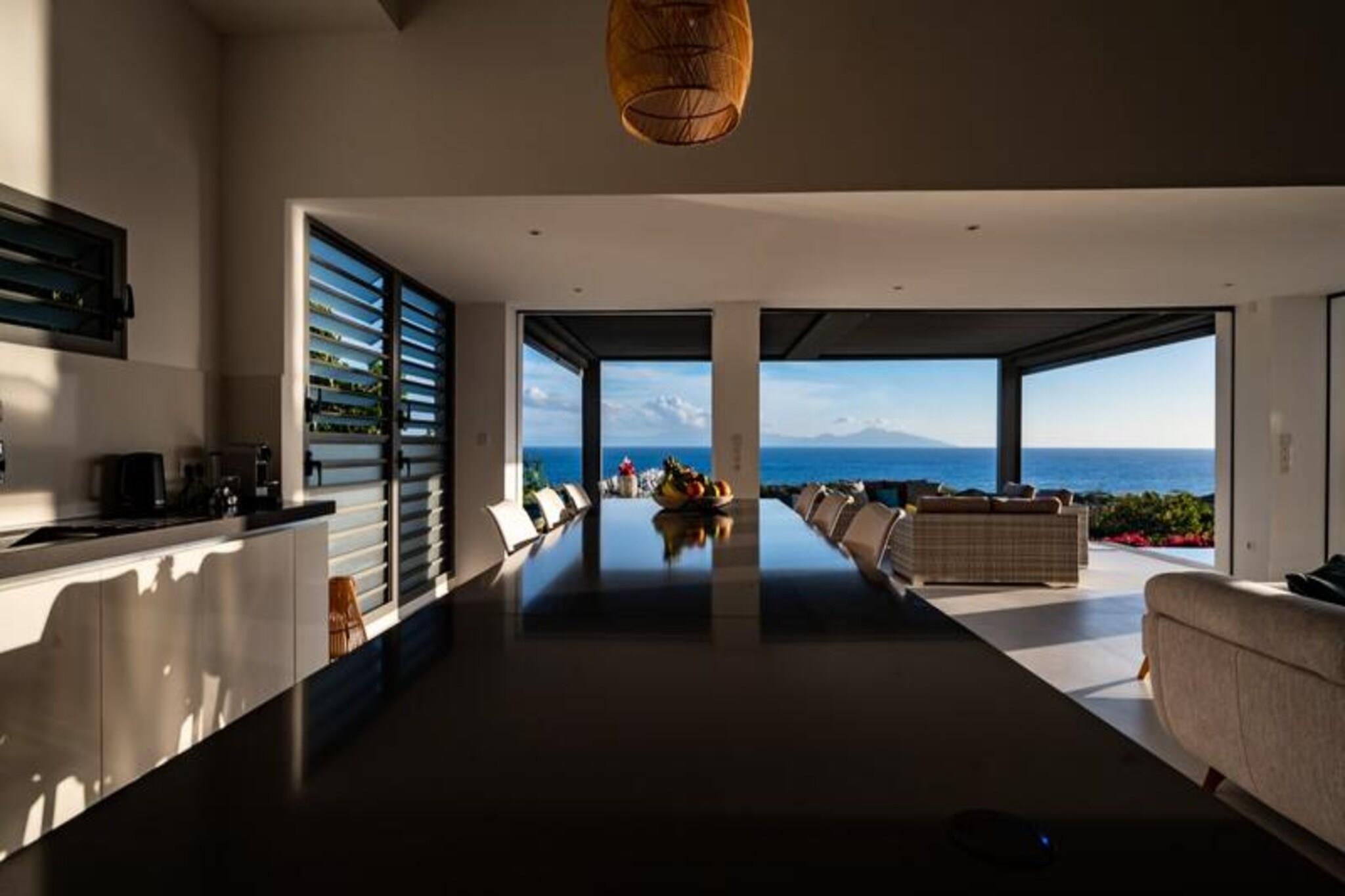 Perched on the serene heights of Les Basses, Villa Belle Galante is a sanctuary of modern luxury and Caribbean charm. With its breathtaking panoramic views of the turquoise sea and an infinity pool that seems to merge with the horizon, this villa invites you to unwind in absolute tranquility. The gentle trade winds and lush surroundings create a perfect backdrop for your dream getaway. This contemporary villa spans an impressive 246 m² and accommodates up to 11 guests across five beautifully designed bedrooms, each with its own en-suite bathroom featuring walk-in showers. Four of the bedrooms are equipped with 160 cm beds, while the fifth offers a 140 cm bed and an additional 90 cm bed, making it ideal for families or groups of friends. The fully equipped kitchen, with its central island, flows seamlessly into the dining area on the covered terrace, where up to twelve guests can enjoy meals while gazing at the Caribbean Sea. The villa’s wooden furnishings and modern architecture add a touch of elegance to its inviting ambiance. Located just five minutes from the charming town of Grand-Bourg, the villa offers easy access to supermarkets, vibrant markets, and delightful Creole restaurants. The nearby beaches of Anse Canot and La Feuillère are must-visits, whether you’re looking to swim in crystal-clear waters or try your hand at kitesurfing. For those seeking adventure, explore local rum distilleries, hike through sugarcane fields, or attend beach concerts under the stars. With its blend of comfort, style, and proximity to the best of Marie-Galante, Villa Belle Galante promises an unforgettable Caribbean escape. Whether you’re lounging by the infinity pool, savoring sunsets on the terrace, or discovering the island’s treasures, this villa is your gateway to paradise.
