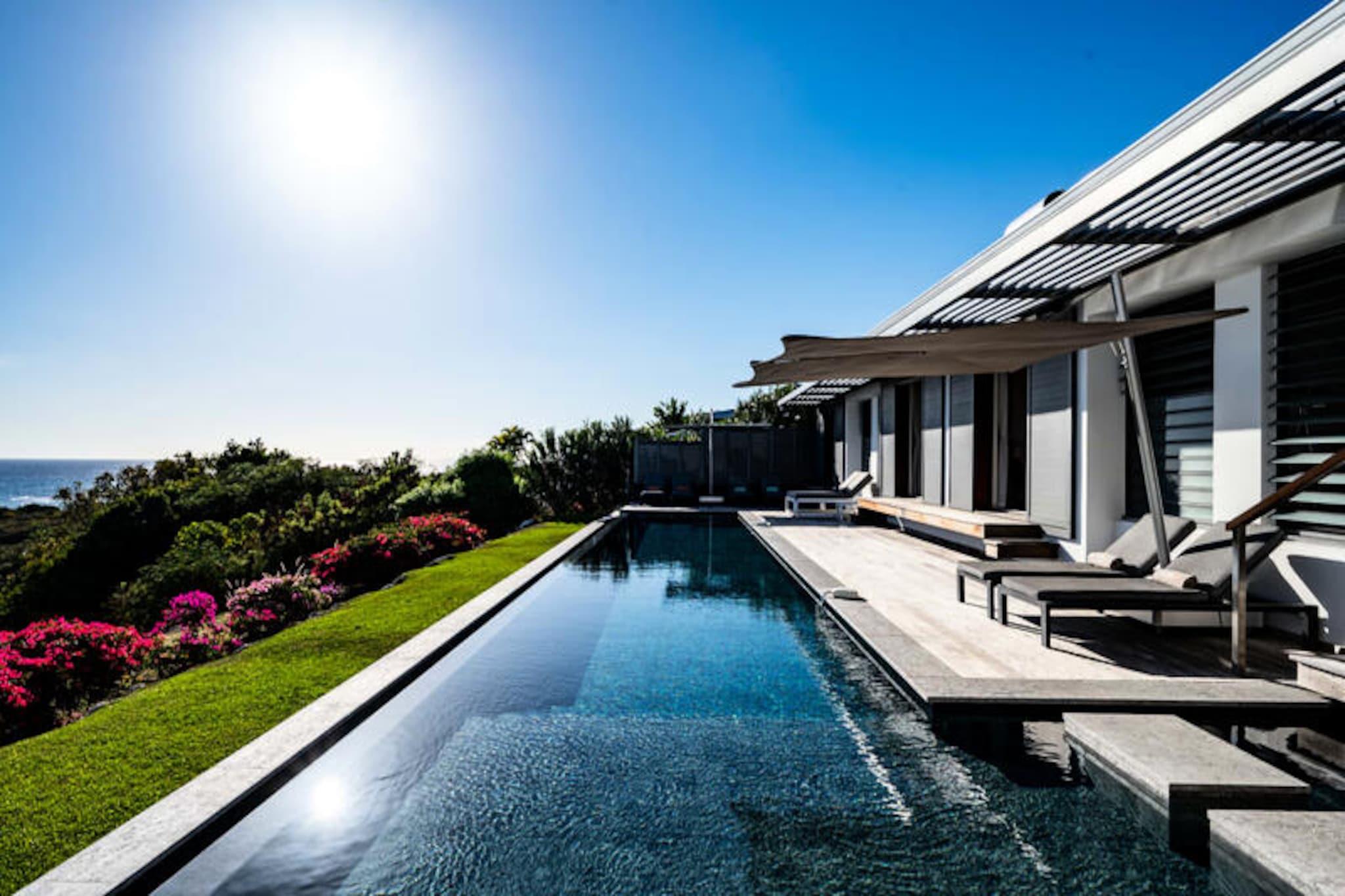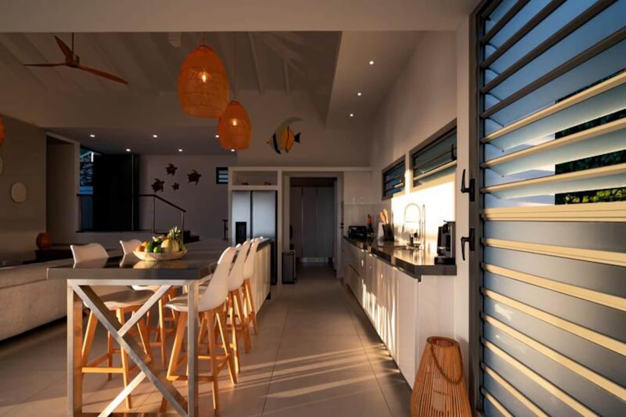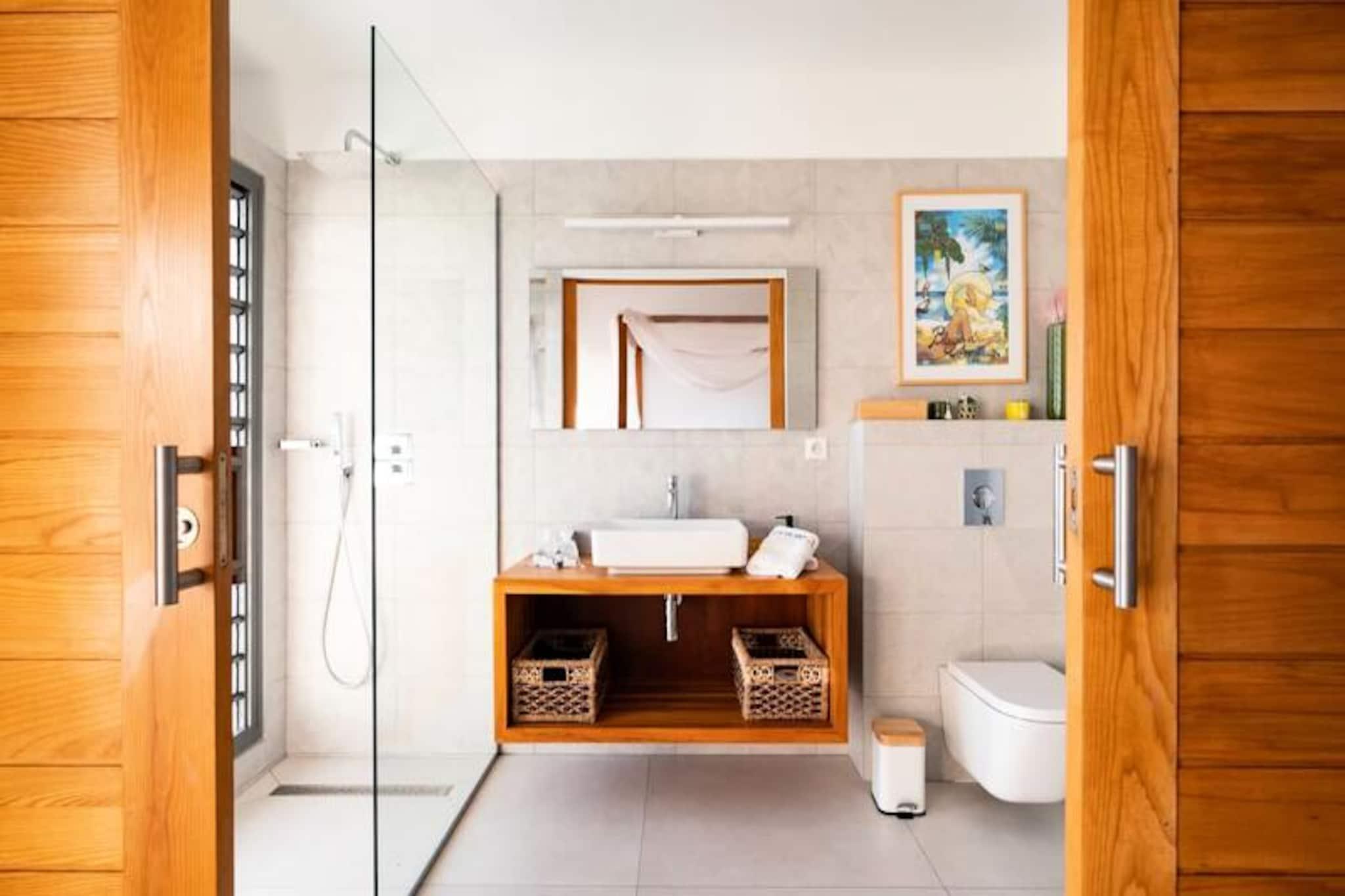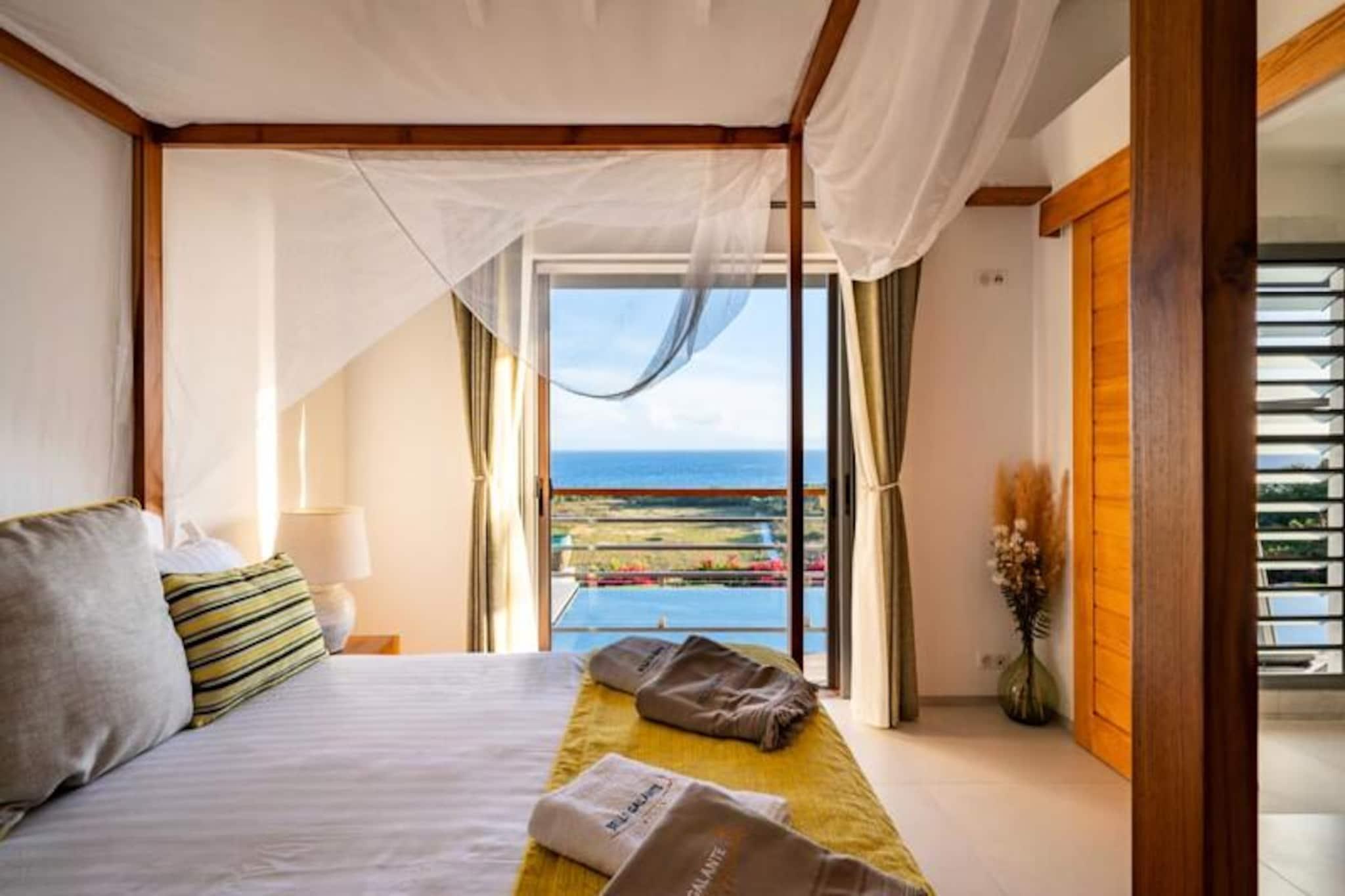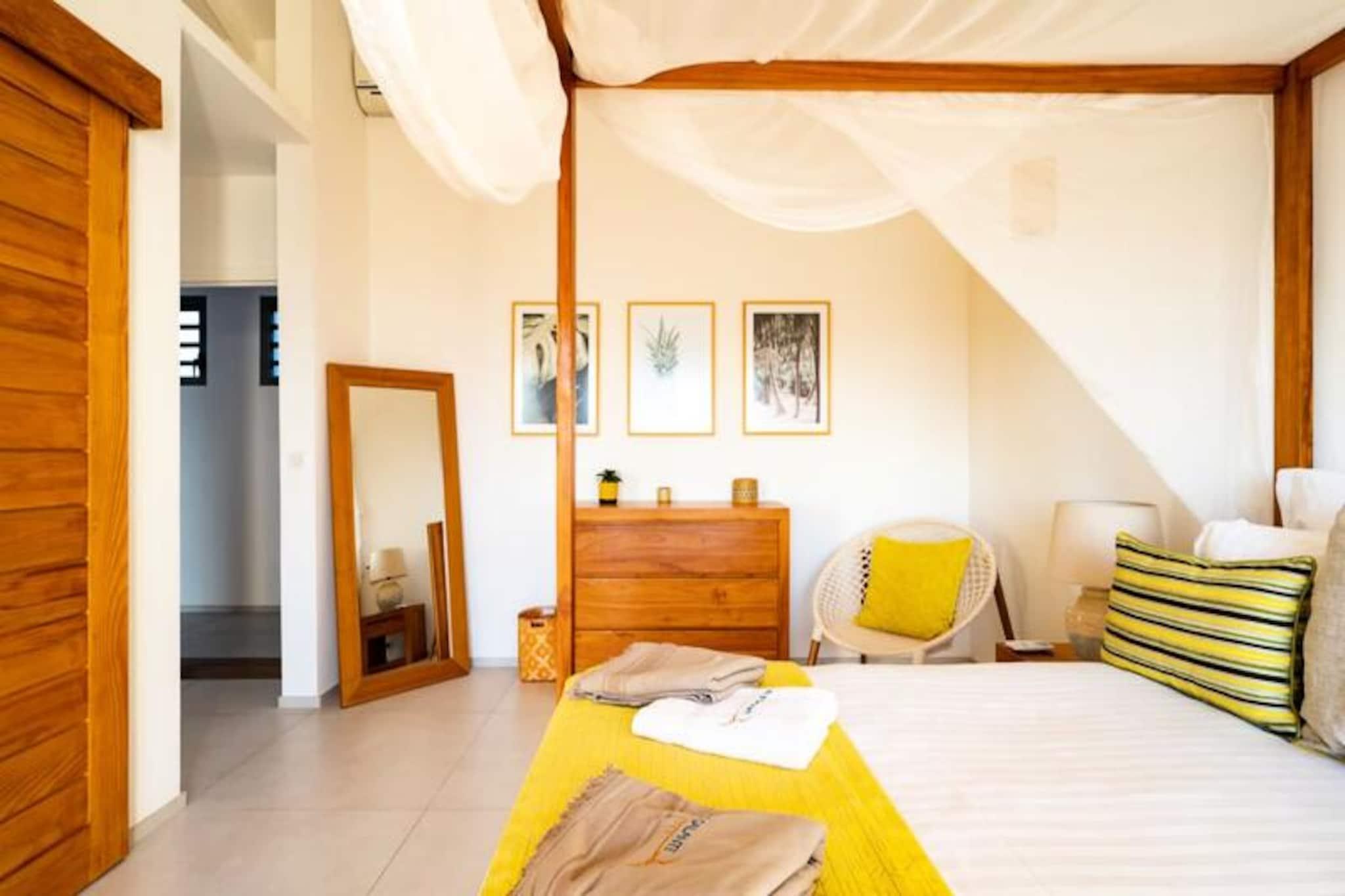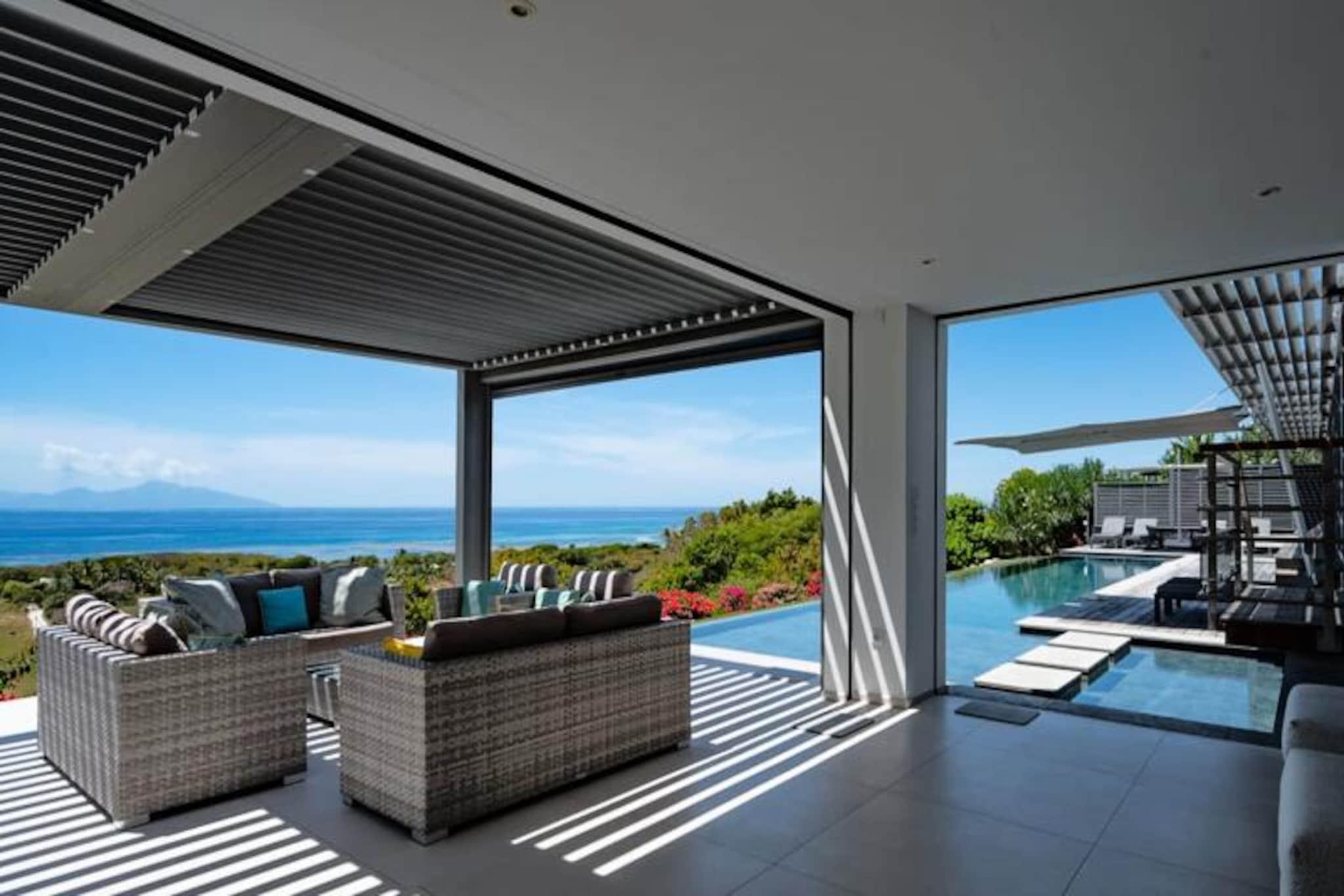 Perched on the serene heights of Les Basses, Villa Belle Galante is a sanctuary of modern luxury and Caribbean charm. With its breathtaking panoramic views of the turquoise sea and an infinity pool that seems to merge with the horizon, this villa invites you to unwind in absolute tranquility. The gentle trade winds and lush surroundings create a perfect backdrop for your dream getaway. This contemporary villa spans an impressive 246 m² and accommodates up to 11 guests across five beautifully designed bedrooms, each with its own en-suite bathroom featuring walk-in showers. Four of the bedrooms are equipped with 160 cm beds, while the fifth offers a 140 cm bed and an additional 90 cm bed, making it ideal for families or groups of friends. The fully equipped kitchen, with its central island, flows seamlessly into the dining area on the covered terrace, where up to twelve guests can enjoy meals while gazing at the Caribbean Sea. The villa’s wooden furnishings and modern architecture add a touch of elegance to its inviting ambiance. Located just five minutes from the charming town of Grand-Bourg, the villa offers easy access to supermarkets, vibrant markets, and delightful Creole restaurants. The nearby beaches of Anse Canot and La Feuillère are must-visits, whether you’re looking to swim in crystal-clear waters or try your hand at kitesurfing. For those seeking adventure, explore local rum distilleries, hike through sugarcane fields, or attend beach concerts under the stars. With its blend of comfort, style, and proximity to the best of Marie-Galante, Villa Belle Galante promises an unforgettable Caribbean escape. Whether you’re lounging by the infinity pool, savoring sunsets on the terrace, or discovering the island’s treasures, this villa is your gateway to paradise.