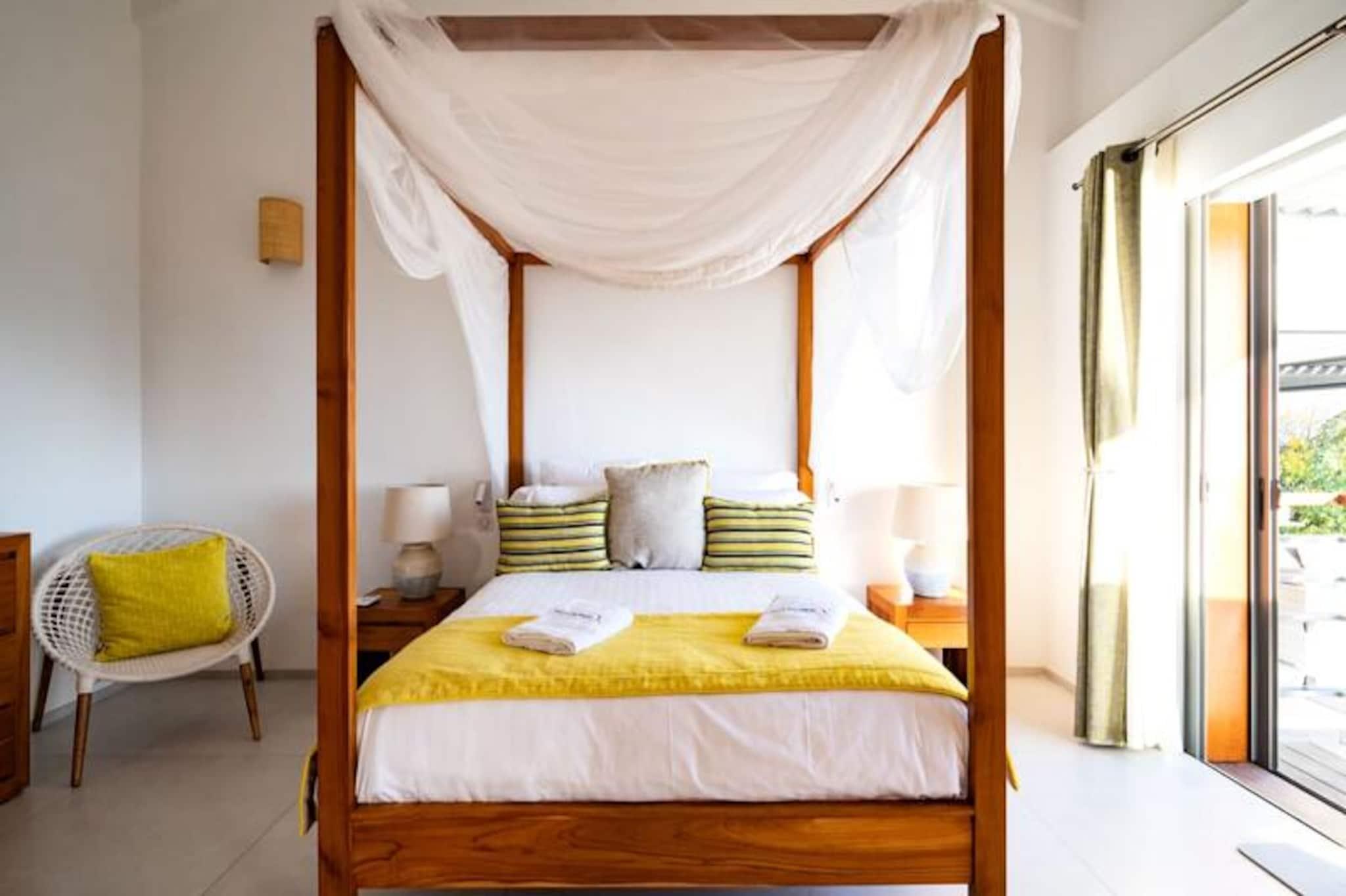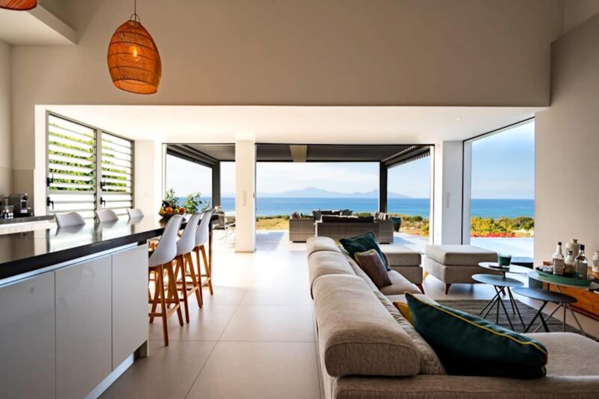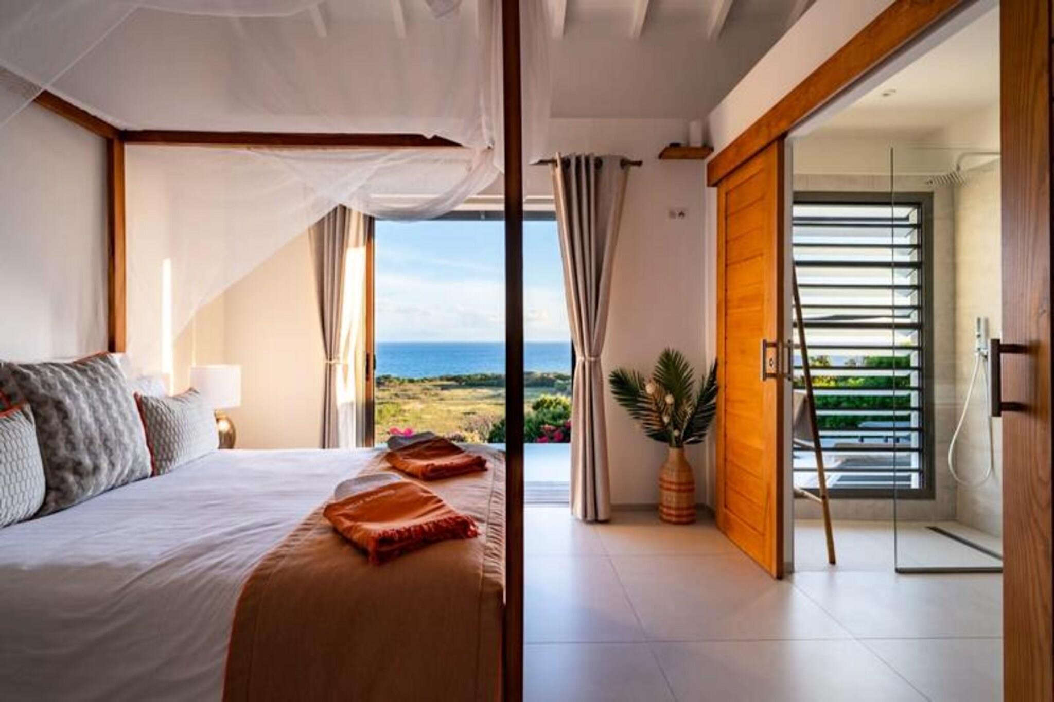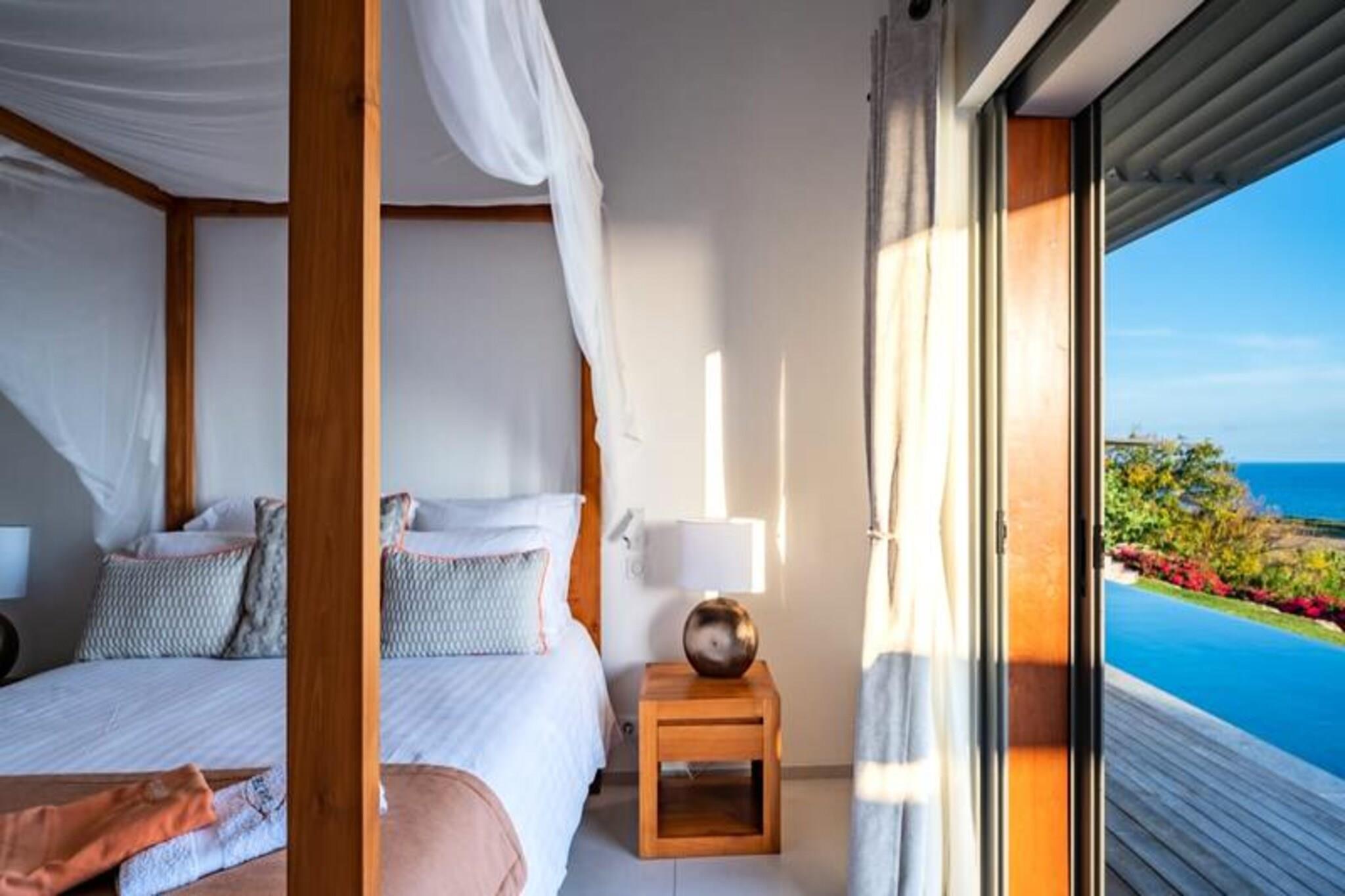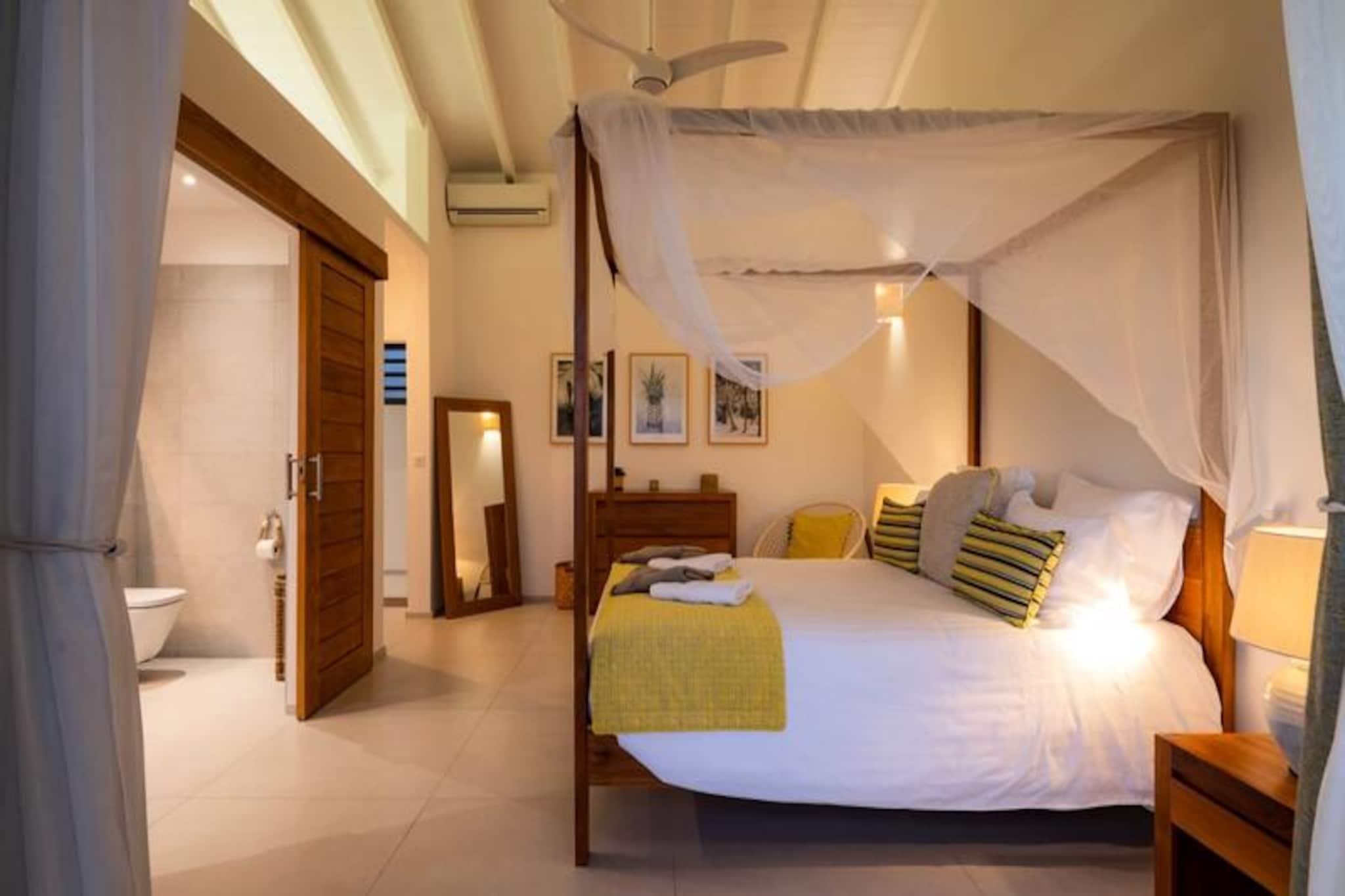 Perched on the serene heights of Les Basses, Villa Belle Galante is a sanctuary of modern luxury and Caribbean charm. With its breathtaking panoramic views of the turquoise sea and an infinity pool that seems to merge with the horizon, this villa invites you to unwind in absolute tranquility. The gentle trade winds and lush surroundings create a perfect backdrop for your dream getaway. This contemporary villa spans an impressive 246 m² and accommodates up to 11 guests across five beautifully designed bedrooms, each with its own en-suite bathroom featuring walk-in showers. Four of the bedrooms are equipped with 160 cm beds, while the fifth offers a 140 cm bed and an additional 90 cm bed, making it ideal for families or groups of friends. The fully equipped kitchen, with its central island, flows seamlessly into the dining area on the covered terrace, where up to twelve guests can enjoy meals while gazing at the Caribbean Sea. The villa’s wooden furnishings and modern architecture add a touch of elegance to its inviting ambiance. Located just five minutes from the charming town of Grand-Bourg, the villa offers easy access to supermarkets, vibrant markets, and delightful Creole restaurants. The nearby beaches of Anse Canot and La Feuillère are must-visits, whether you’re looking to swim in crystal-clear waters or try your hand at kitesurfing. For those seeking adventure, explore local rum distilleries, hike through sugarcane fields, or attend beach concerts under the stars. With its blend of comfort, style, and proximity to the best of Marie-Galante, Villa Belle Galante promises an unforgettable Caribbean escape. Whether you’re lounging by the infinity pool, savoring sunsets on the terrace, or discovering the island’s treasures, this villa is your gateway to paradise.