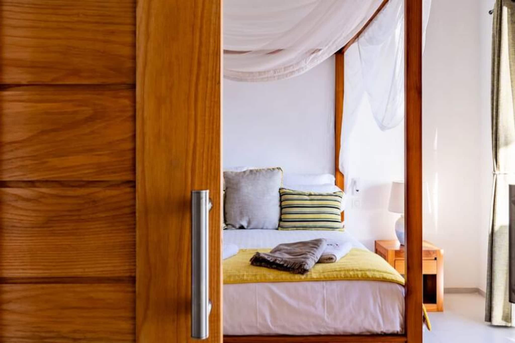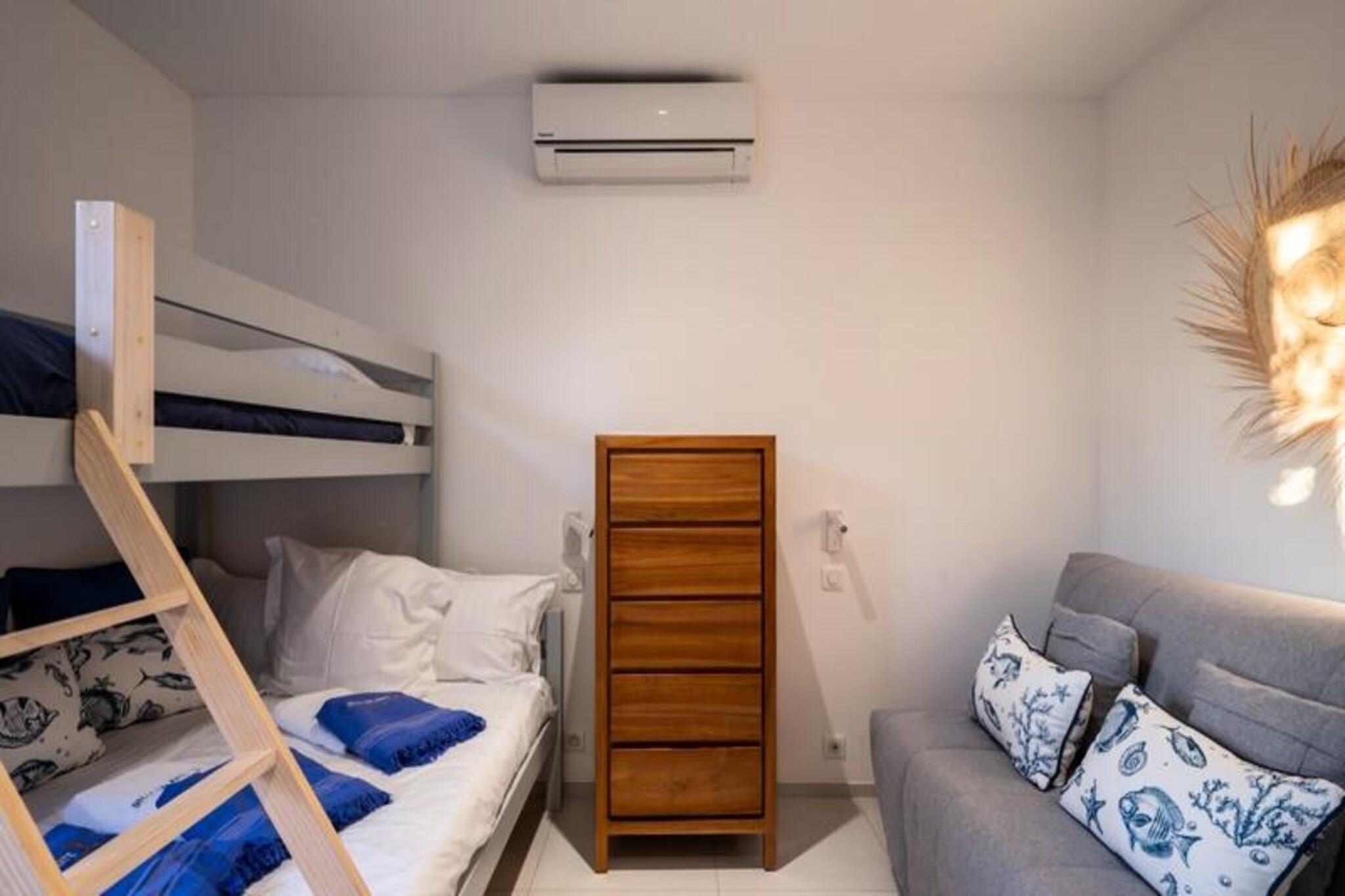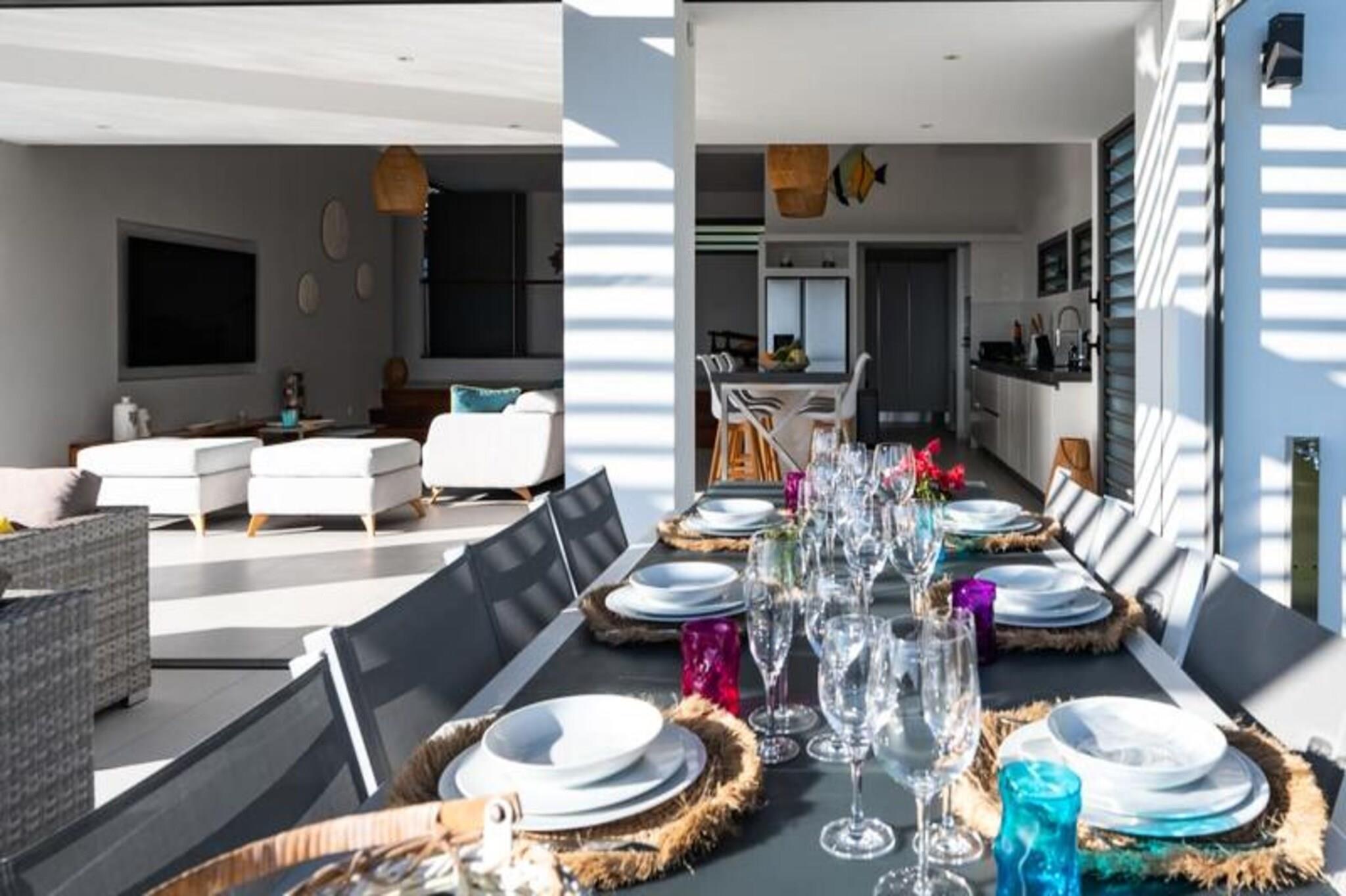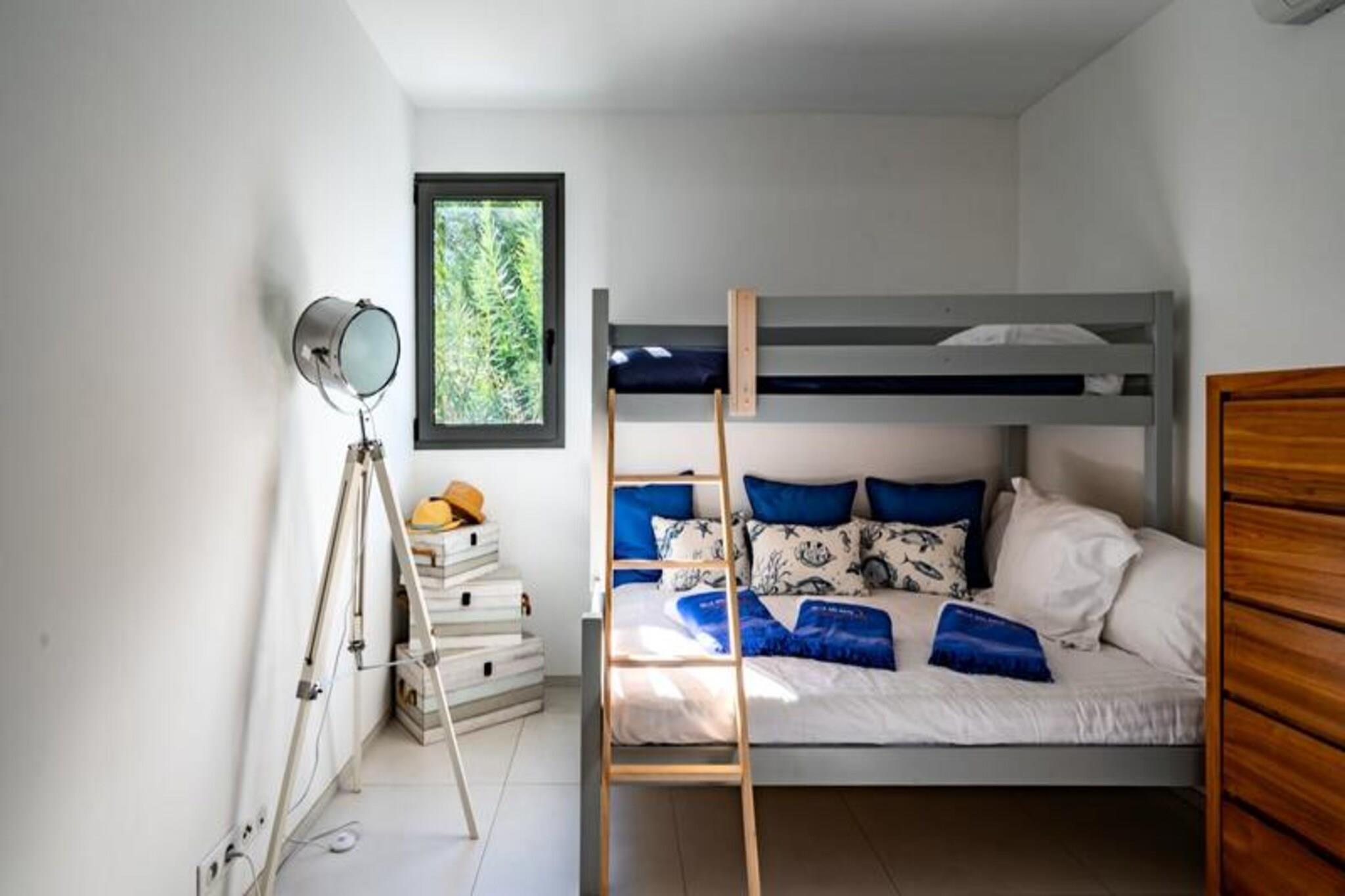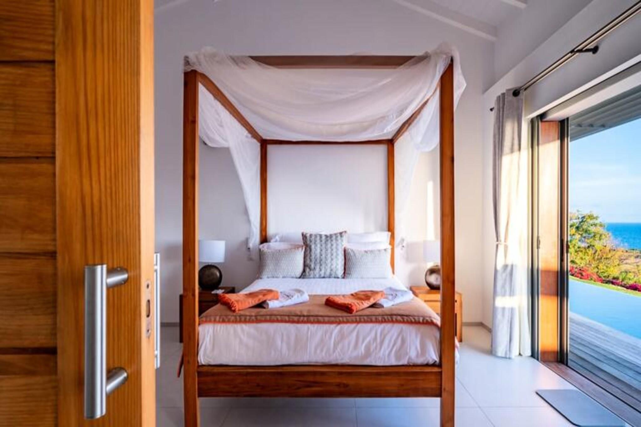Perched on the serene heights of Les Basses, Villa Belle Galante is a sanctuary of modern luxury and Caribbean charm. With its breathtaking panoramic views of the turquoise sea and an infinity pool that seems to merge with the horizon, this villa invites you to unwind in absolute tranquility. The gentle trade winds and lush surroundings create a perfect backdrop for your dream getaway. This contemporary villa spans an impressive 246 m² and accommodates up to 11 guests across five beautifully designed bedrooms, each with its own en-suite bathroom featuring walk-in showers. Four of the bedrooms are equipped with 160 cm beds, while the fifth offers a 140 cm bed and an additional 90 cm bed, making it ideal for families or groups of friends. The fully equipped kitchen, with its central island, flows seamlessly into the dining area on the covered terrace, where up to twelve guests can enjoy meals while gazing at the Caribbean Sea. The villa’s wooden furnishings and modern architecture add a touch of elegance to its inviting ambiance. Located just five minutes from the charming town of Grand-Bourg, the villa offers easy access to supermarkets, vibrant markets, and delightful Creole restaurants. The nearby beaches of Anse Canot and La Feuillère are must-visits, whether you’re looking to swim in crystal-clear waters or try your hand at kitesurfing. For those seeking adventure, explore local rum distilleries, hike through sugarcane fields, or attend beach concerts under the stars. With its blend of comfort, style, and proximity to the best of Marie-Galante, Villa Belle Galante promises an unforgettable Caribbean escape. Whether you’re lounging by the infinity pool, savoring sunsets on the terrace, or discovering the island’s treasures, this villa is your gateway to paradise.