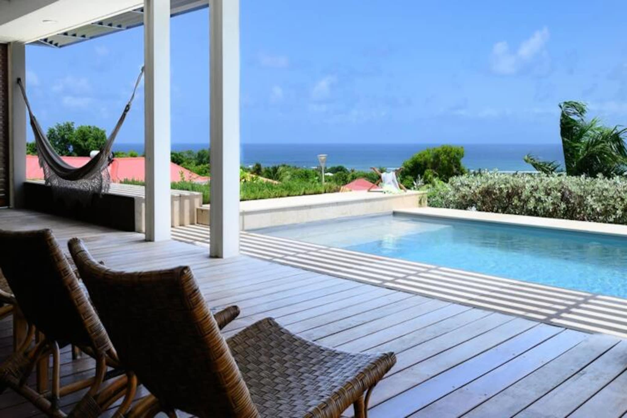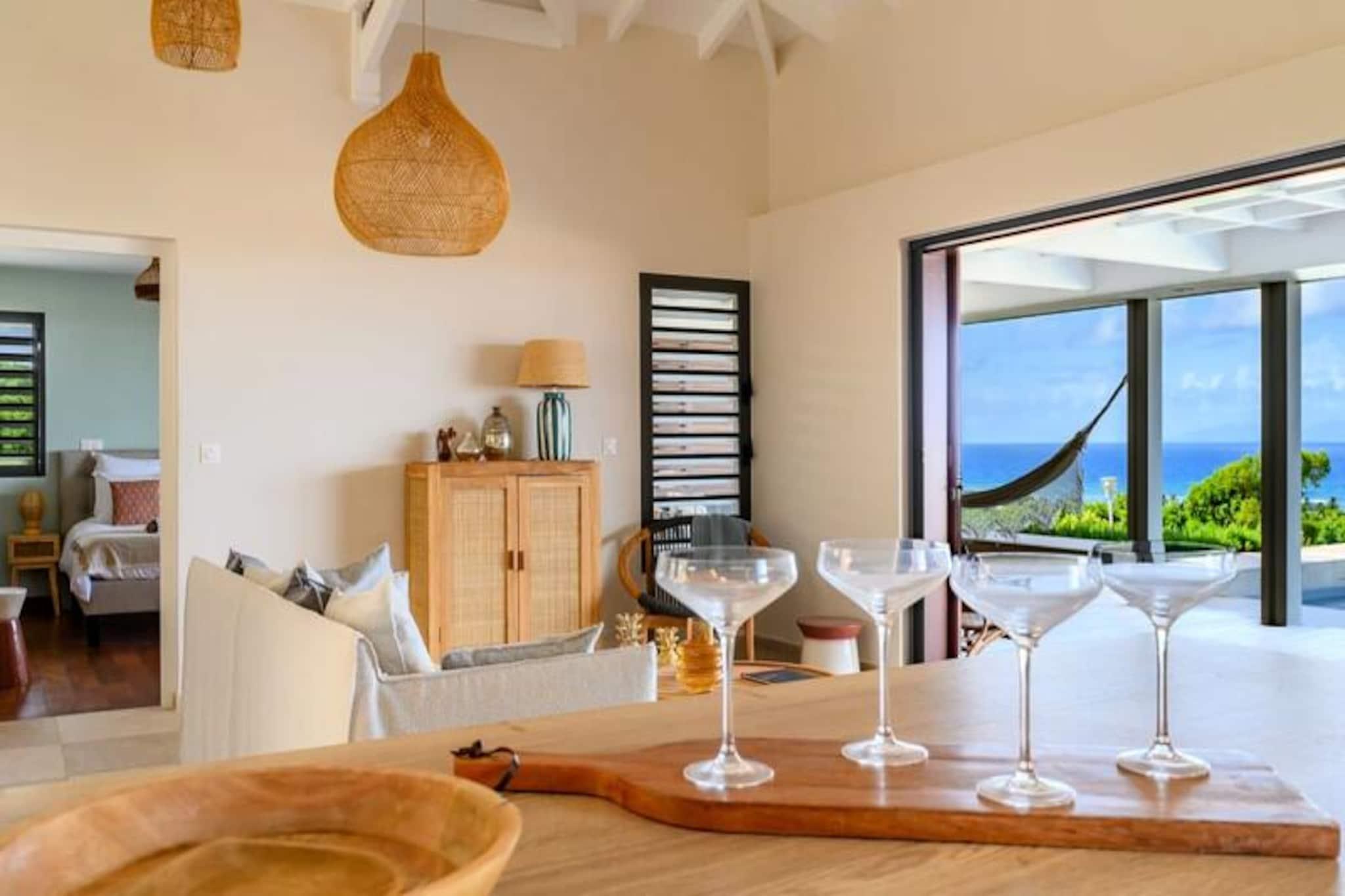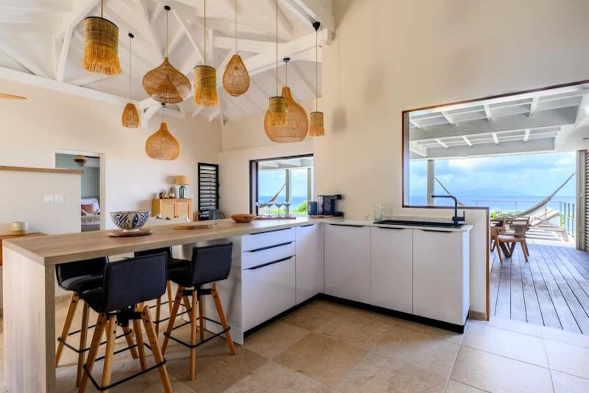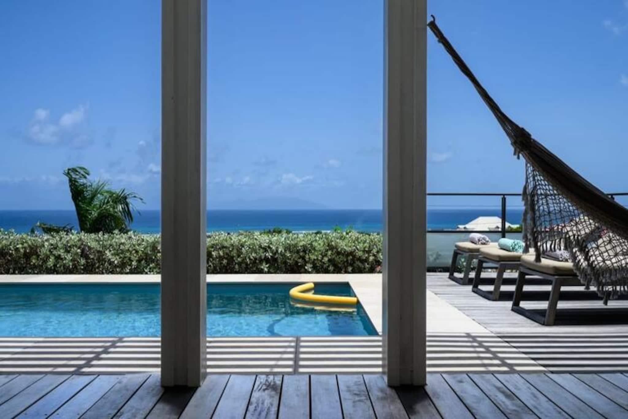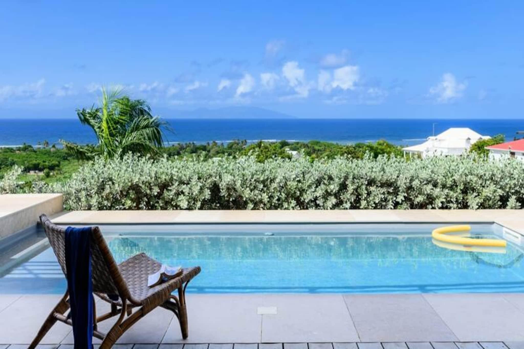 Imagine waking up to the gentle Caribbean breeze and the sound of waves in the distance, as the sun rises over the idyllic island of Marie-Galante. This modern villa, nestled in the serene surroundings of Grand-Bourg, offers a luxurious retreat where comfort meets breathtaking natural beauty. With panoramic views of Dominica and Les Saintes, every moment here feels like a postcard come to life. Designed with elegance and relaxation in mind, the villa features two spacious, air-conditioned suites, each equipped with premium 160cm bedding and private Italian-style bathrooms with walk-in showers. The fully equipped kitchen invites you to prepare delicious meals, while the bright and stylish living room opens onto a sun-drenched terrace. Outside, the private pool, surrounded by a decked area, is perfect for cooling off or soaking up the sun, all while enjoying the stunning sea views and unforgettable sunsets. Just minutes away, you’ll find the charming town of Grand-Bourg, known for its vibrant markets, Creole restaurants, and welcoming atmosphere. Explore the pristine white sand beaches of Anse Canot and La Feuillère, ideal for swimming and kitesurfing. Discover local distilleries, hike through sugarcane fields, or attend lively beach concerts for a taste of the island’s rich culture and traditions. Whether you’re seeking tranquility, adventure, or a blend of both, this villa offers the perfect base for an unforgettable Caribbean escape. Let the beauty of Guadeloupe and the warmth of its people create memories that will last a lifetime.