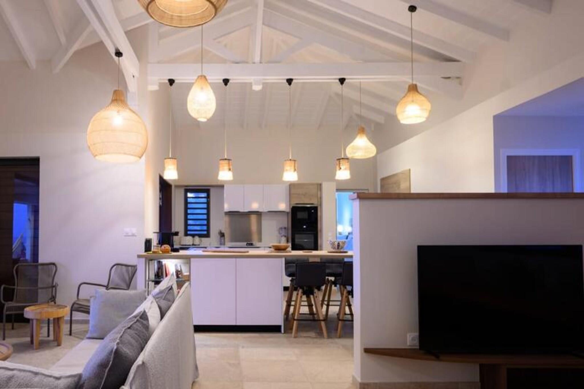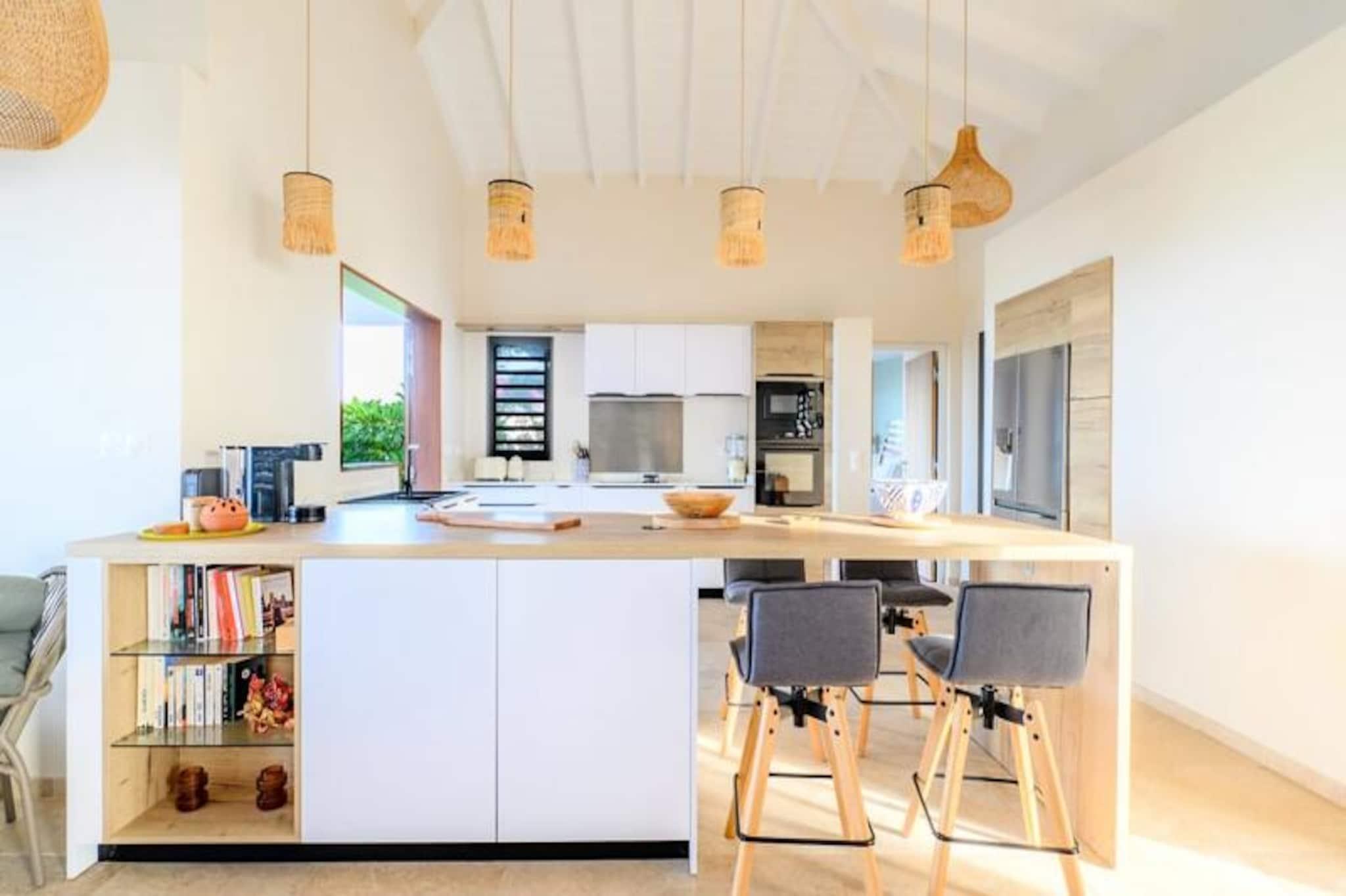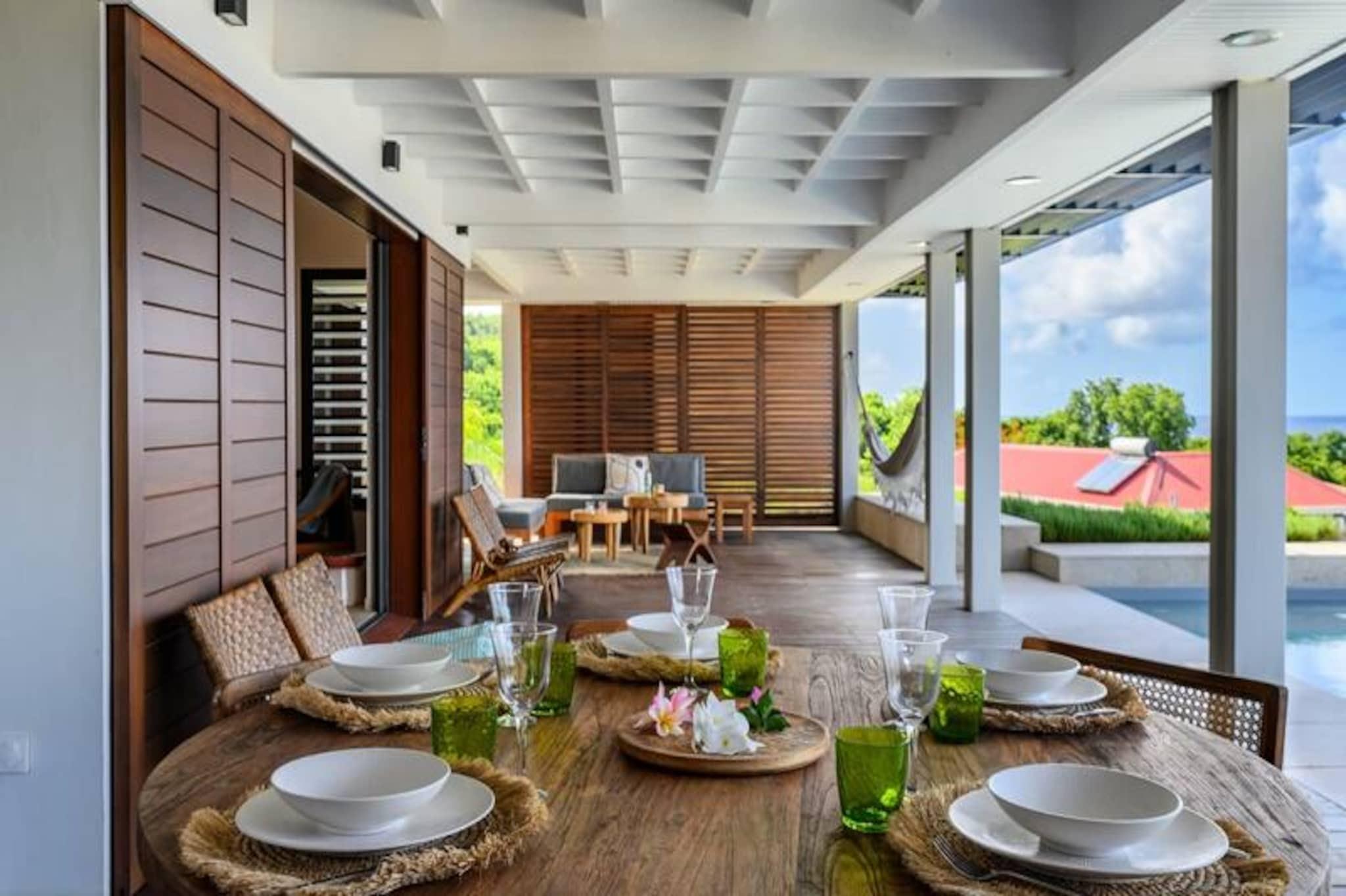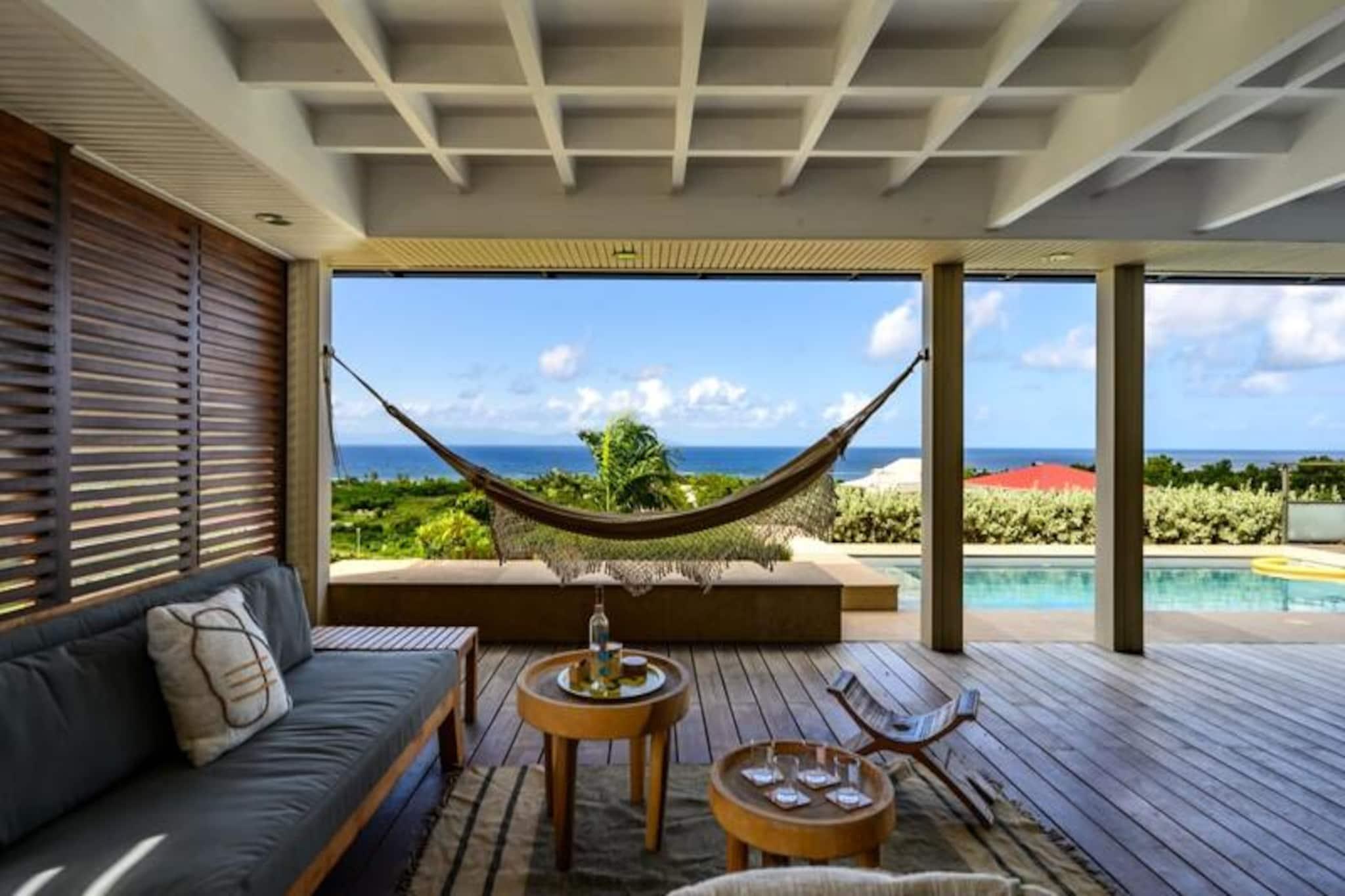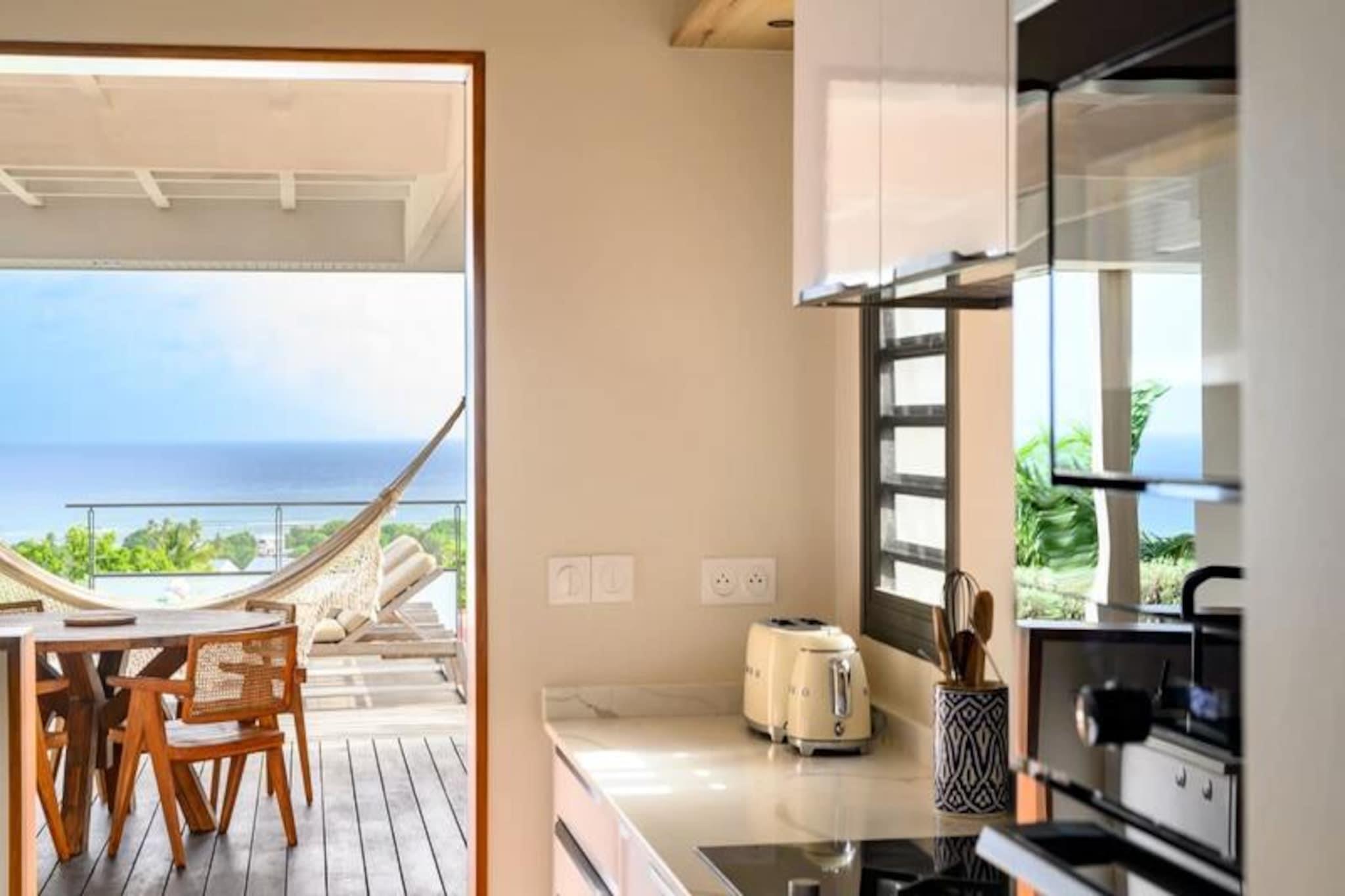 Imagine waking up to the gentle Caribbean breeze and the sound of waves in the distance, as the sun rises over the idyllic island of Marie-Galante. This modern villa, nestled in the serene surroundings of Grand-Bourg, offers a luxurious retreat where comfort meets breathtaking natural beauty. With panoramic views of Dominica and Les Saintes, every moment here feels like a postcard come to life. Designed with elegance and relaxation in mind, the villa features two spacious, air-conditioned suites, each equipped with premium 160cm bedding and private Italian-style bathrooms with walk-in showers. The fully equipped kitchen invites you to prepare delicious meals, while the bright and stylish living room opens onto a sun-drenched terrace. Outside, the private pool, surrounded by a decked area, is perfect for cooling off or soaking up the sun, all while enjoying the stunning sea views and unforgettable sunsets. Just minutes away, you’ll find the charming town of Grand-Bourg, known for its vibrant markets, Creole restaurants, and welcoming atmosphere. Explore the pristine white sand beaches of Anse Canot and La Feuillère, ideal for swimming and kitesurfing. Discover local distilleries, hike through sugarcane fields, or attend lively beach concerts for a taste of the island’s rich culture and traditions. Whether you’re seeking tranquility, adventure, or a blend of both, this villa offers the perfect base for an unforgettable Caribbean escape. Let the beauty of Guadeloupe and the warmth of its people create memories that will last a lifetime.