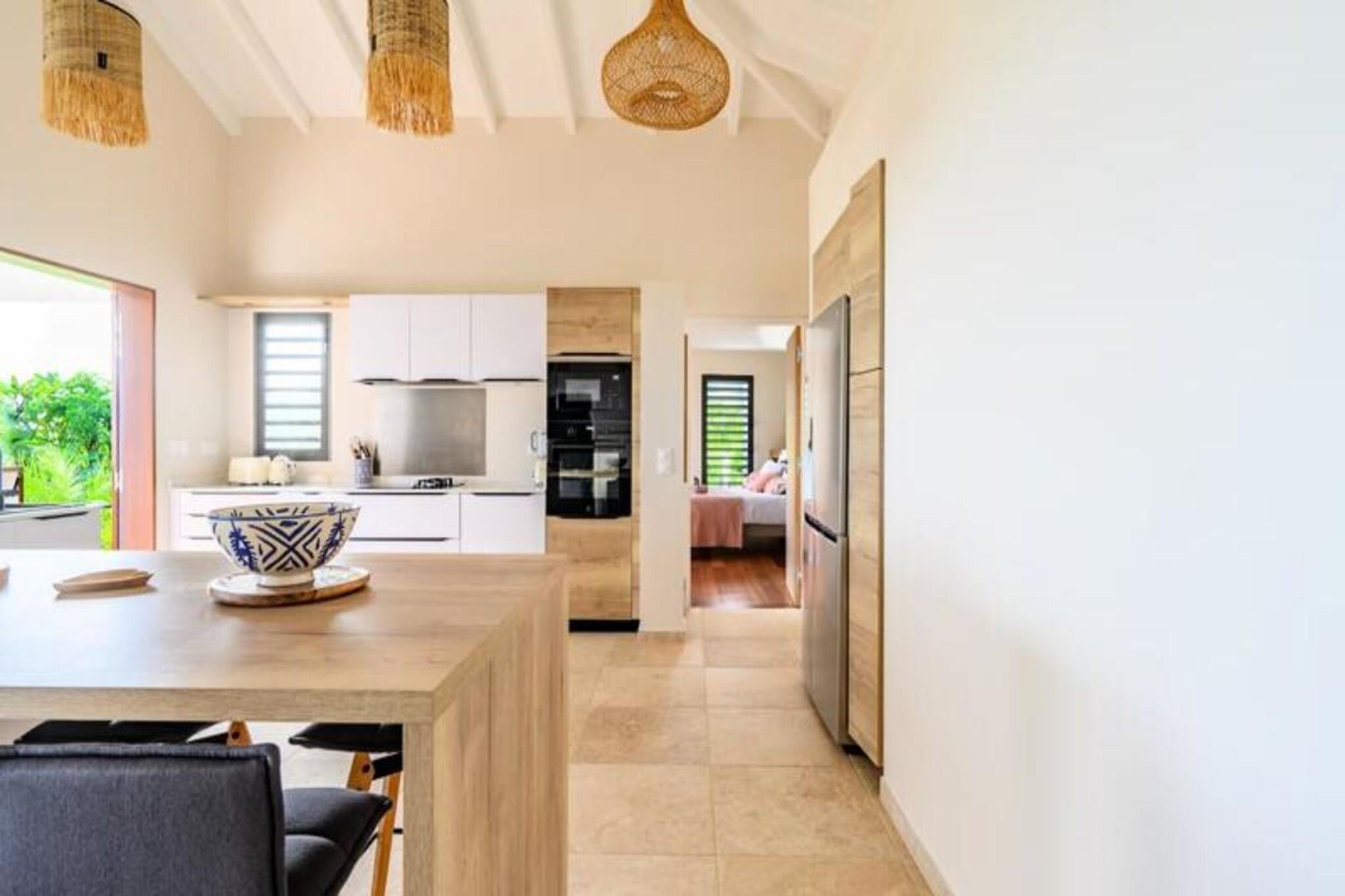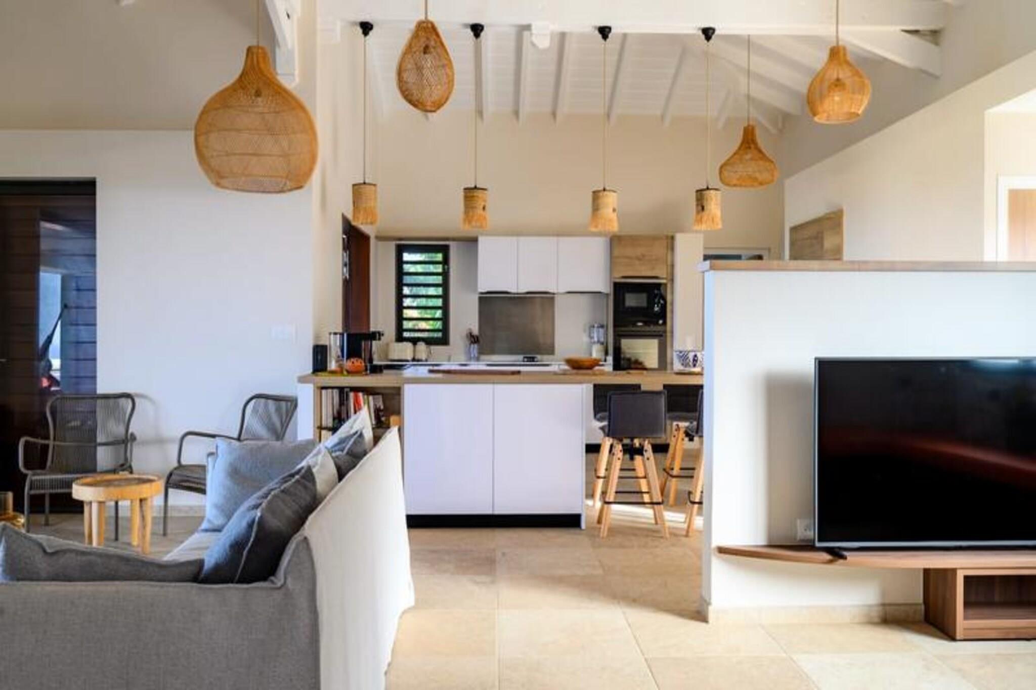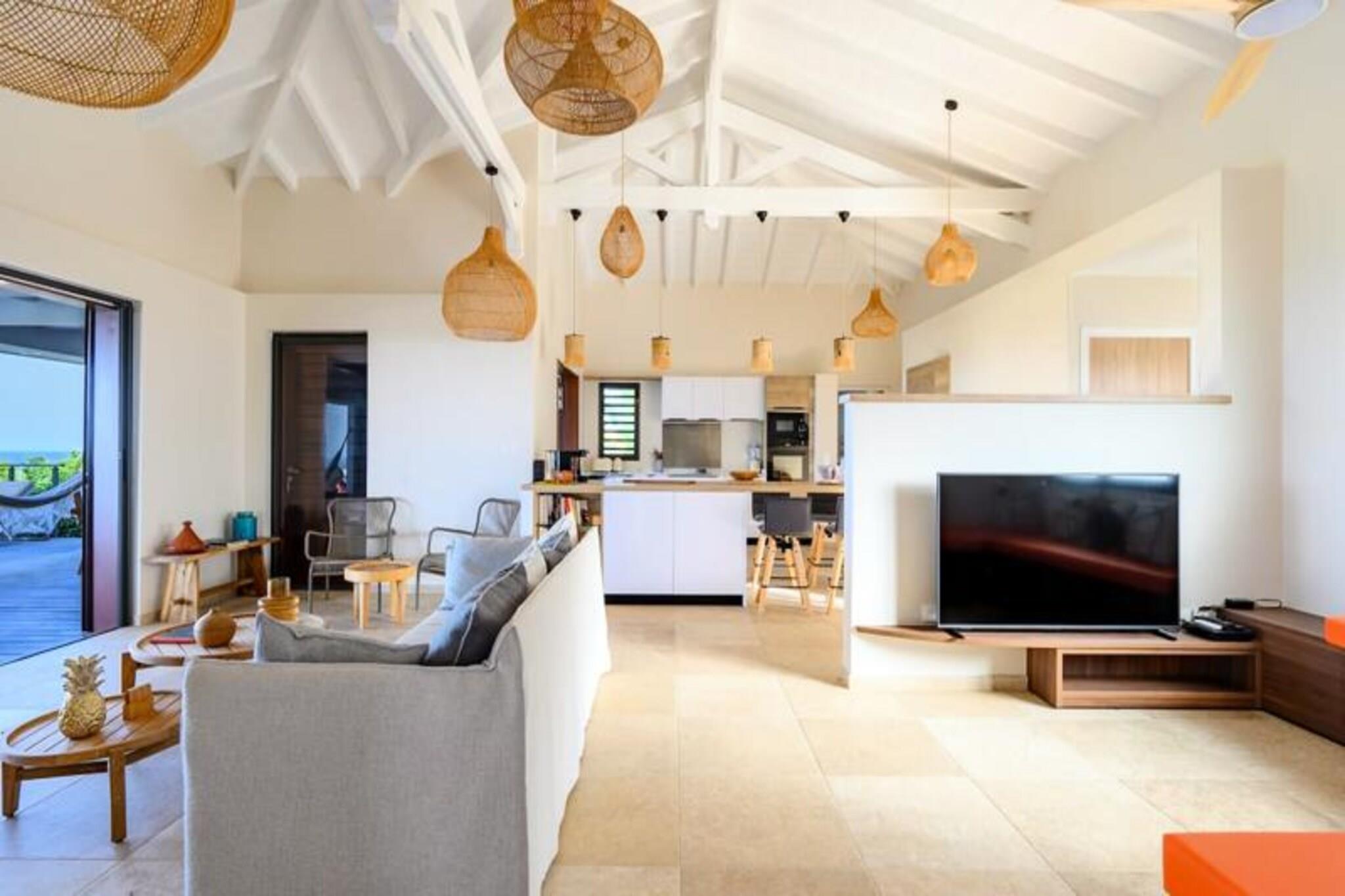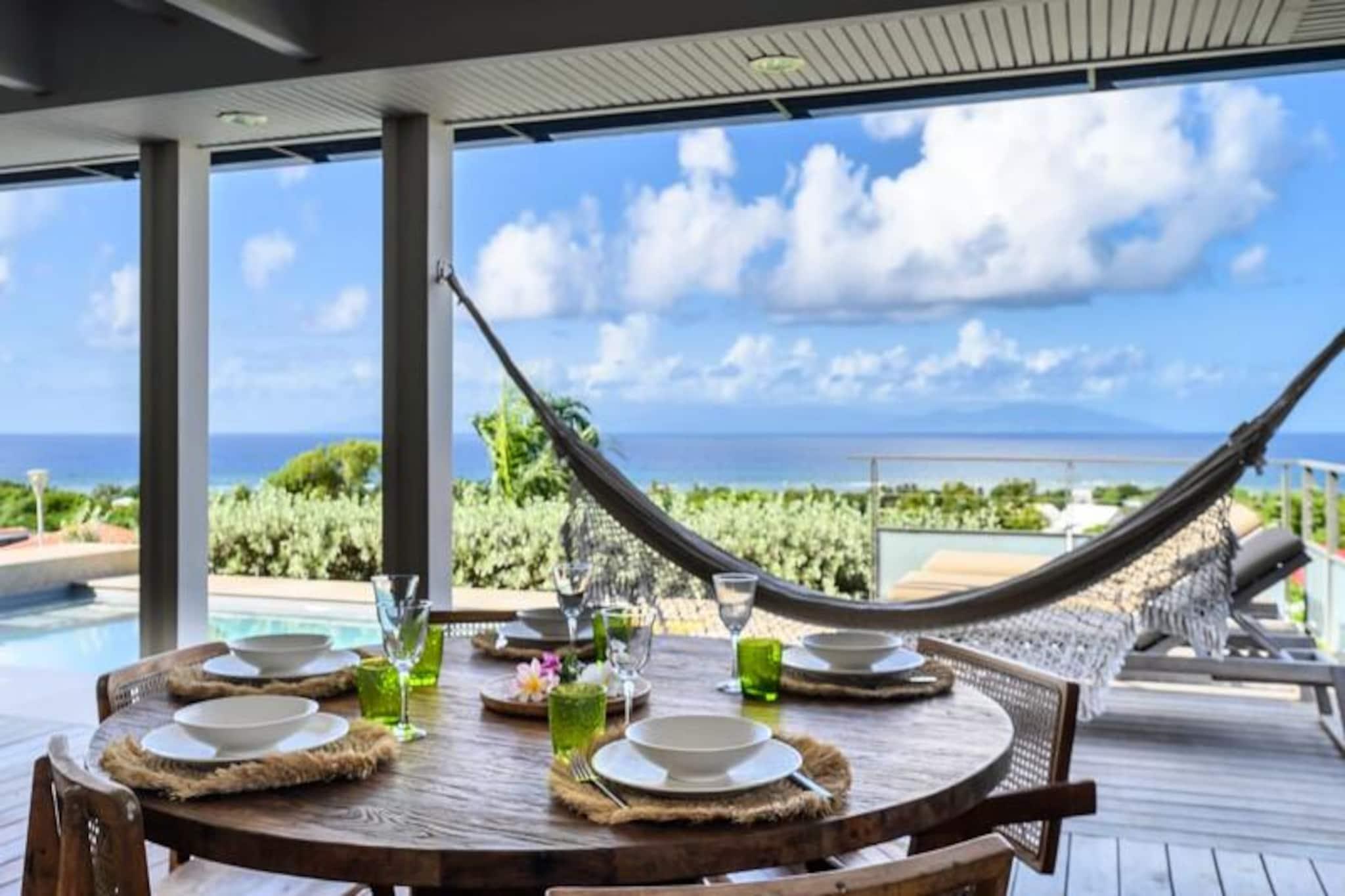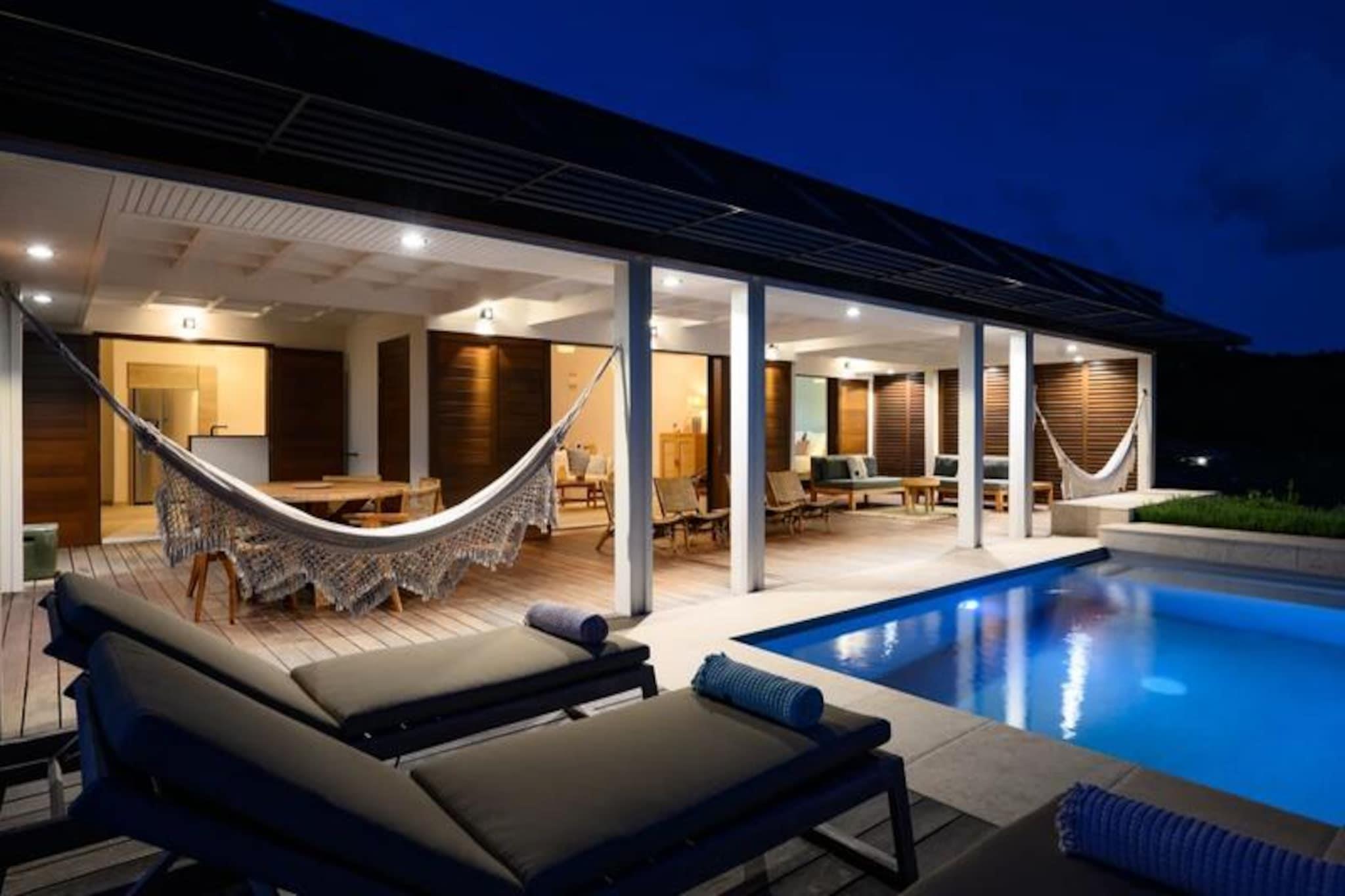 Imagine waking up to the gentle Caribbean breeze and the sound of waves in the distance, as the sun rises over the idyllic island of Marie-Galante. This modern villa, nestled in the serene surroundings of Grand-Bourg, offers a luxurious retreat where comfort meets breathtaking natural beauty. With panoramic views of Dominica and Les Saintes, every moment here feels like a postcard come to life. Designed with elegance and relaxation in mind, the villa features two spacious, air-conditioned suites, each equipped with premium 160cm bedding and private Italian-style bathrooms with walk-in showers. The fully equipped kitchen invites you to prepare delicious meals, while the bright and stylish living room opens onto a sun-drenched terrace. Outside, the private pool, surrounded by a decked area, is perfect for cooling off or soaking up the sun, all while enjoying the stunning sea views and unforgettable sunsets. Just minutes away, you’ll find the charming town of Grand-Bourg, known for its vibrant markets, Creole restaurants, and welcoming atmosphere. Explore the pristine white sand beaches of Anse Canot and La Feuillère, ideal for swimming and kitesurfing. Discover local distilleries, hike through sugarcane fields, or attend lively beach concerts for a taste of the island’s rich culture and traditions. Whether you’re seeking tranquility, adventure, or a blend of both, this villa offers the perfect base for an unforgettable Caribbean escape. Let the beauty of Guadeloupe and the warmth of its people create memories that will last a lifetime.