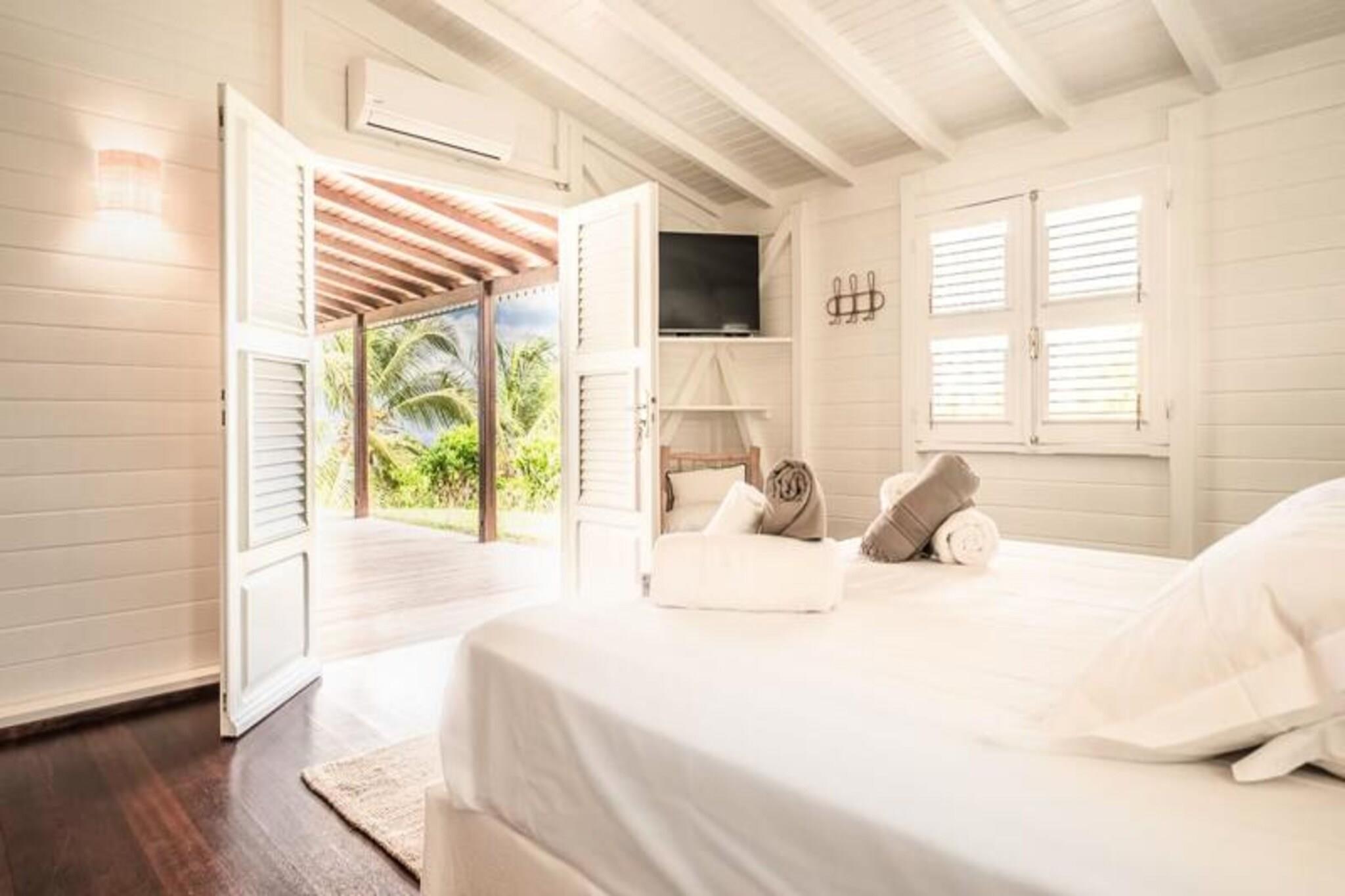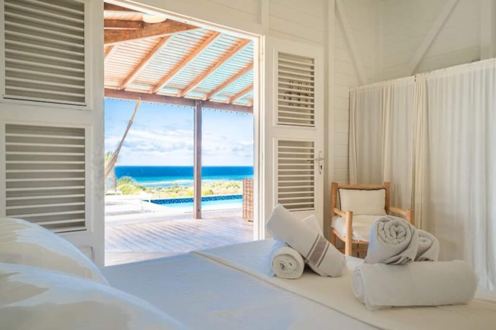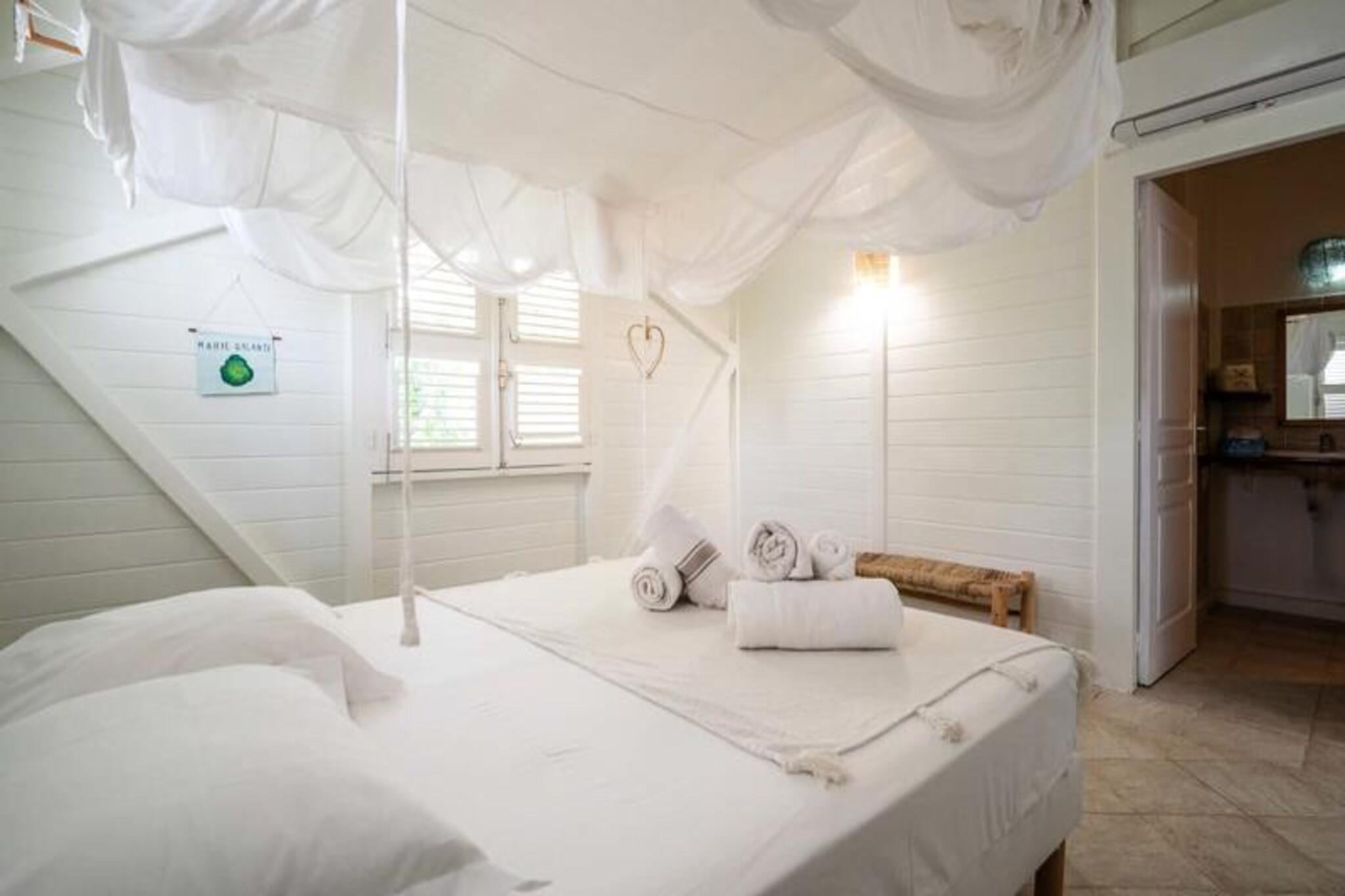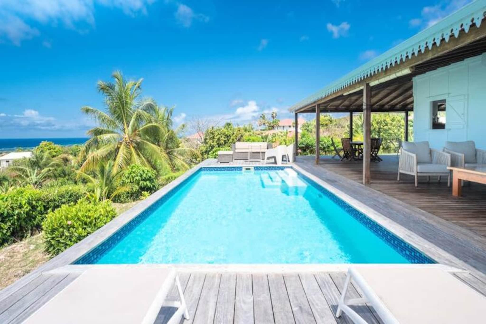 Perched on the serene heights of Grand-Bourg, Villa Capi offers a luxurious retreat where modern comfort meets the natural beauty of Marie-Galante. Imagine waking up to the gentle sea breeze and panoramic views of the turquoise waters and neighboring islands. This villa is a sanctuary of tranquility, perfect for those seeking a peaceful escape under the Caribbean sun. The villa boasts three air-conditioned bedrooms, each designed for ultimate relaxation. The master bedroom features a plush 180 cm bed, while the other two offer comfortable 160 cm beds. Each bedroom comes with its own private bathroom, ensuring privacy and convenience for up to six guests. The bright and airy living room seamlessly connects to a fully equipped kitchen, opening onto a spacious terrace that invites you to dine al fresco or simply unwind while soaking in the breathtaking views. The centerpiece of this property is its private salt-water pool, perfect for refreshing dips or lounging with loved ones. Located just five minutes from the charming town of Grand-Bourg, Villa Capi provides easy access to local amenities such as supermarkets, bakeries, and vibrant markets. The pristine beaches of La Feuillère and Anse Canot are nearby, offering crystal-clear waters and soft white sands for swimming or sunbathing. For nature enthusiasts, the island’s hiking trails and picturesque sugarcane fields provide endless opportunities for exploration. Whether you’re savoring the island’s authentic charm, indulging in exclusive concierge services, or simply relaxing by the pool with a view that feels like a dream, Villa Capi promises an unforgettable Caribbean getaway. Let the magic of Guadeloupe captivate you.