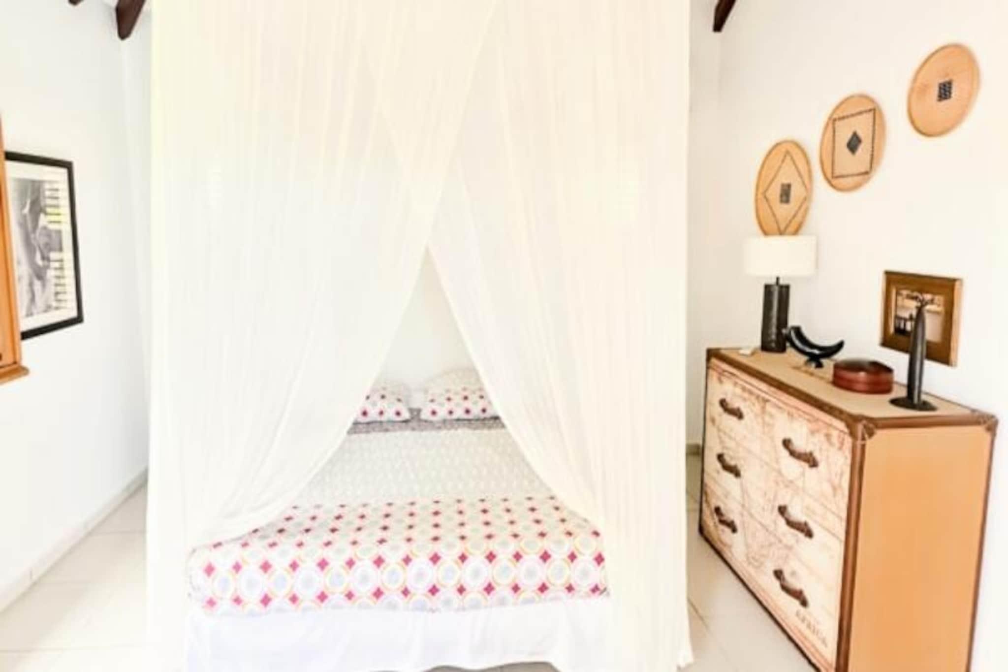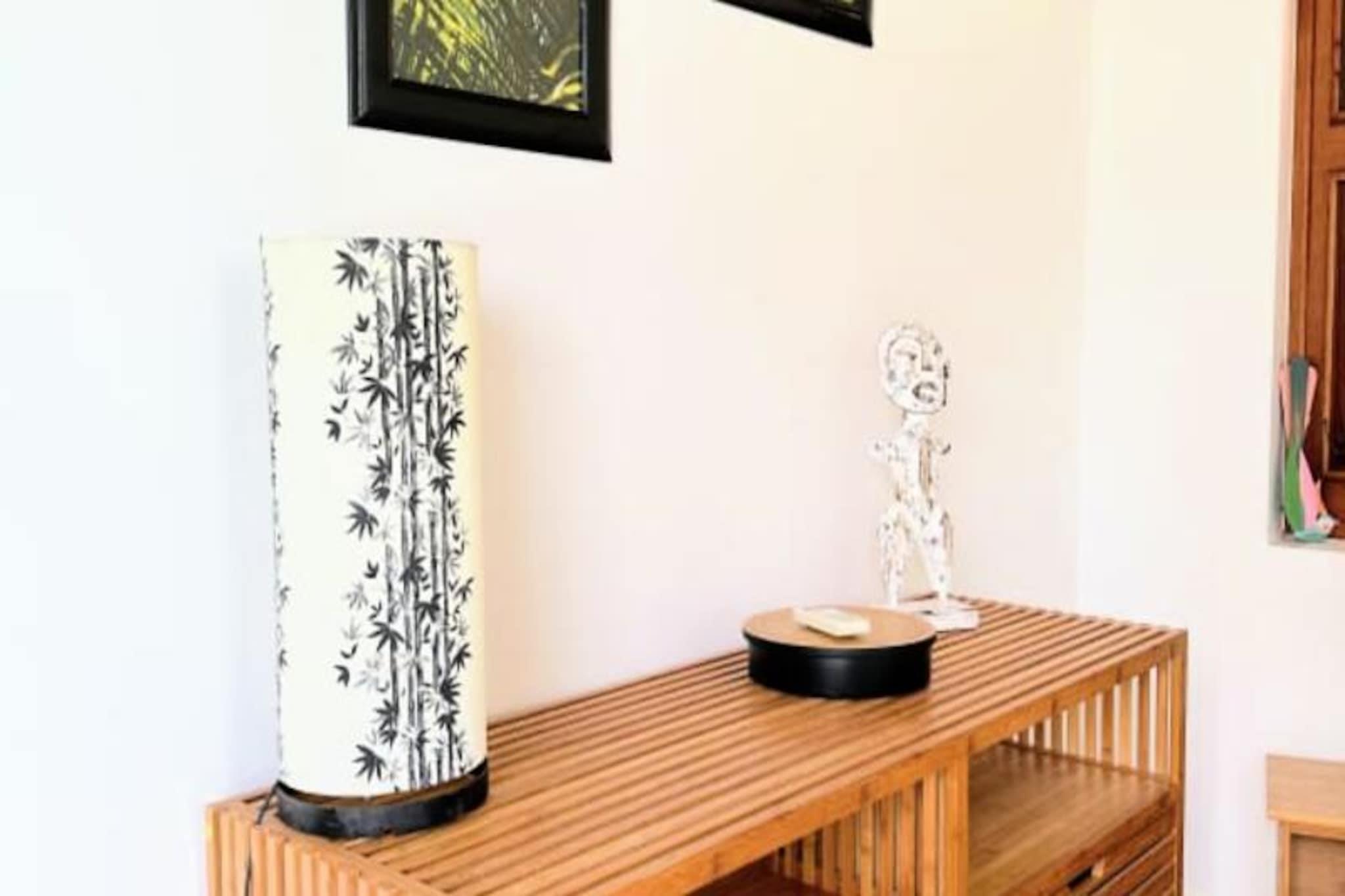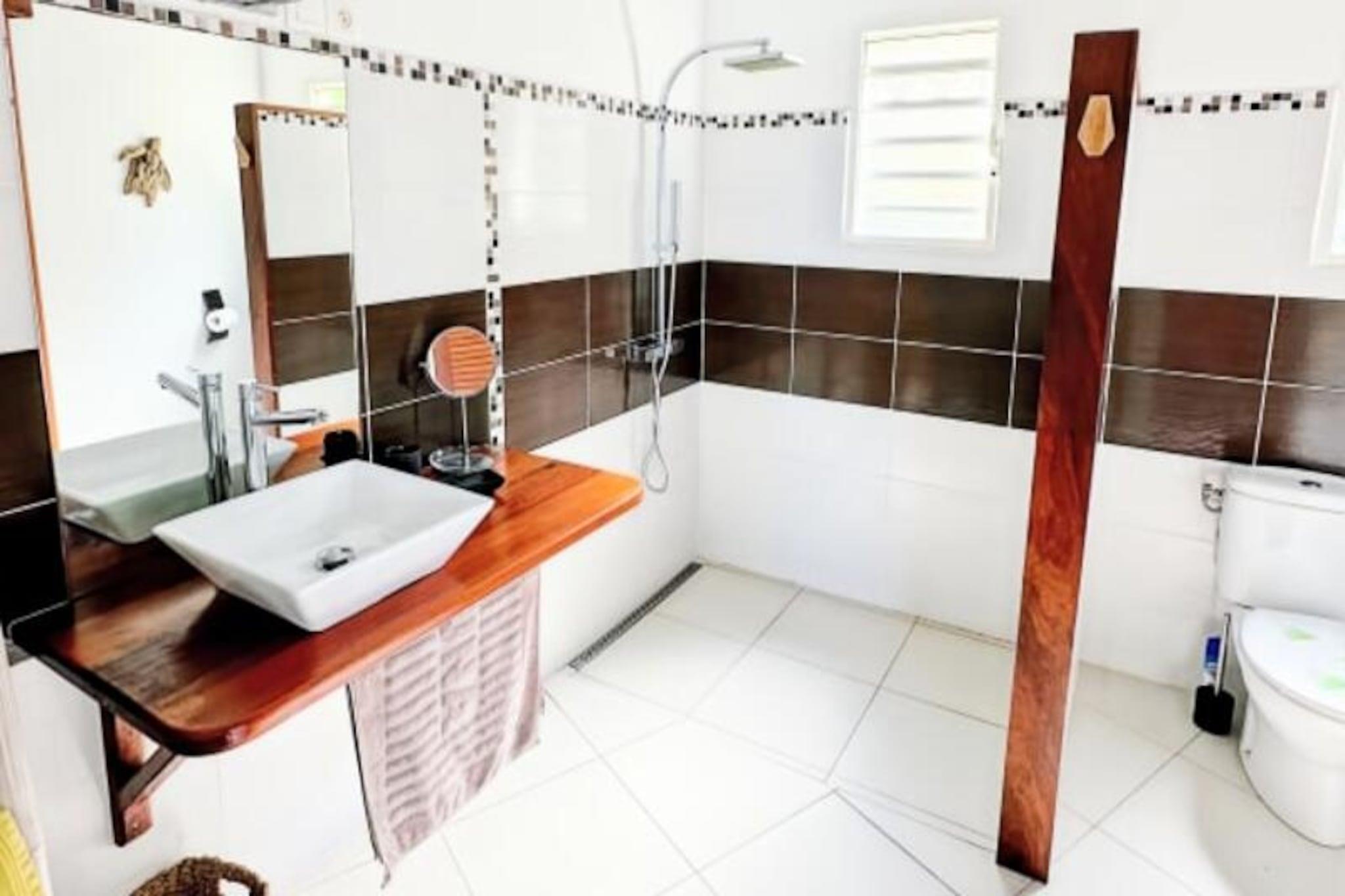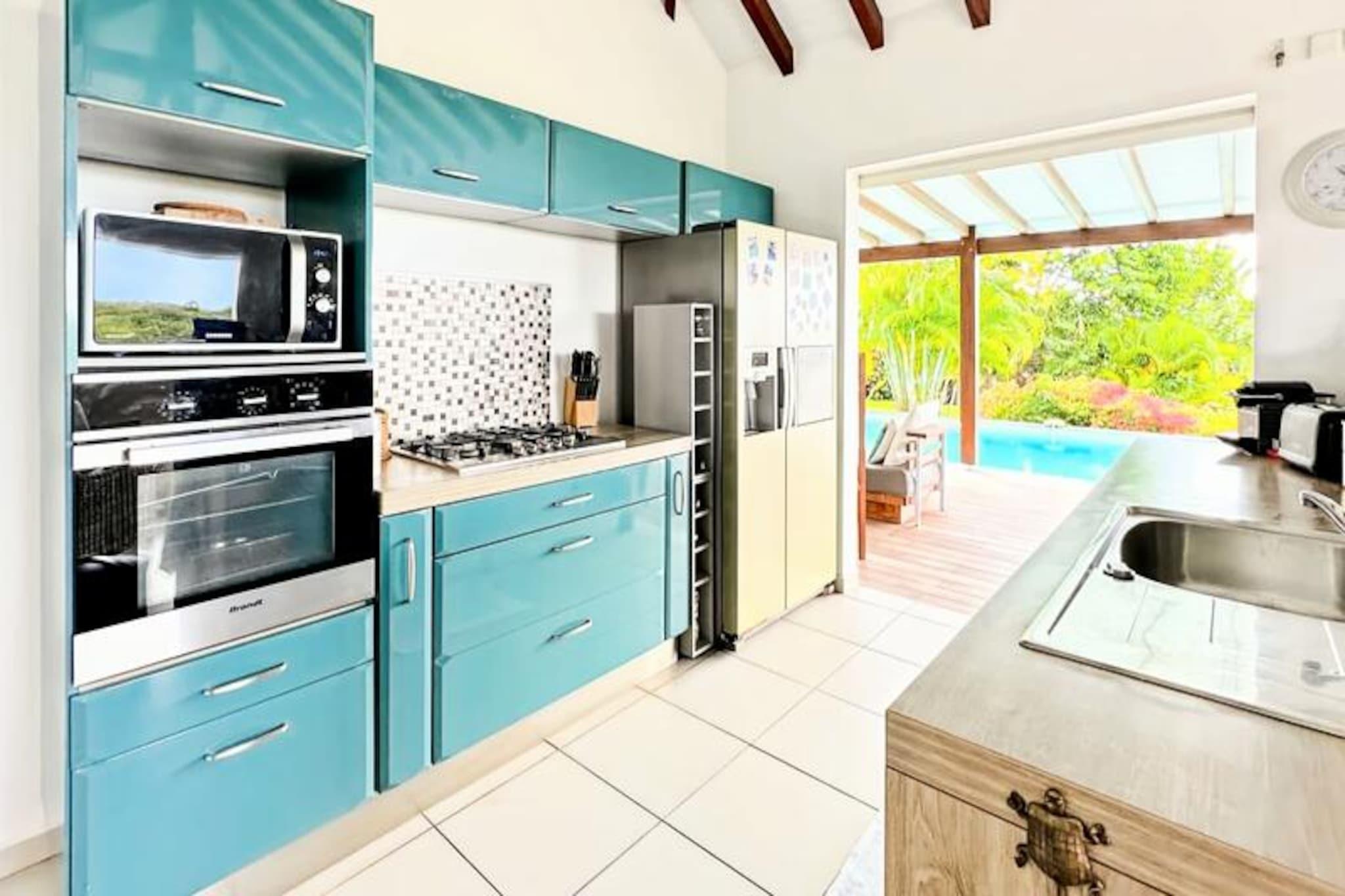 Imagine waking up to the gentle sound of waves and the sight of turquoise waters stretching to the horizon. This stunning villa in Grand-Bourg, Marie-Galante, offers a serene escape in the heart of the Caribbean. Surrounded by a lush 2000m² tropical garden, it’s a haven of tranquility where you can unwind and reconnect with nature. The villa’s elevated position provides breathtaking views of the sea and the surrounding islands of the archipelago, creating a picture-perfect backdrop for your holiday. Designed to accommodate up to six guests, the villa boasts three air-conditioned bedrooms, each featuring a 160cm double bed, mosquito nets, and a private bathroom with a walk-in shower. The spacious living areas include a fully equipped kitchen that opens onto a bright and airy living room and a gallery with an outdoor dining area. Whether you’re preparing a meal, lounging by the pool, or enjoying a barbecue evening, every corner of this villa is designed for comfort and relaxation. Additional amenities include a laundry area, an outdoor shower, and a hammock for those lazy afternoons. Located just 15 minutes from the charming town of Grand-Bourg, you’ll have easy access to local markets, Creole restaurants, and essential amenities. Explore the pristine beaches of La Feuillère and Anse Canot, perfect for swimming and sunbathing, or venture into the island’s sugarcane fields and hiking trails for a taste of its natural beauty. Whether you’re sipping a ti punch by the pool or gazing at the sunset from the deckchairs, this villa promises an unforgettable stay under the warm Guadeloupe sun. Let the soothing Caribbean breeze and the charm of Marie-Galante make your holiday truly special.