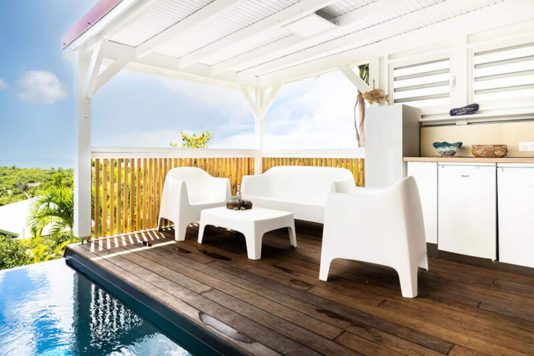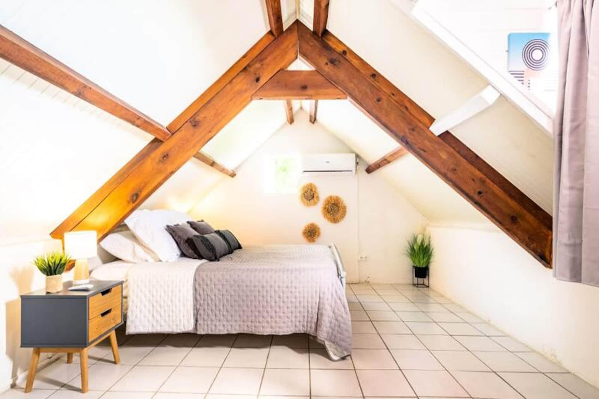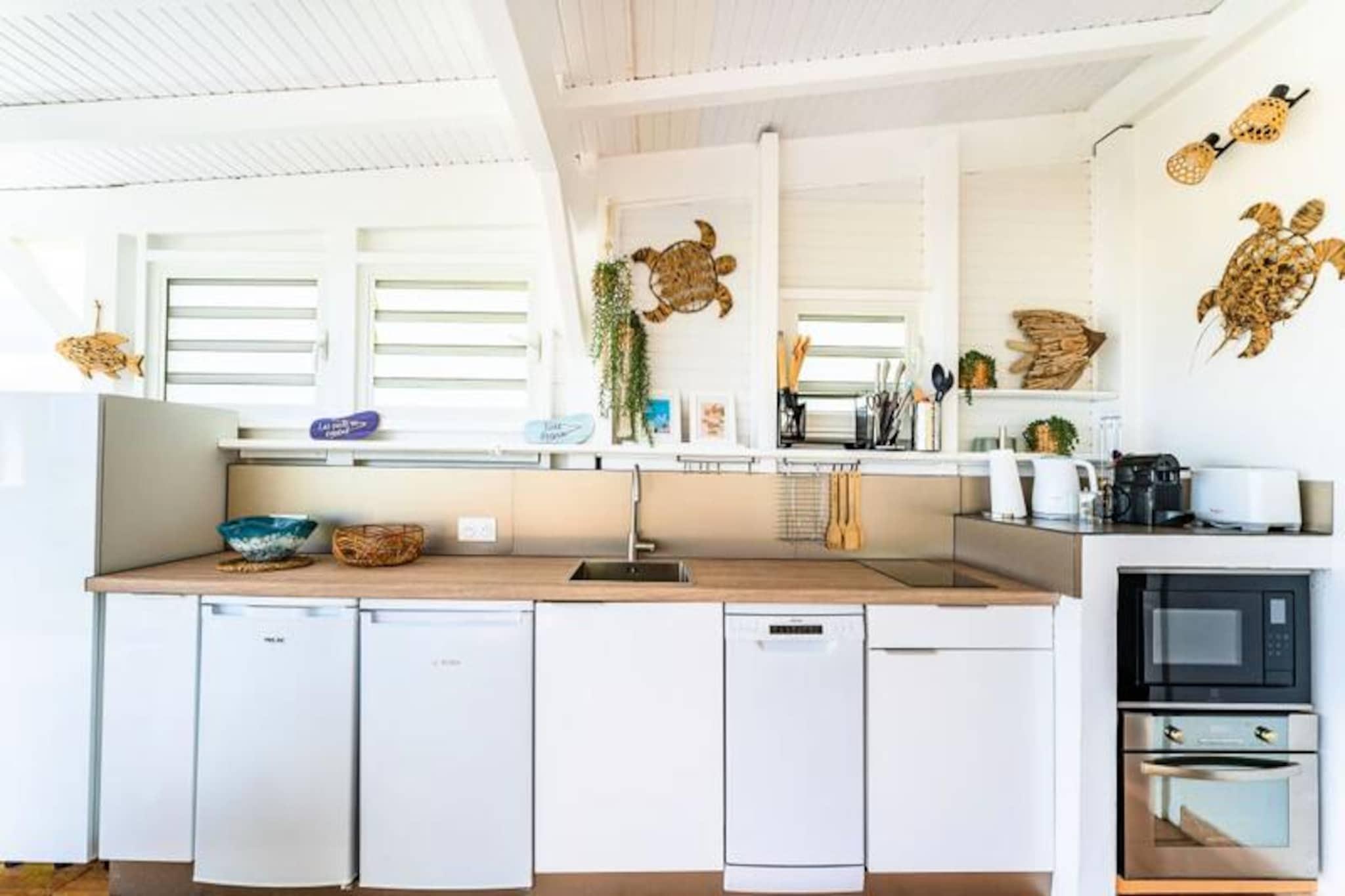 On the serene island of Marie-Galante, where time seems to slow down, Ti Moca villa offers a tranquil escape with breathtaking views of Les Saintes, Dominica, and Guadeloupe. This elegant retreat invites you to unwind amidst lush surroundings, with the gentle Caribbean breeze and the sound of waves setting the tone for your stay. Whether you're sipping a morning coffee on the terrace or watching the sun dip below the horizon, every moment here feels like a postcard come to life. Designed to accommodate up to six guests, Ti Moca features three air-conditioned bedrooms, including a charming upstairs room, and two well-appointed bathrooms. The villa's outdoor kitchen is a delightful space to prepare meals, while the dining area is perfect for sharing laughter and local delicacies with loved ones. The private swimming pool offers a refreshing oasis, and pool towels are thoughtfully provided for your convenience. Every detail, from the villa's airy layout to its hotel-quality linens, has been curated to ensure maximum comfort. Located in Grand-Bourg, Ti Moca is just a short drive from the island's most stunning beaches, including La Feuillère and Anse Canot, where turquoise waters and soft sands await. The nearby village offers all essential amenities, from supermarkets to Creole restaurants and vibrant local markets. For nature enthusiasts, the island's hiking trails and sugarcane fields provide a glimpse into its authentic charm and natural beauty. Whether you're seeking relaxation, adventure, or a mix of both, Ti Moca is the perfect base for creating unforgettable memories under the Caribbean sun. Pair it with the neighboring Villa Moca for larger groups, and let the island's magic unfold around you.