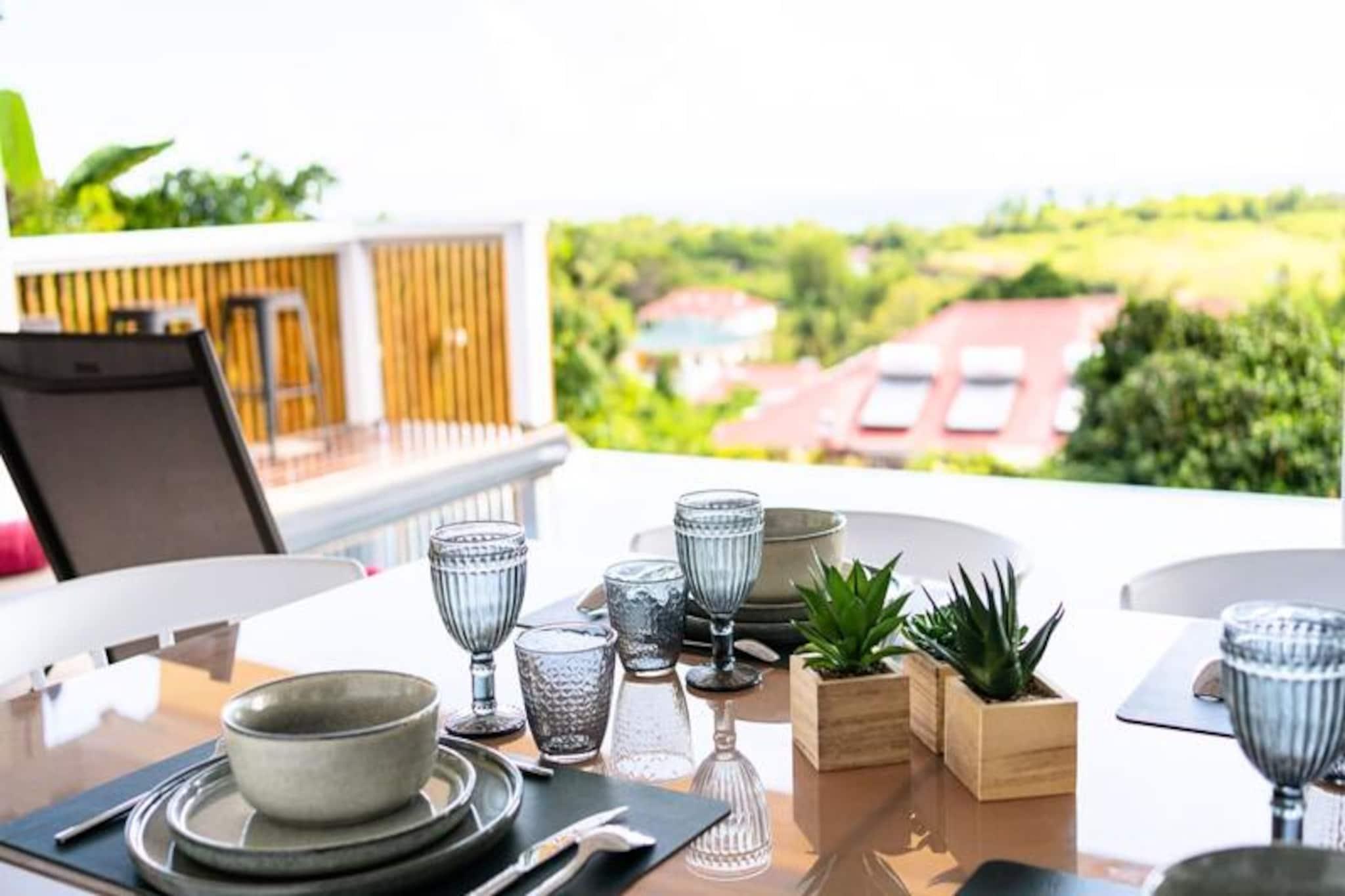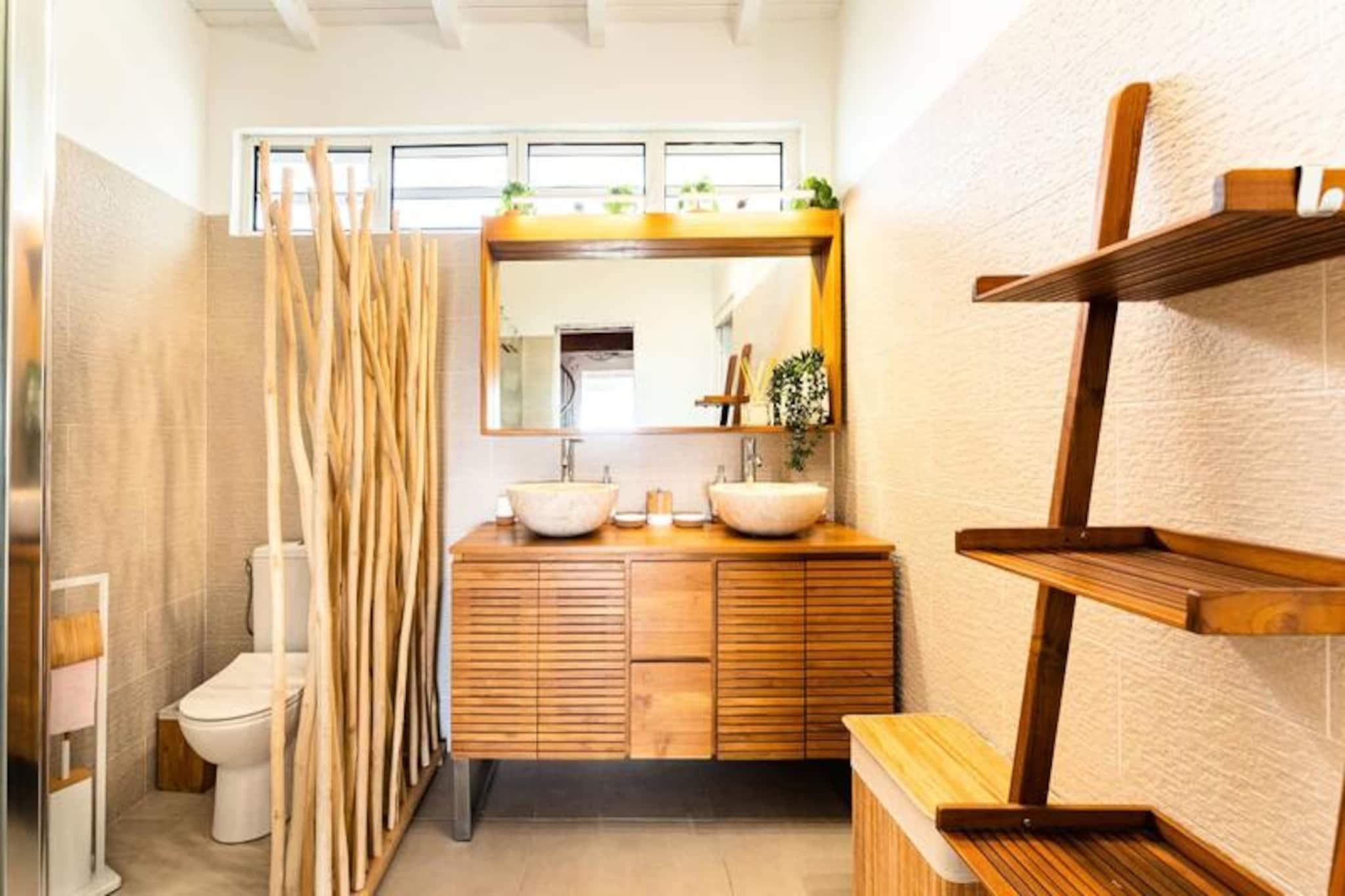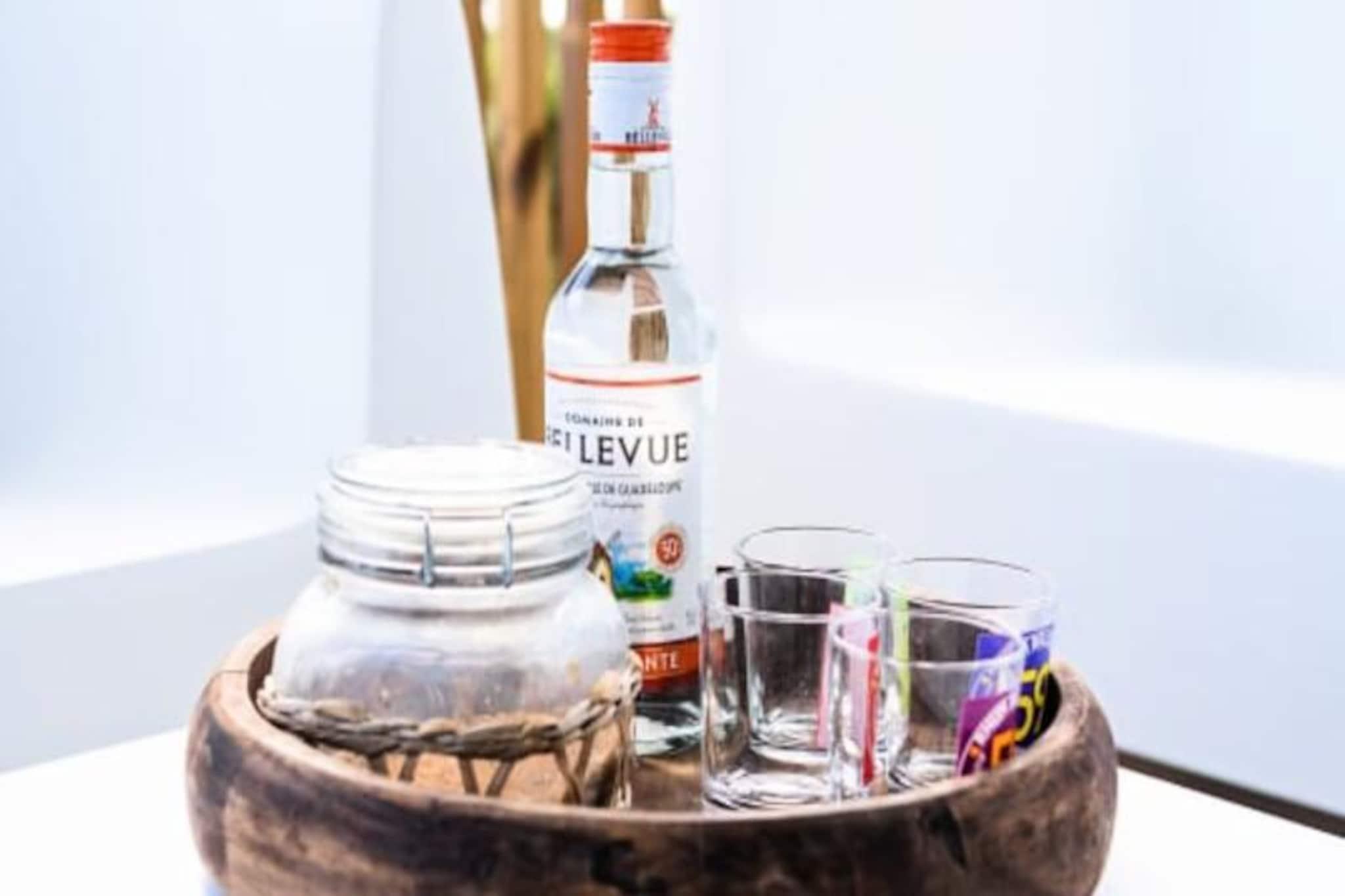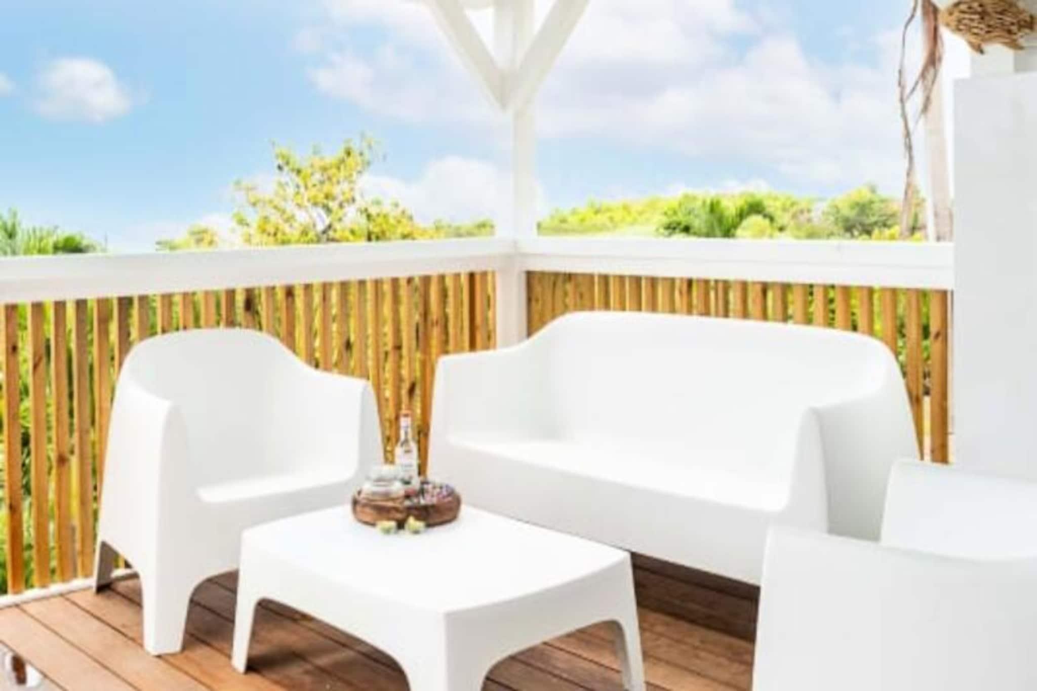 On the serene island of Marie-Galante, where time seems to slow down, Ti Moca villa offers a tranquil escape with breathtaking views of Les Saintes, Dominica, and Guadeloupe. This elegant retreat invites you to unwind amidst lush surroundings, with the gentle Caribbean breeze and the sound of waves setting the tone for your stay. Whether you're sipping a morning coffee on the terrace or watching the sun dip below the horizon, every moment here feels like a postcard come to life. Designed to accommodate up to six guests, Ti Moca features three air-conditioned bedrooms, including a charming upstairs room, and two well-appointed bathrooms. The villa's outdoor kitchen is a delightful space to prepare meals, while the dining area is perfect for sharing laughter and local delicacies with loved ones. The private swimming pool offers a refreshing oasis, and pool towels are thoughtfully provided for your convenience. Every detail, from the villa's airy layout to its hotel-quality linens, has been curated to ensure maximum comfort. Located in Grand-Bourg, Ti Moca is just a short drive from the island's most stunning beaches, including La Feuillère and Anse Canot, where turquoise waters and soft sands await. The nearby village offers all essential amenities, from supermarkets to Creole restaurants and vibrant local markets. For nature enthusiasts, the island's hiking trails and sugarcane fields provide a glimpse into its authentic charm and natural beauty. Whether you're seeking relaxation, adventure, or a mix of both, Ti Moca is the perfect base for creating unforgettable memories under the Caribbean sun. Pair it with the neighboring Villa Moca for larger groups, and let the island's magic unfold around you.