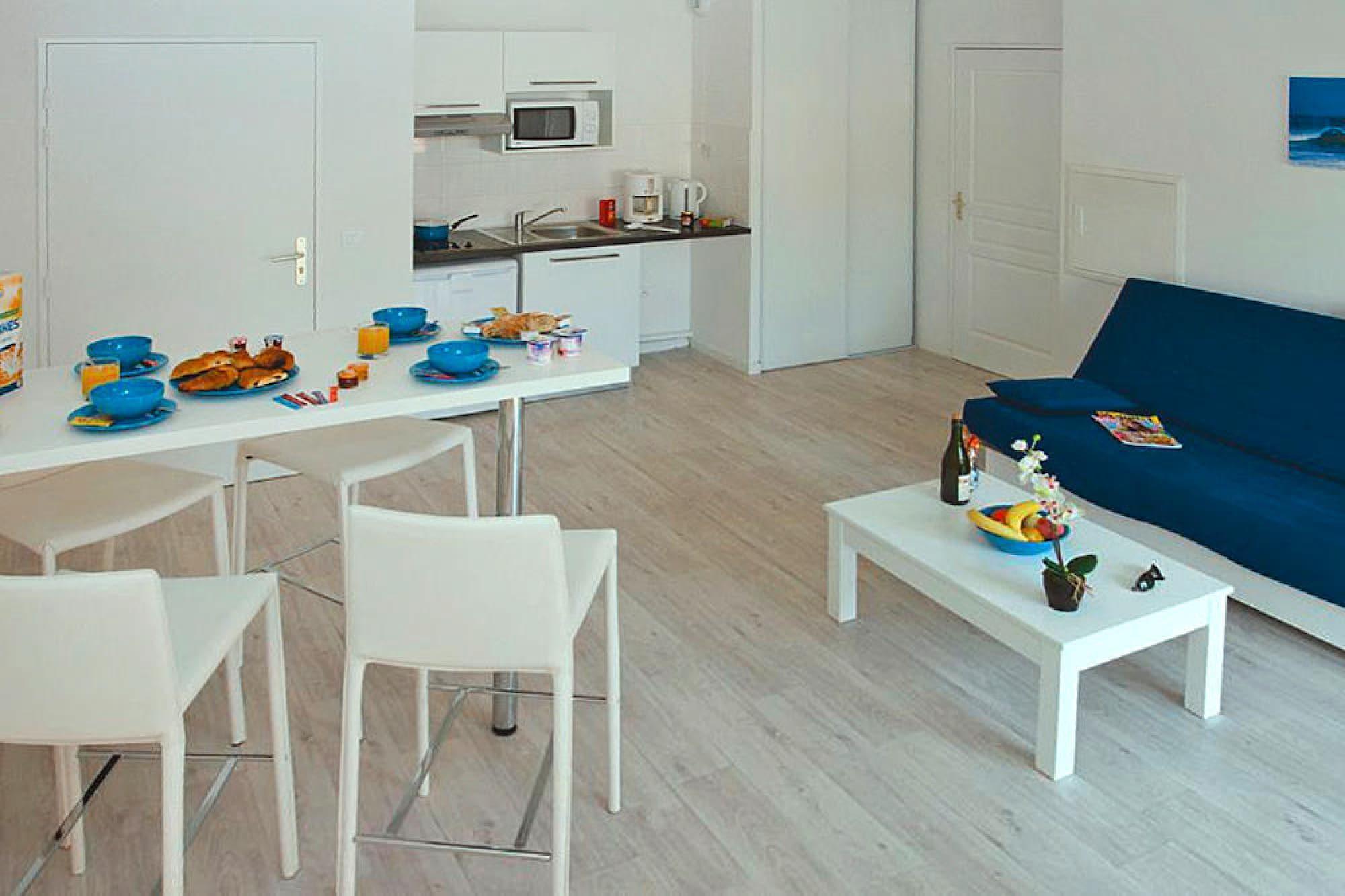 Only 100 m from the fishing port and 200 m from the small beach! The bright and friendly furnished accommodations are located in a three-storey building that surrounds the courtyard with a communal outdoor pool. Located between Utah and Omaha Beach, this resort is a perfect vacation spot from which to explore the area. Included: Consumption-based energy costs, bed linen, towels, final cleaning, WiFi Activities nearby: Not far away is the beautiful town of Bayeux, famous for its cathedral, porcelain and lace museums and very well-preserved tapestries from the Viking Age. Canoes can be hired to explore the Marais Regional Park. Horse lovers are recommended to visit the national stud in St.-LÔ, where beautiful horses from the region, parades and teams are displayed. A day trip is particularly recommended to the famous monastic mountain Mont St. Michel.