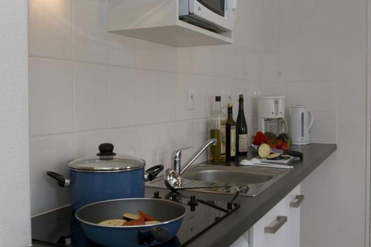 Kitchenette(hob(2 ring stoves, ceramic), electric kettle, coffee machine, microwave, fridge), Living/diningroom(double sofa bed, TV), bedroom(double bed(180 x 190 cm)), bathroom(shower, toilet), tumble dryer(shared with other guests, paid), washing machine(shared with other guests, paid), balcony or terrace, heating, garden furniture, swimming pool(shared with other guests, outside, heatable, opened from 1/2 Apr upto and including Sep), high chair, baby crib(free)