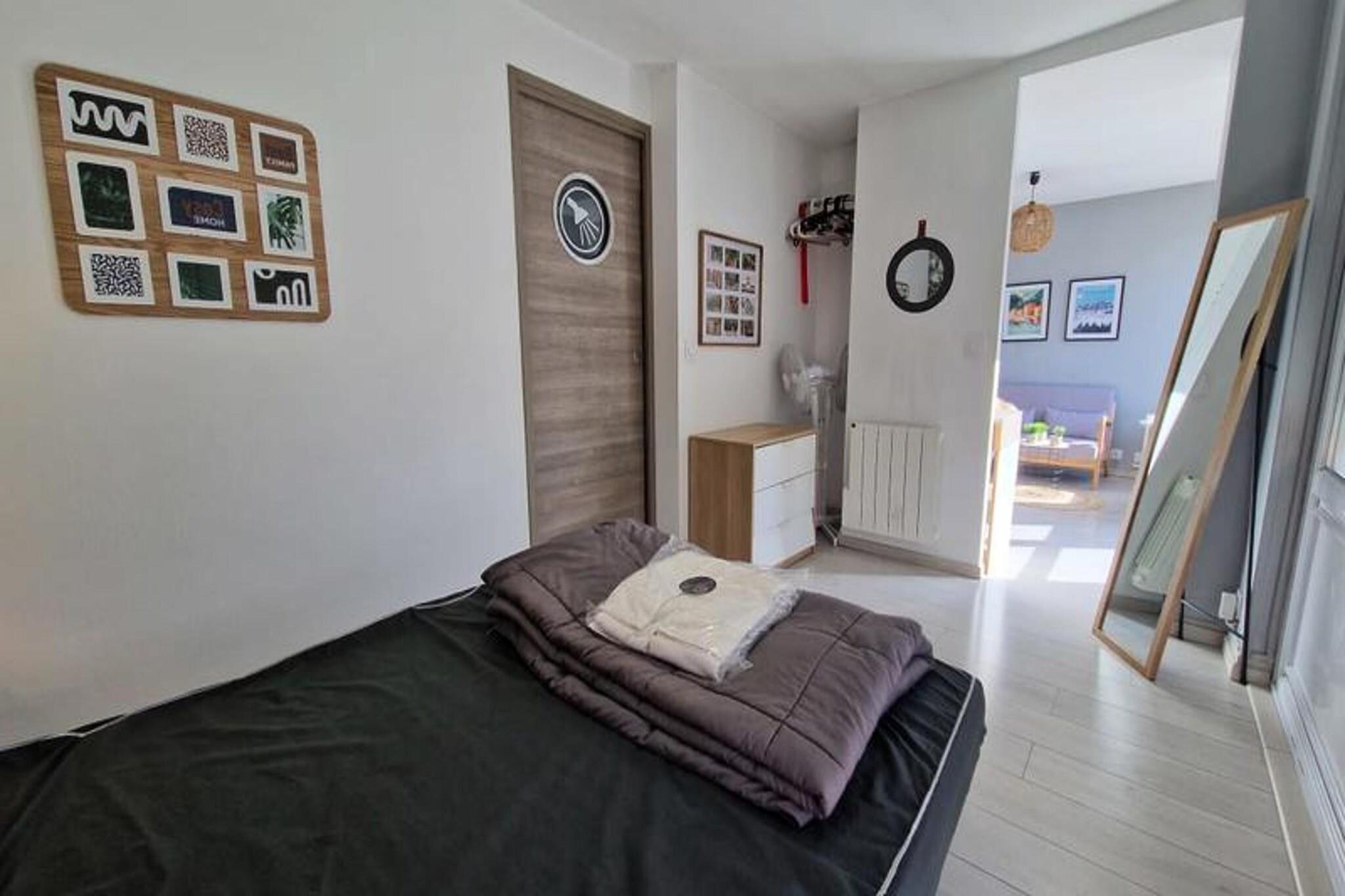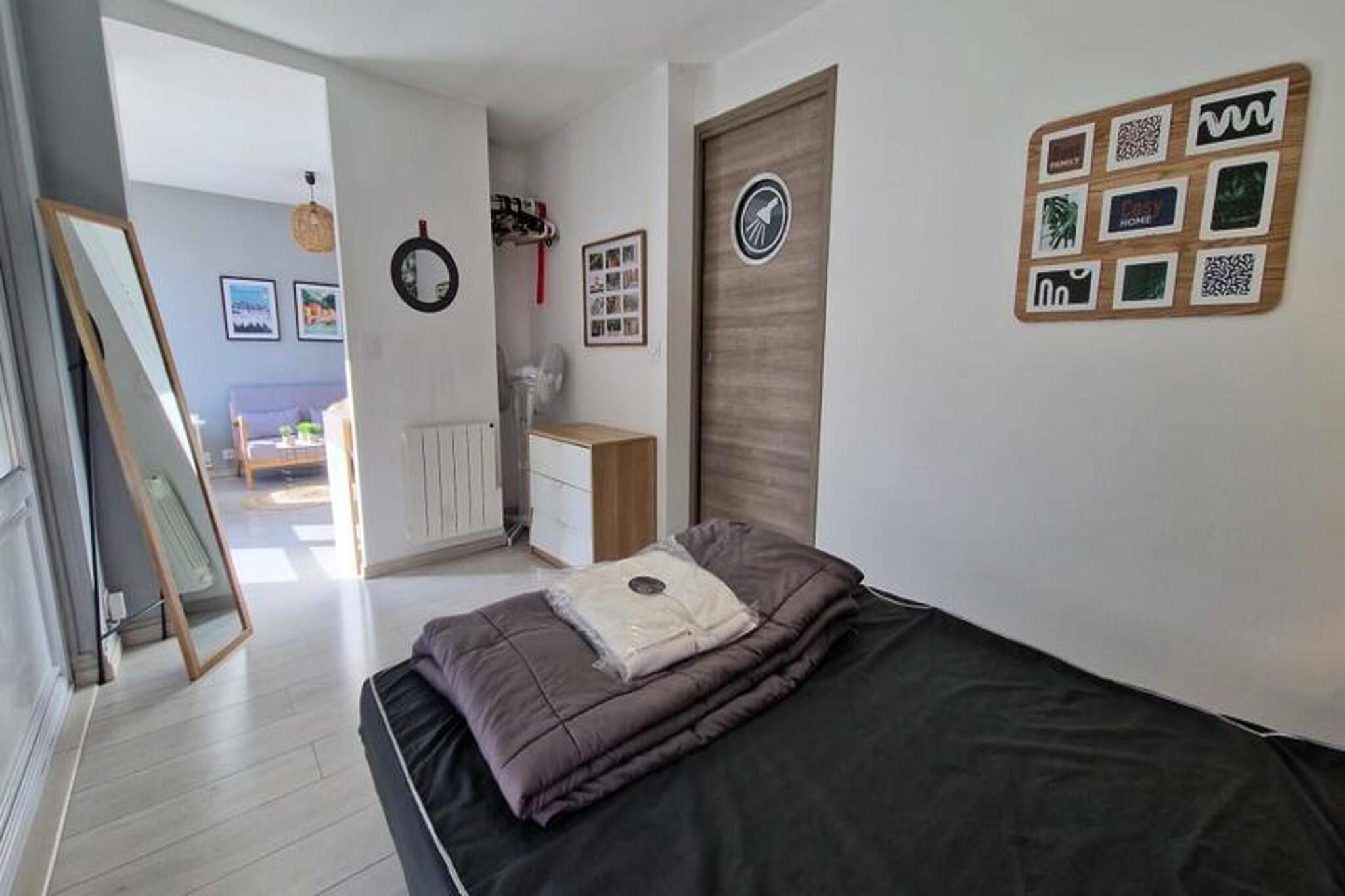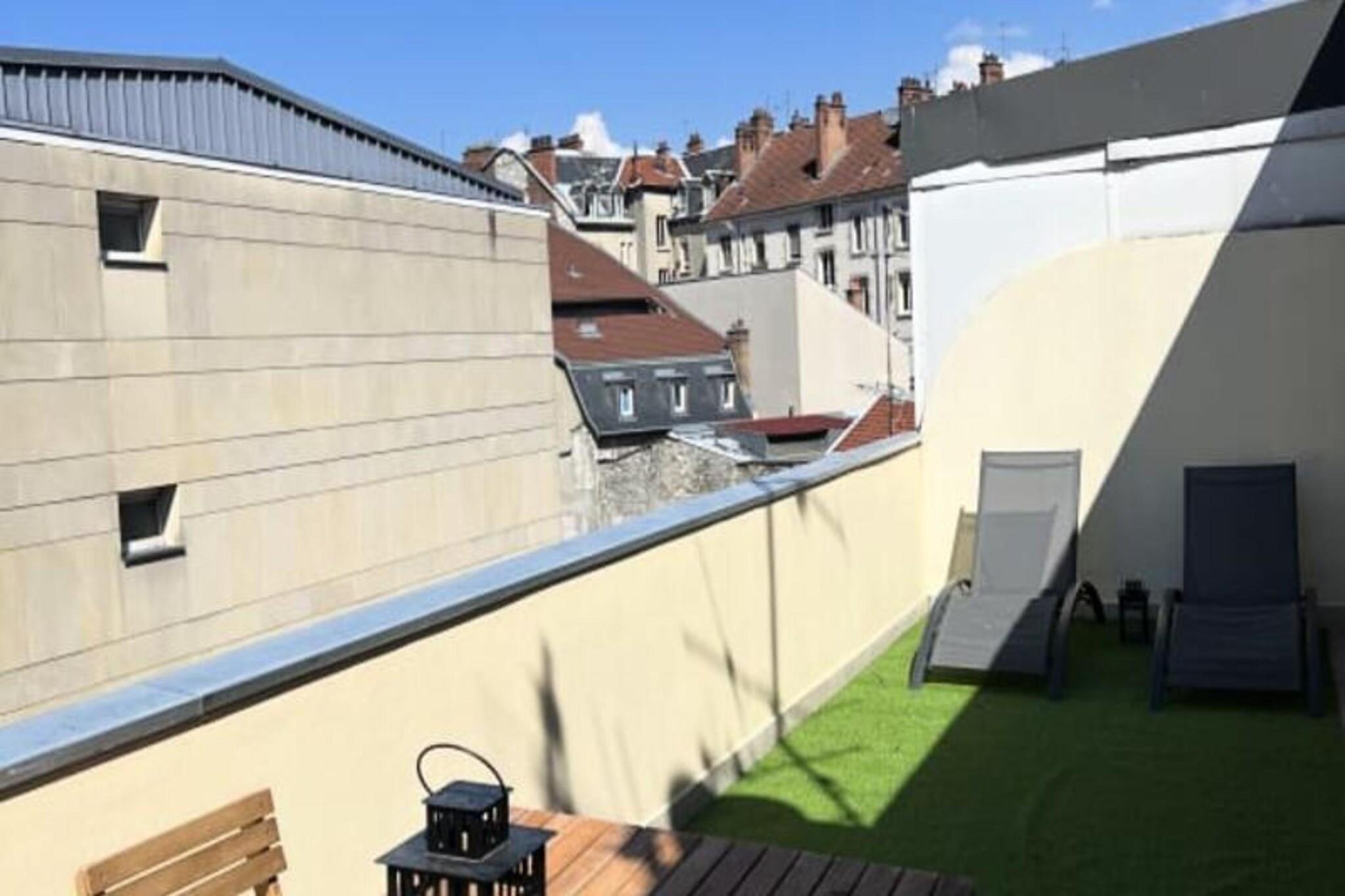 This charming T2 apartment offers a cozy and quiet retreat with a large terrace, ideal for up to two guests. Located on the 3rd and top floor without an elevator, it features a double bedroom with electric shutters for a peaceful sleep, a comfortable living room, and a modern bathroom with a shower and WC. The apartment is pet-friendly, ensuring that your furry companions can join you during your stay. The apartment provides free Wi-Fi, television, and essential kitchen equipment such as a fridge/freezer, hotplates, microwave, kettle, and a Dolce Gusto coffee maker. Bed linen and towels are provided for two guests. Located in the heart of Grenoble, this apartment is just a 1-minute walk from a supermarket, bakery, laundromat, and pharmacy, making it highly convenient for daily needs. Within a 5-minute walk, you can explore the historic city center with its pedestrian streets, various shops, restaurants, bars, and more. Public transport is easily accessible, with tram lines A, B, and E at the Alsace-Lorraine stop, only 3 minutes on foot. Whether you prefer to explore the area on foot or by bike, you'll have easy access to everything the city offers. The apartment features a fully equipped kitchen, allowing guests to prepare their meals in comfort. The spacious terrace offers magnificent views and is a perfect spot to unwind. The washroom is modern, and the apartment comes with ample storage space to make your stay more convenient. Independent access ensures privacy, and the apartment is clean and well-maintained for a relaxing experience.