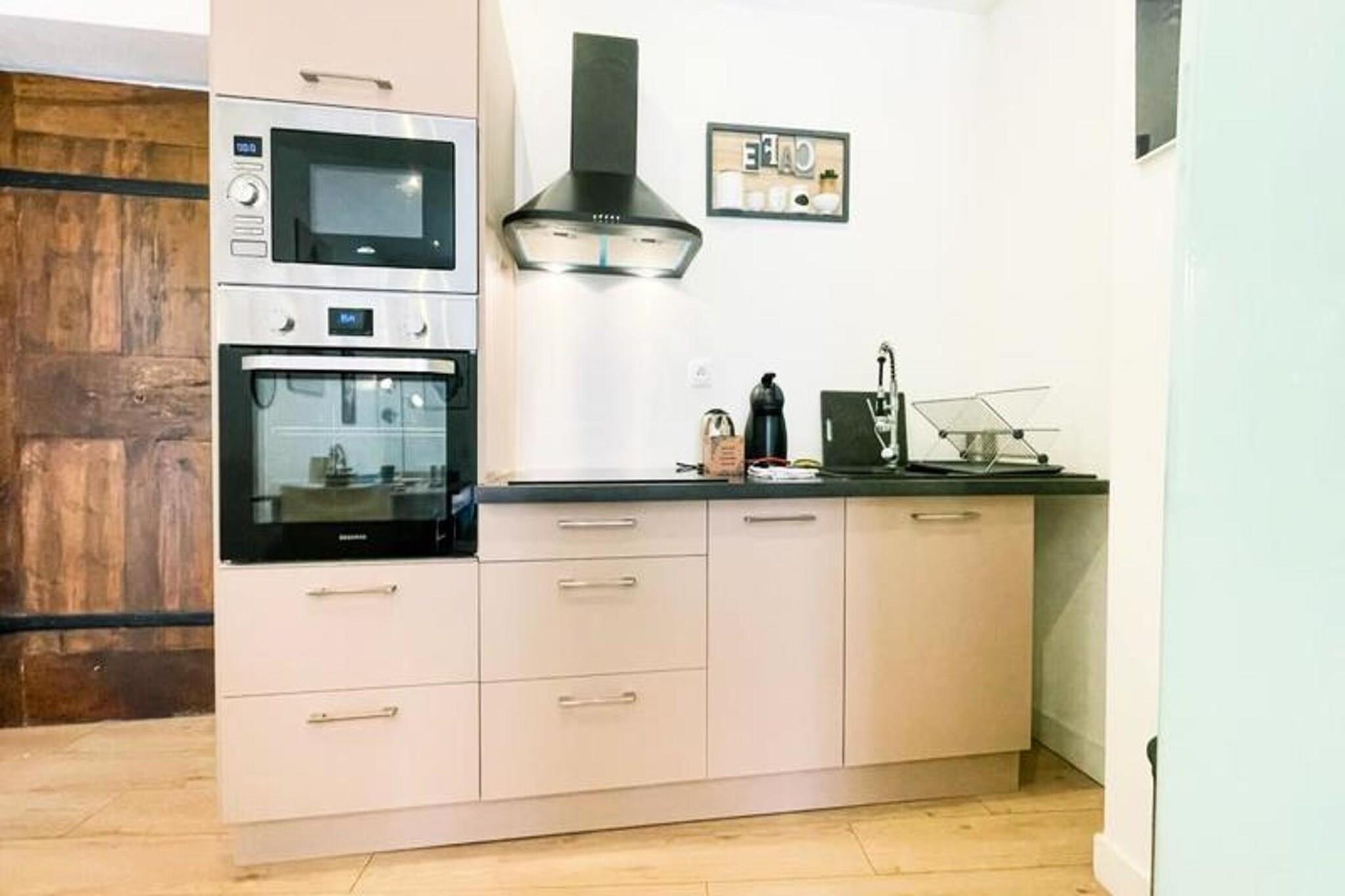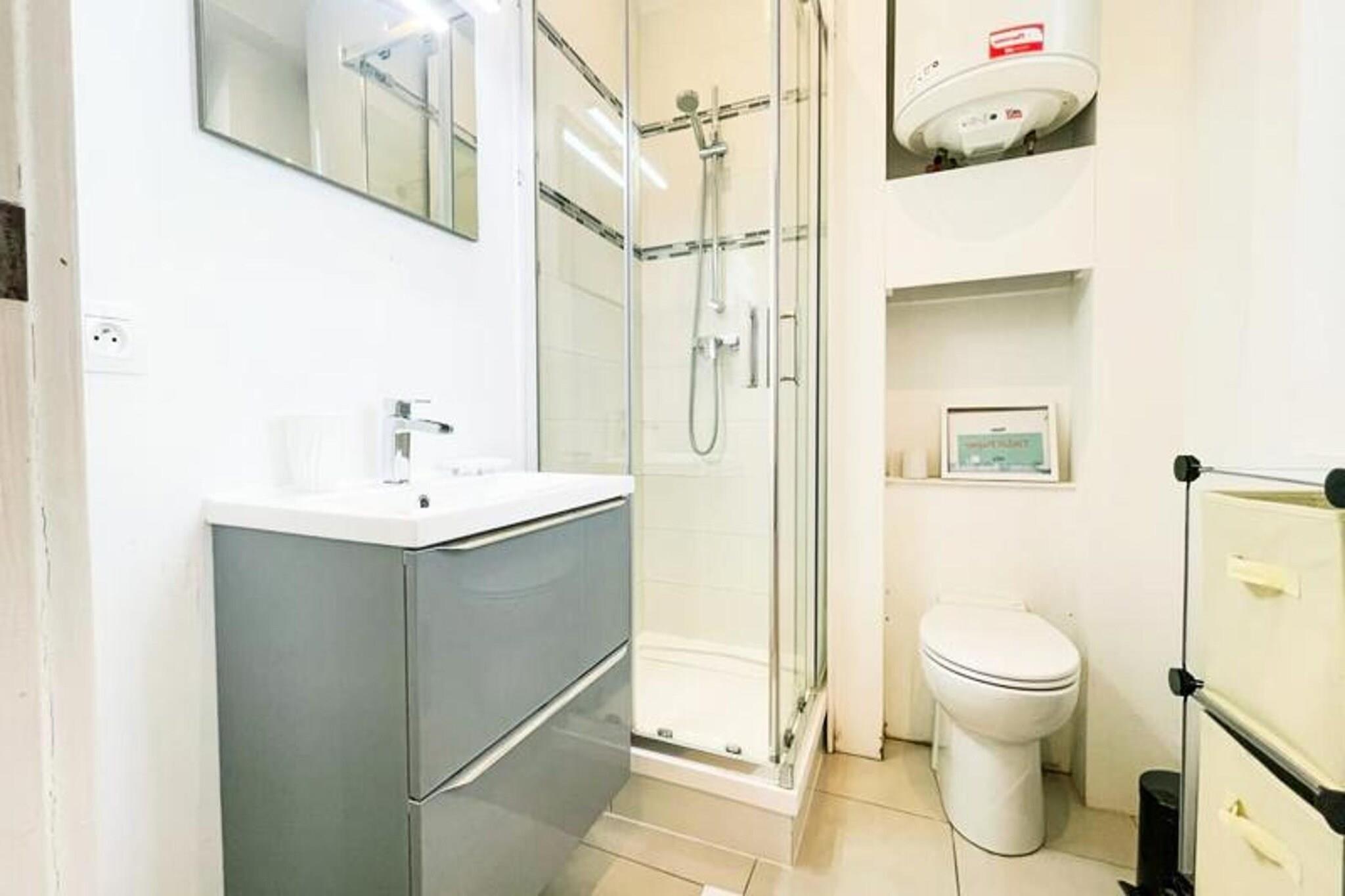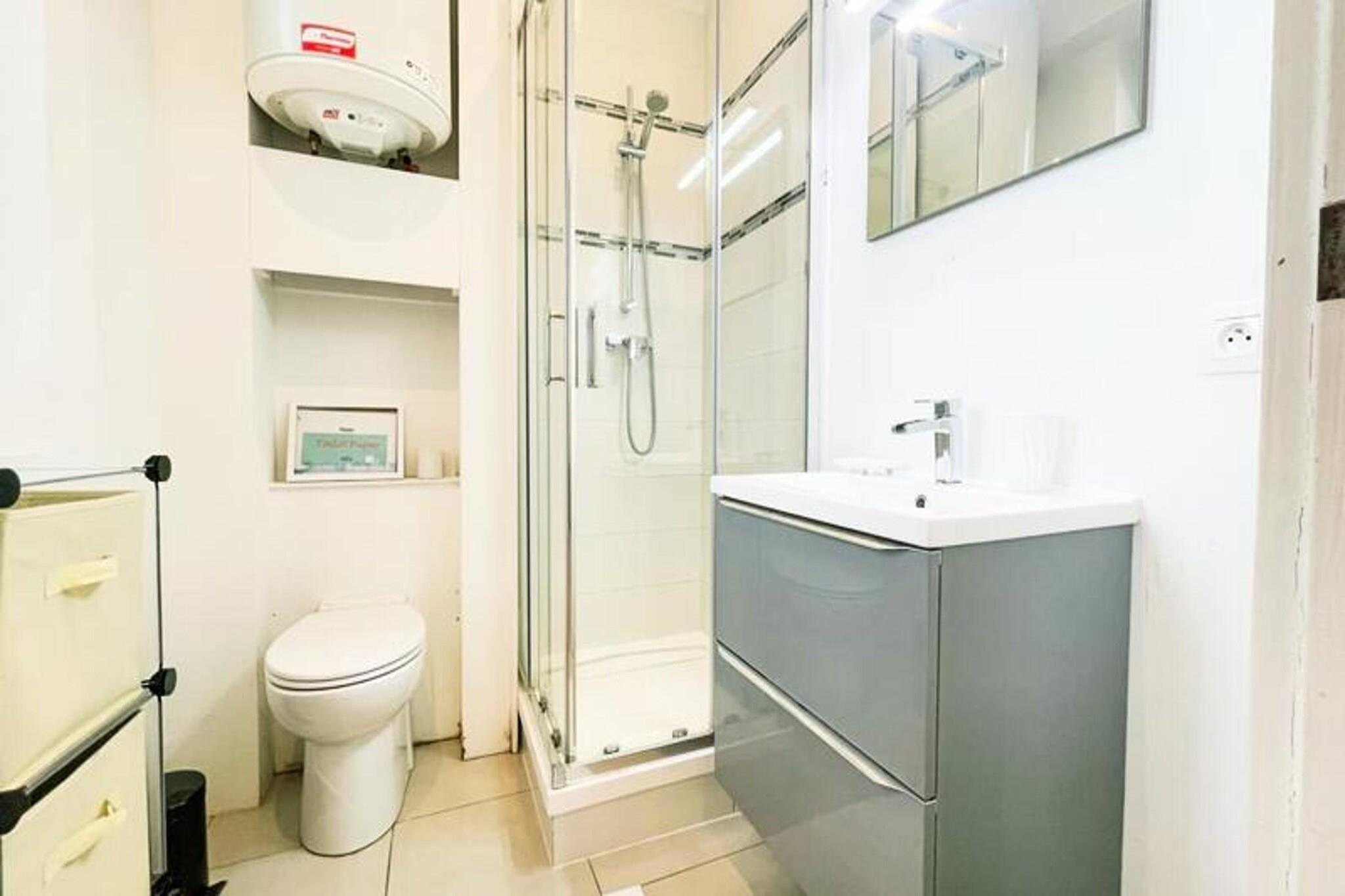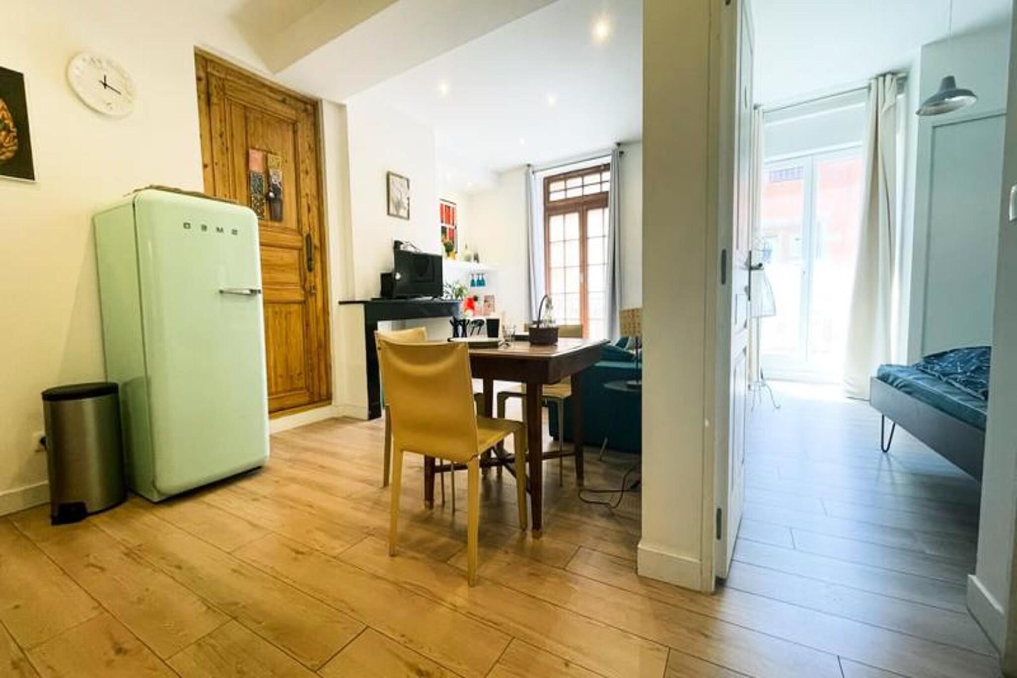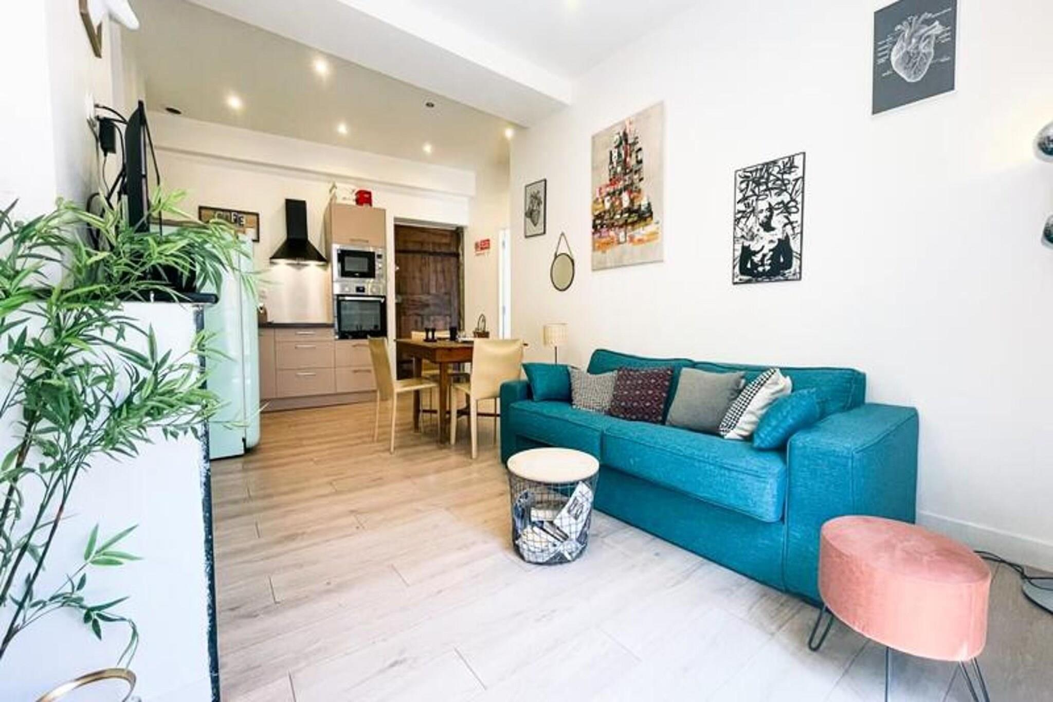This chic T2 apartment offers a cozy stay in the heart of Grenoble. Located on the third floor (without an elevator), it features a double bedroom with a queen-sized bed, a sofa bed in the living room, and a newly renovated bathroom. The apartment accommodates up to 2 guests and is pet-friendly with an additional fee. Amenities include high-speed Wi-Fi, a television, and a fully equipped kitchen with modern appliances such as a SMEG fridge/freezer, oven, microwave, toaster, kettle, induction hob, and Dolce Gusto coffee maker. Bed linens and towels are provided, along with plenty of storage space. The apartment is ideally located in the historic city center, just a 3-minute walk from the Sainte Claire les Halles tram stop (Tram B) and the lively Galeries Lafayette. The area is full of cafes, terraces, and charming restaurants, including the oldest restaurant in Grenoble, La Table Ronde, dating back to 1739. A covered market hall, with fresh local products, is only a 3-minute walk away, and the city garden offers shaded terraces during the summer. You’ll be right in the heart of Grenoble's vibrant atmosphere. The apartment also offers a well-equipped kitchen and a modern bathroom with a towel dryer. Enjoy the simple yet refined décor throughout the space. For convenience, parking is available nearby, with the Lafayette car park just a 3-minute walk away and the Museum car park 5 minutes away.