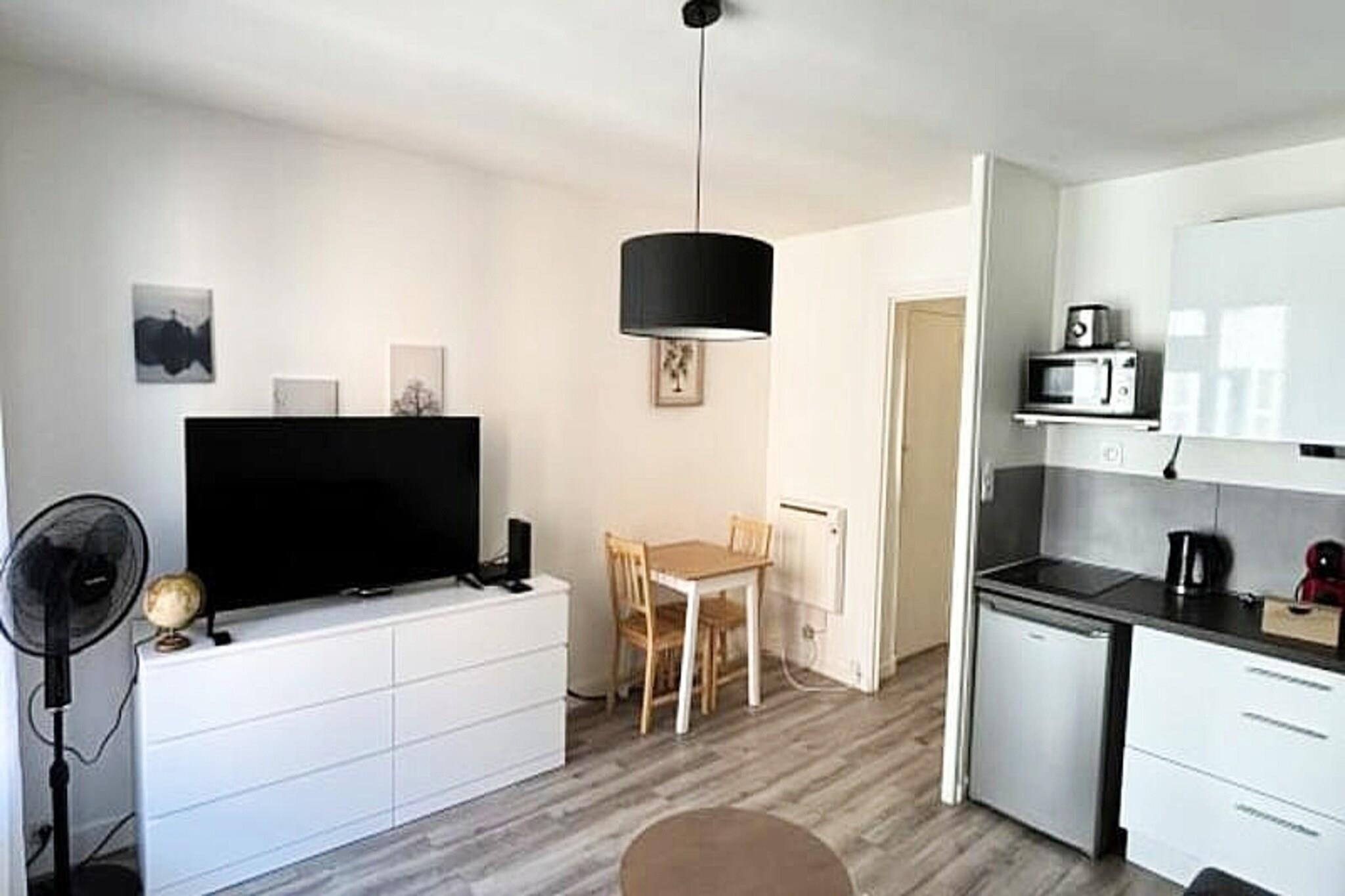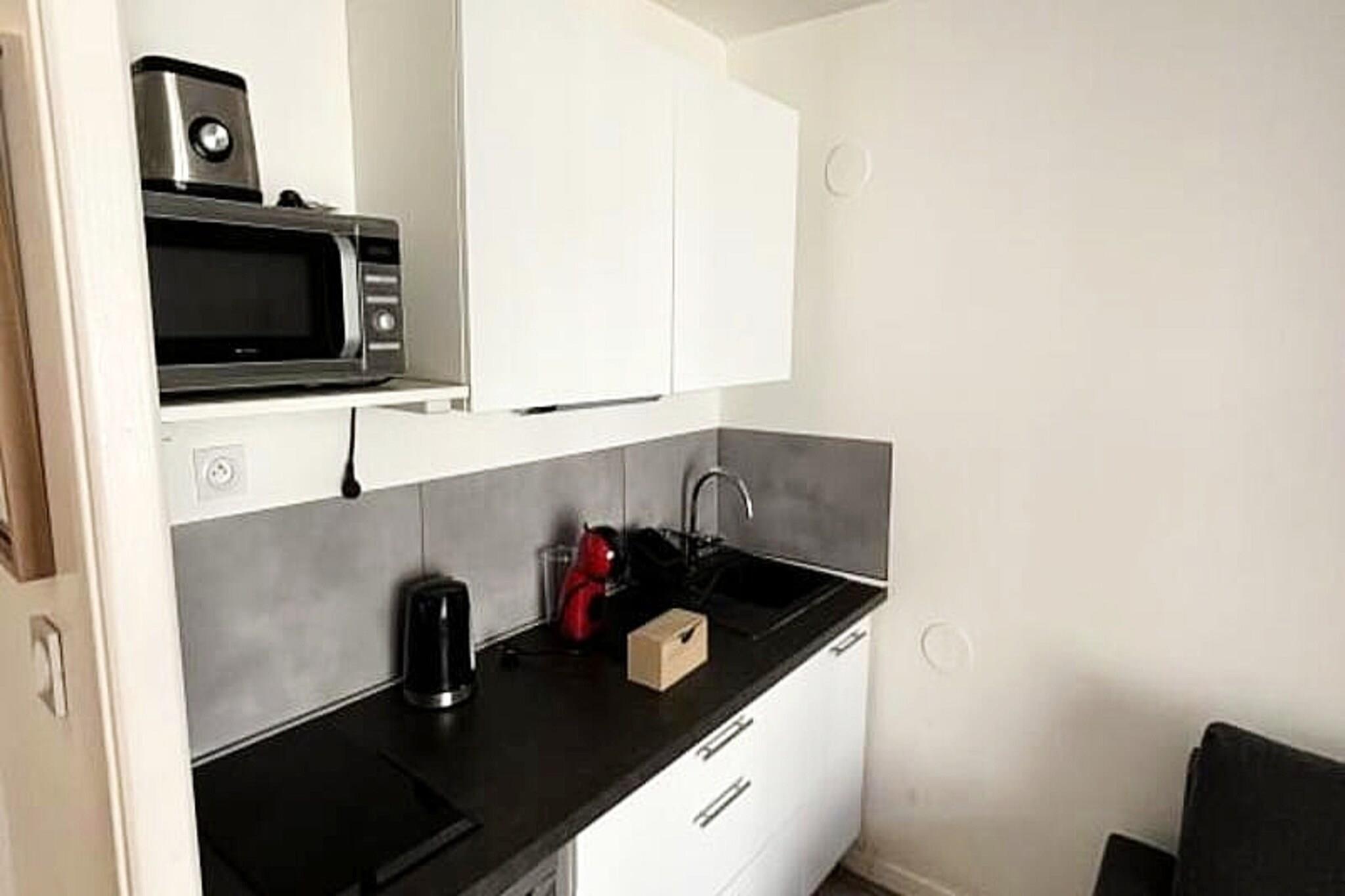 This cozy studio apartment is perfect for both short and long stays, offering a comfortable space for up to 2 guests. The living area includes a convertible sofa bed and a fan for warmer days. The apartment is pet-friendly with an additional fee for pets. Amenities include a flat-screen television, free Wi-Fi, bed linen and towels for 2 guests, and a washing machine for added convenience. Guests can enjoy the furnished balcony with a table and two chairs, perfect for relaxing outdoors. Located in the heart of Grenoble, the apartment is just a 2-minute walk from Place Grenette and the historic city center, where you’ll find pedestrian streets, shops, cafes, and restaurants. The vibrant Hyper Center district is teeming with local attractions and is ideal for those wanting to explore the capital of the Alps. Public transport options, such as the Victor Hugo or Hubert Dubedout tram stops, are a short walk away, offering easy access to all parts of the city. The studio features a fully equipped kitchenette with a microwave, coffee maker, kettle, toaster, and other essential appliances. The modern bathroom includes a shower, WC, and washing machine. The apartment is designed with comfort and practicality in mind, ensuring a pleasant stay with everything you need for a hassle-free experience.