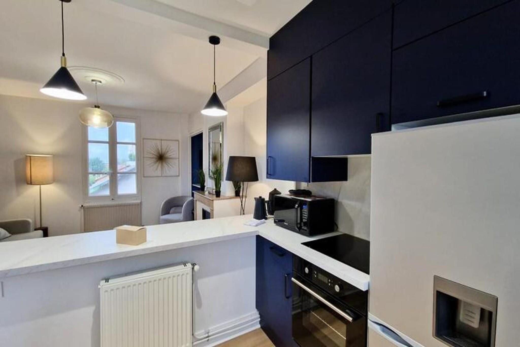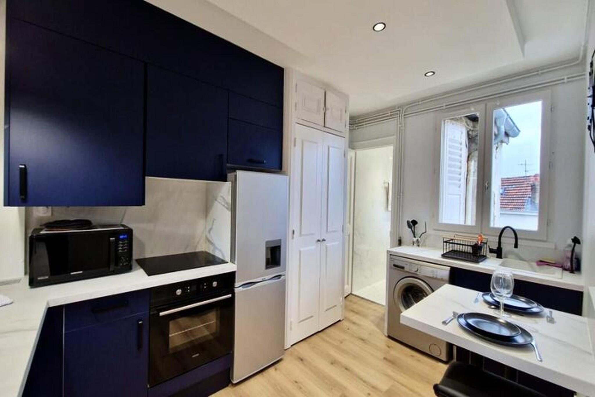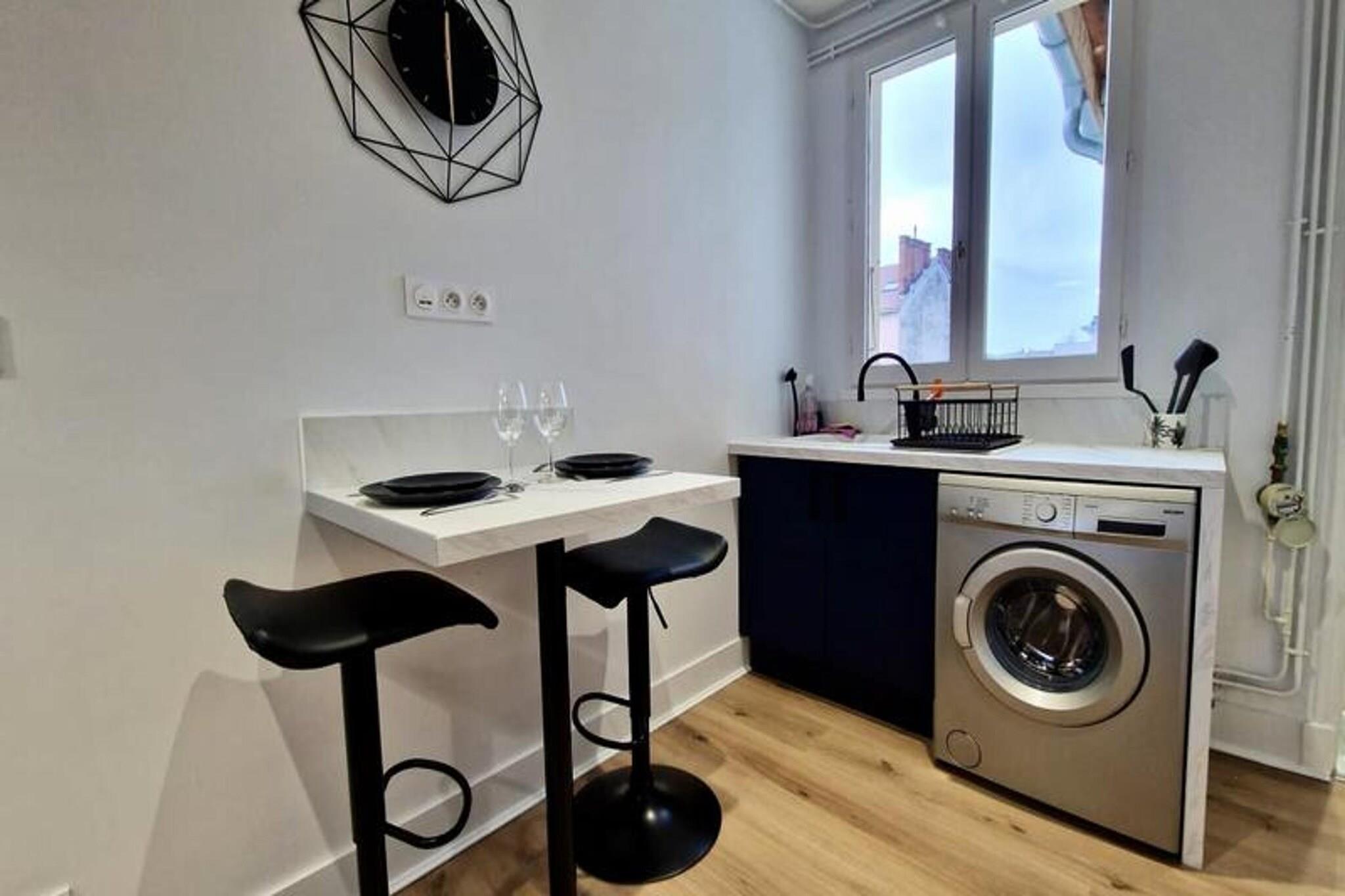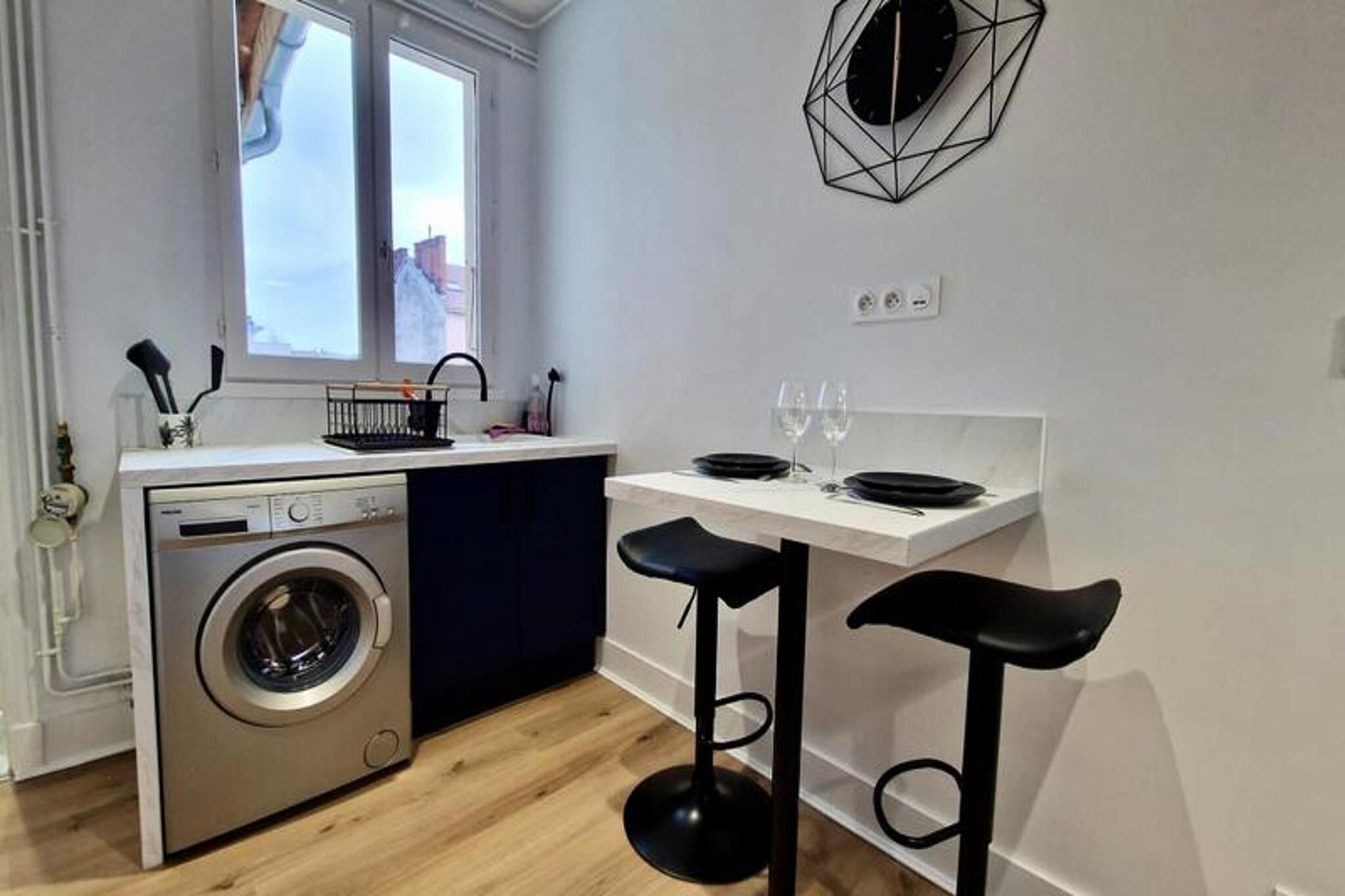 This beautiful and spacious T2 apartment is located on the 3rd floor of a building in Grenoble’s city center. It offers a comfortable double bed in the quiet, independent bedroom overlooking a courtyard, making it ideal for a peaceful stay. The apartment can accommodate up to two people and is pet-friendly. It includes essential amenities like Wi-Fi, a TV, and bed linens, as well as towels for two guests on arrival. Conveniently situated near the SNCF station, the apartment is easily accessible by tram (lines A and B) and bus (C1, X01, X02, X03). It’s just a short walk from local attractions, cafes, and markets. For those driving, free street parking is available directly outside the property, providing extra convenience. The apartment is fully equipped for your stay, with an open kitchen featuring a microwave, oven, fridge, coffee maker, kettle, and hotplates. The kitchen also includes a washing machine for added comfort. The bathroom is modern, with an Italian-style shower and WC, offering a relaxing space to unwind.