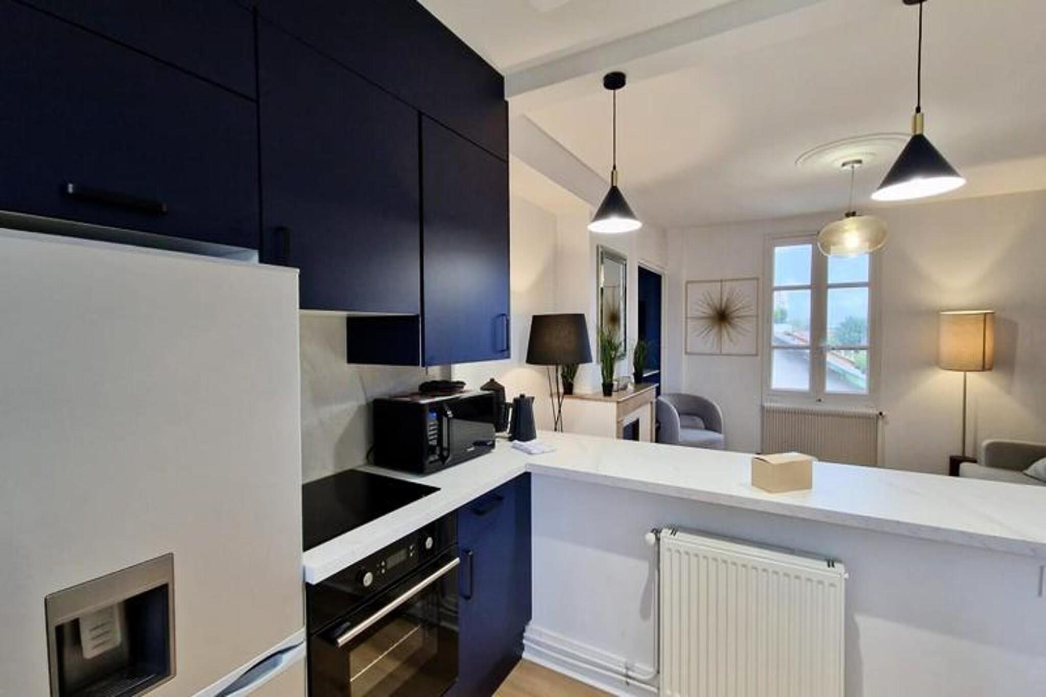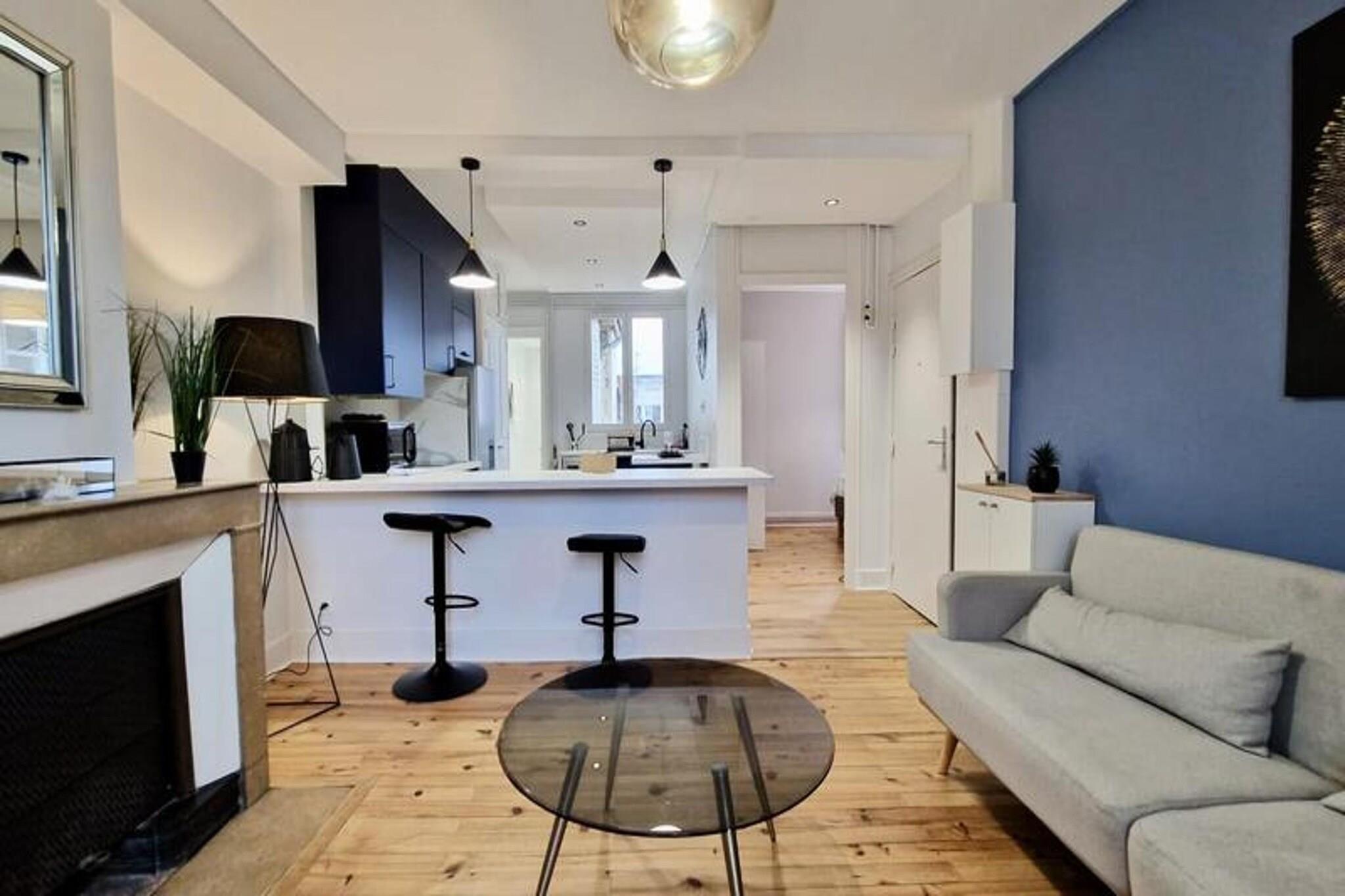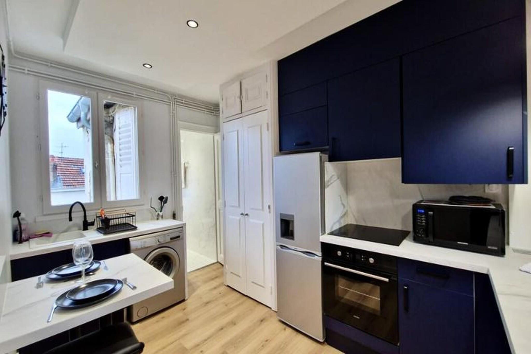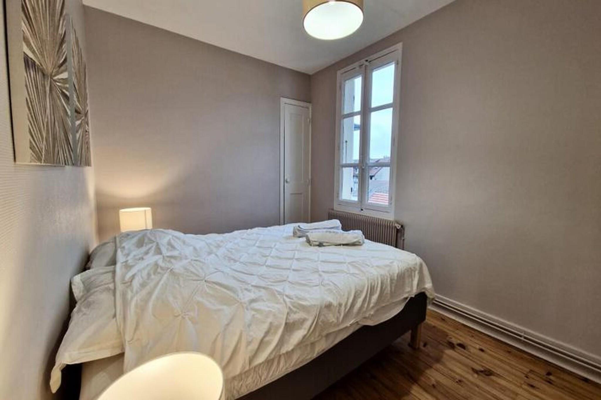This beautiful and spacious T2 apartment is located on the 3rd floor of a building in Grenoble’s city center. It offers a comfortable double bed in the quiet, independent bedroom overlooking a courtyard, making it ideal for a peaceful stay. The apartment can accommodate up to two people and is pet-friendly. It includes essential amenities like Wi-Fi, a TV, and bed linens, as well as towels for two guests on arrival. Conveniently situated near the SNCF station, the apartment is easily accessible by tram (lines A and B) and bus (C1, X01, X02, X03). It’s just a short walk from local attractions, cafes, and markets. For those driving, free street parking is available directly outside the property, providing extra convenience. The apartment is fully equipped for your stay, with an open kitchen featuring a microwave, oven, fridge, coffee maker, kettle, and hotplates. The kitchen also includes a washing machine for added comfort. The bathroom is modern, with an Italian-style shower and WC, offering a relaxing space to unwind.