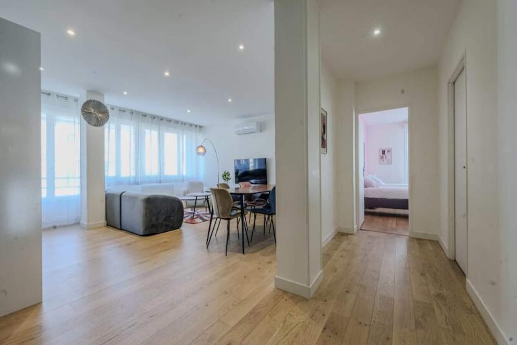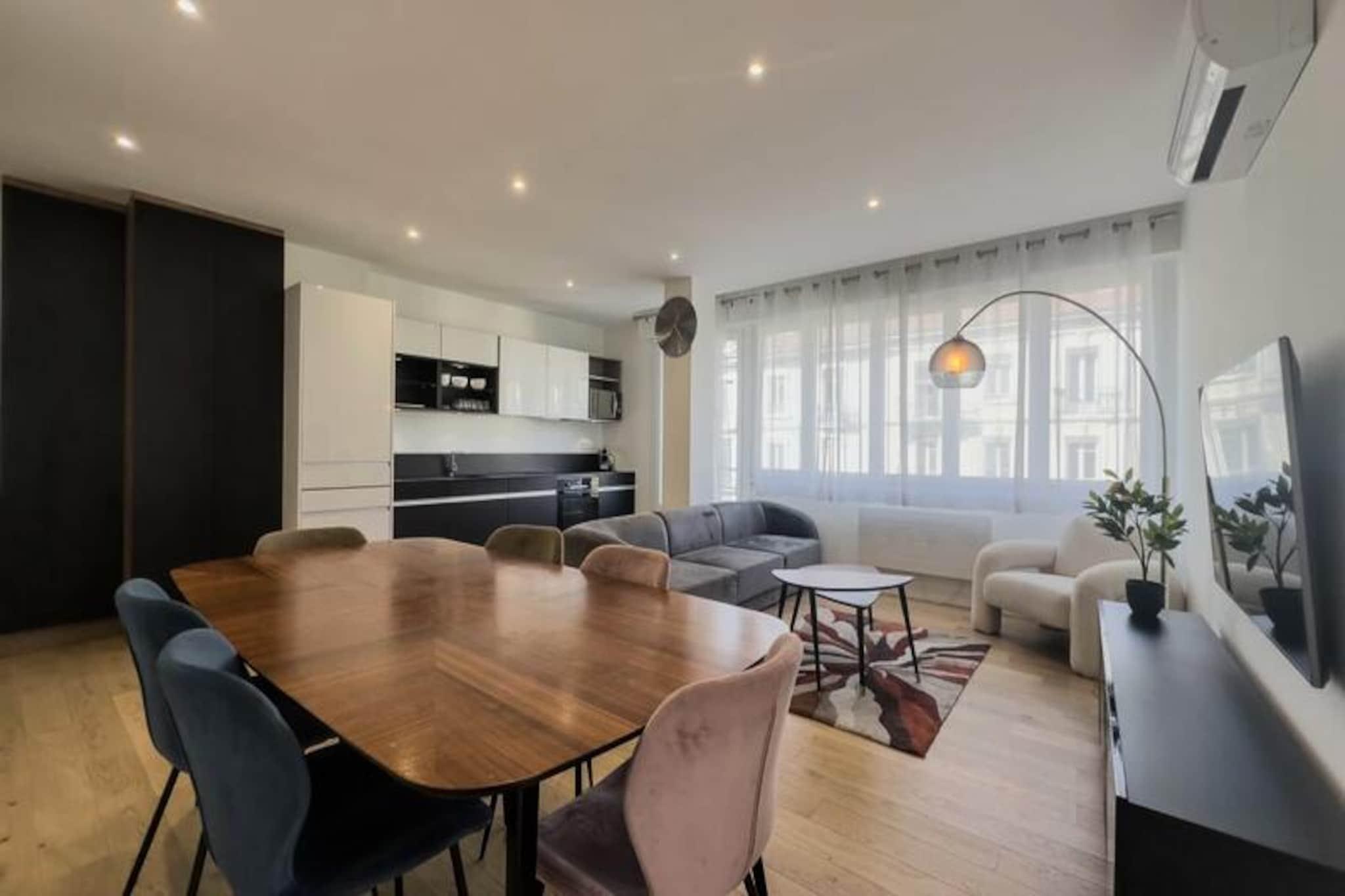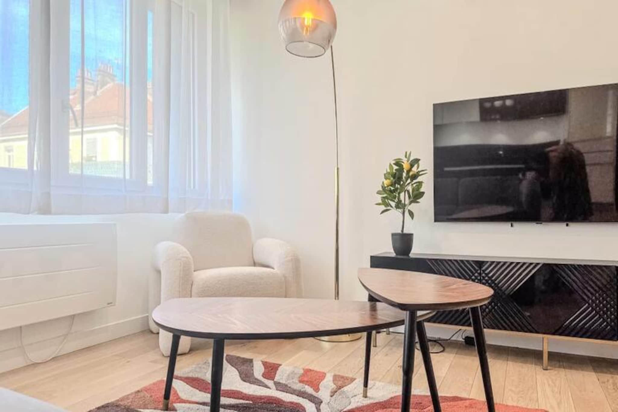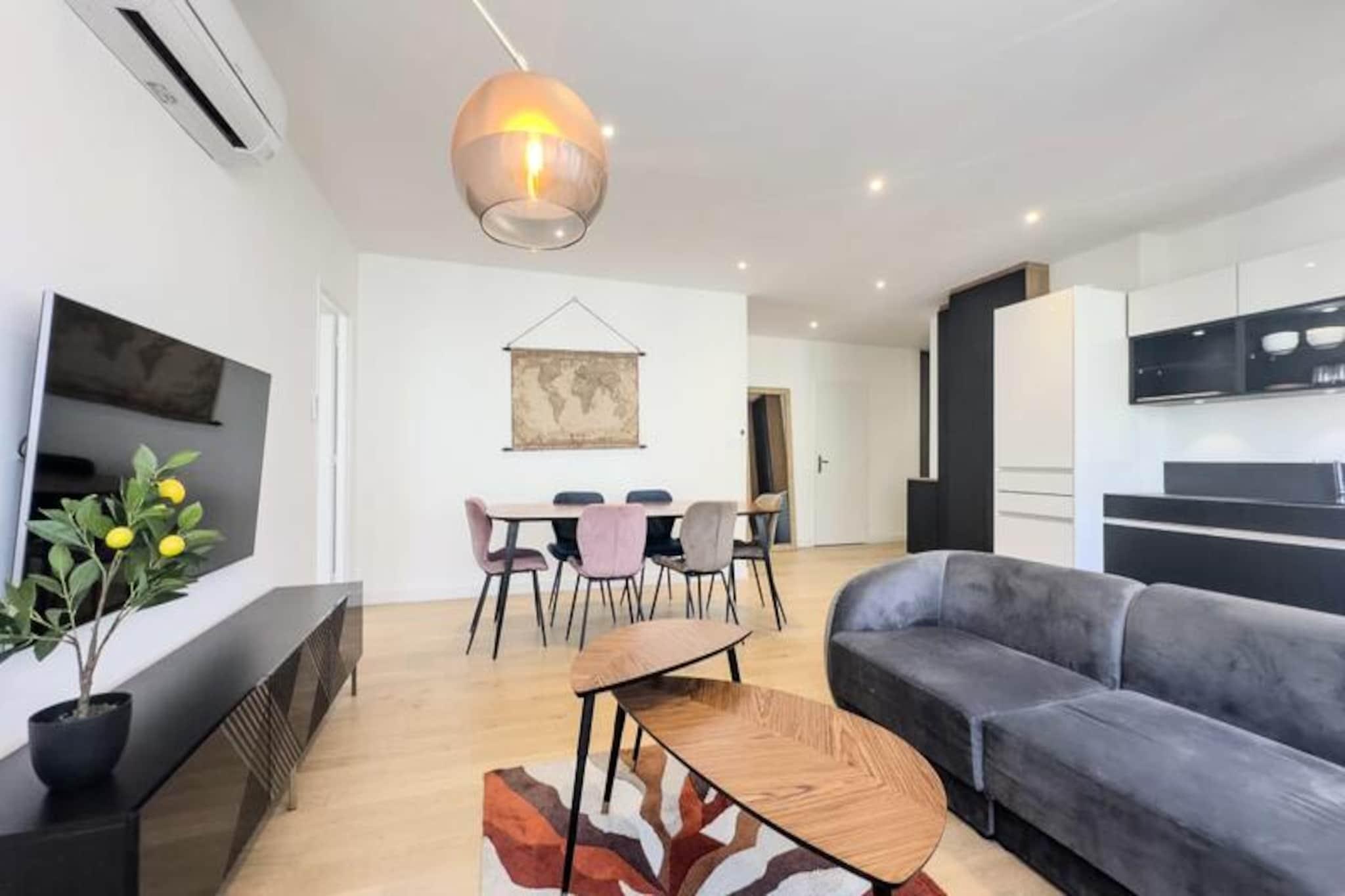 In the heart of Grenoble, where the charm of the French Alps meets urban sophistication, this beautifully renovated 2-bedroom apartment offers a perfect blend of comfort and convenience. Situated on Avenue Alsace Lorraine, between the train station and the vibrant city center, this fourth-floor retreat with elevator access provides a serene escape amidst the bustling city life. Step onto the private balcony and soak in the lively atmosphere while enjoying a cup of coffee or a quiet evening under the stars. The apartment is thoughtfully designed to cater to all your needs. The spacious living room invites you to unwind with its cozy sofa, armchair, and a dining area for six. Stay connected with high-speed Wi-Fi or relax with your favorite shows on the flat-screen TV. The open-plan kitchen is fully equipped with modern appliances, including a refrigerator, oven, microwave, induction hob, and Nespresso coffee machine, ensuring you can prepare meals with ease. The two bedrooms are havens of comfort, featuring a king-size bed in one and two single beds in the other, complete with plush duvets, pillows, and ample storage. The sleek bathroom boasts a bathtub and sink, while a separate toilet adds extra convenience. Perfectly located, the apartment is a stone's throw from Grenoble's tram lines, offering seamless access to key destinations such as Victor Hugo Square, the universities, and La Tronche Hospital. Whether you're exploring the historic streets, indulging in local cuisine, or venturing into the nearby Alps, everything is within easy reach. Paid street parking is available for those traveling by car, and the independent check-in process ensures a hassle-free arrival. Whether you're visiting for business or leisure, this apartment promises a memorable stay in the heart of Grenoble. With its modern amenities, prime location, and welcoming ambiance, it’s the ideal base for discovering the city and beyond.