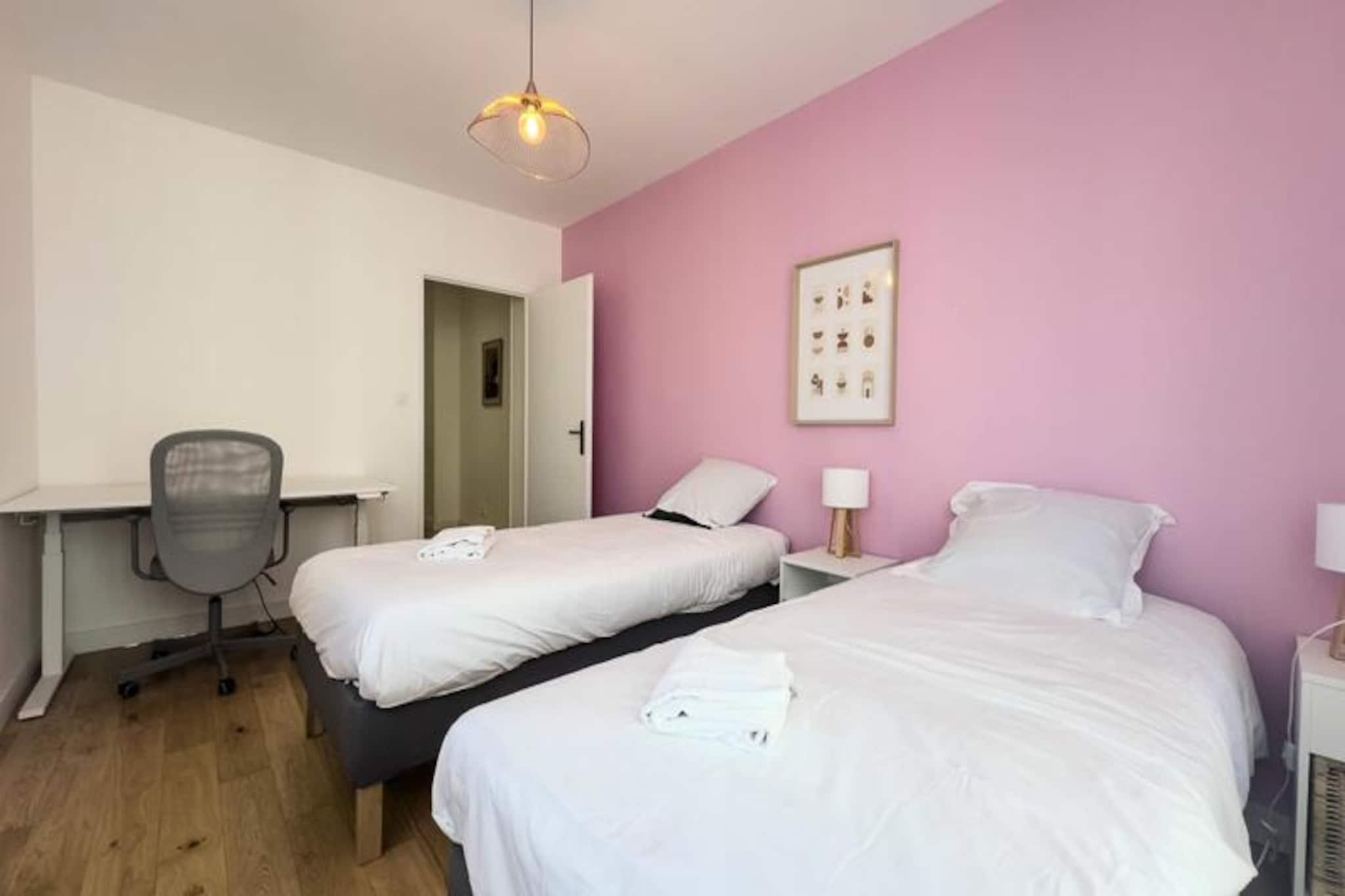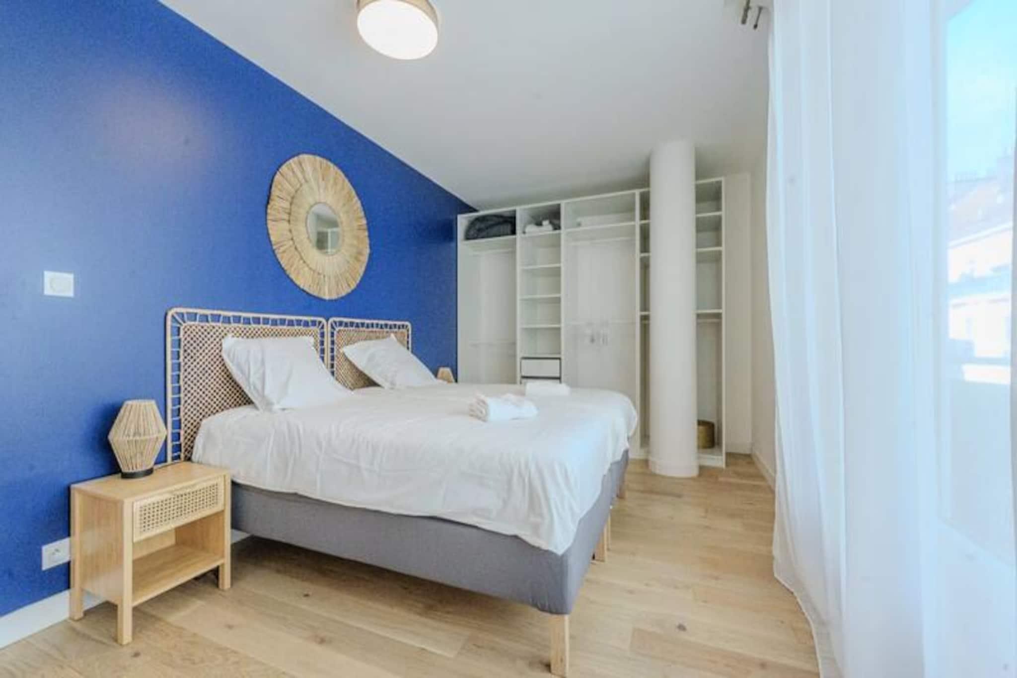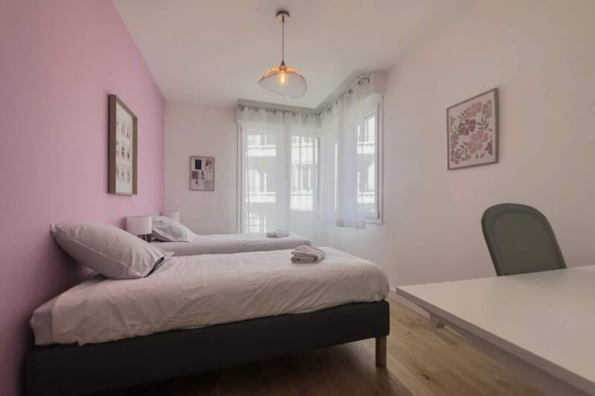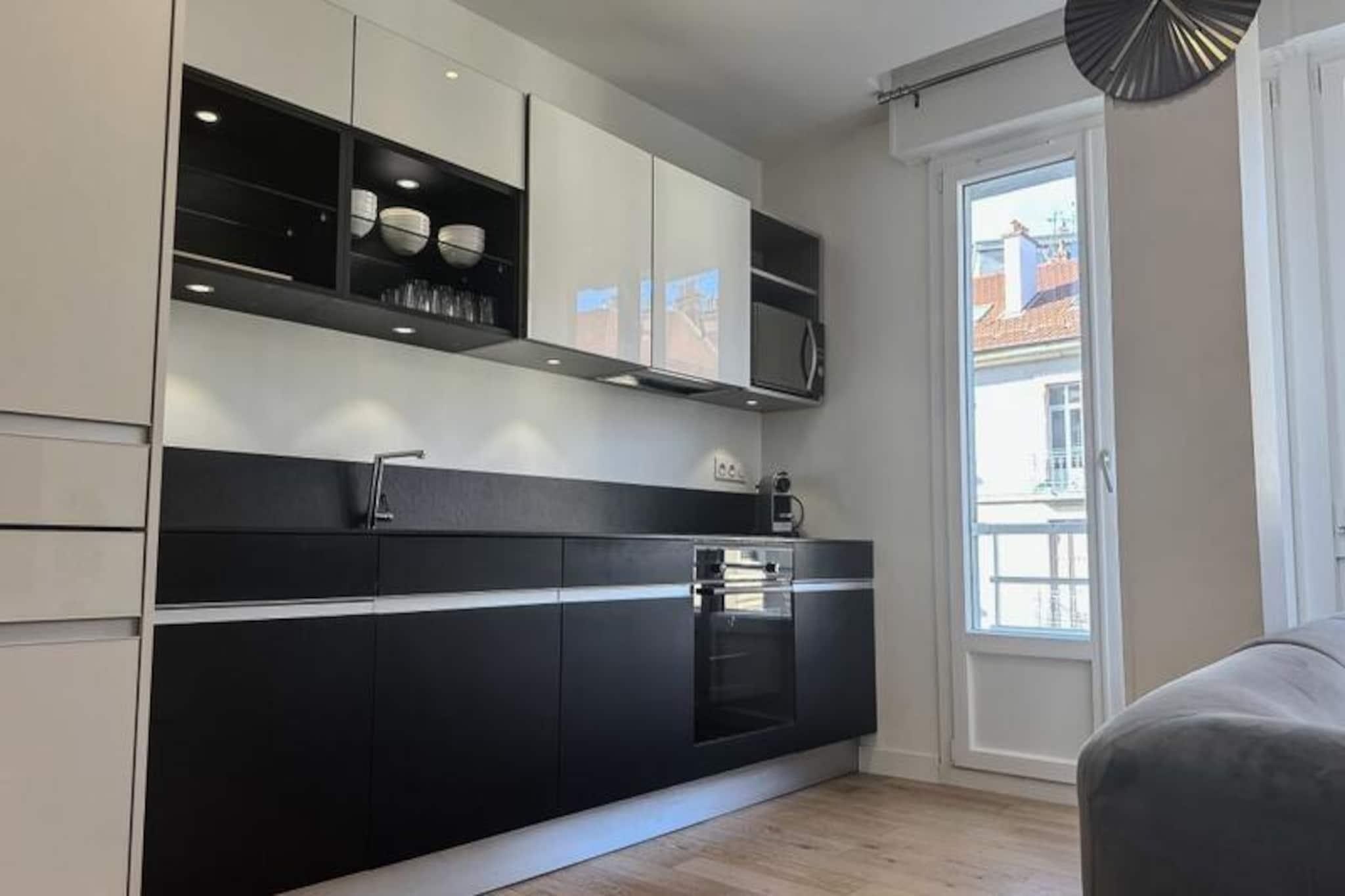 In the heart of Grenoble, where the charm of the French Alps meets urban sophistication, this beautifully renovated 2-bedroom apartment offers a perfect blend of comfort and convenience. Situated on Avenue Alsace Lorraine, between the train station and the vibrant city center, this fourth-floor retreat with elevator access provides a serene escape amidst the bustling city life. Step onto the private balcony and soak in the lively atmosphere while enjoying a cup of coffee or a quiet evening under the stars. The apartment is thoughtfully designed to cater to all your needs. The spacious living room invites you to unwind with its cozy sofa, armchair, and a dining area for six. Stay connected with high-speed Wi-Fi or relax with your favorite shows on the flat-screen TV. The open-plan kitchen is fully equipped with modern appliances, including a refrigerator, oven, microwave, induction hob, and Nespresso coffee machine, ensuring you can prepare meals with ease. The two bedrooms are havens of comfort, featuring a king-size bed in one and two single beds in the other, complete with plush duvets, pillows, and ample storage. The sleek bathroom boasts a bathtub and sink, while a separate toilet adds extra convenience. Perfectly located, the apartment is a stone's throw from Grenoble's tram lines, offering seamless access to key destinations such as Victor Hugo Square, the universities, and La Tronche Hospital. Whether you're exploring the historic streets, indulging in local cuisine, or venturing into the nearby Alps, everything is within easy reach. Paid street parking is available for those traveling by car, and the independent check-in process ensures a hassle-free arrival. Whether you're visiting for business or leisure, this apartment promises a memorable stay in the heart of Grenoble. With its modern amenities, prime location, and welcoming ambiance, it’s the ideal base for discovering the city and beyond.