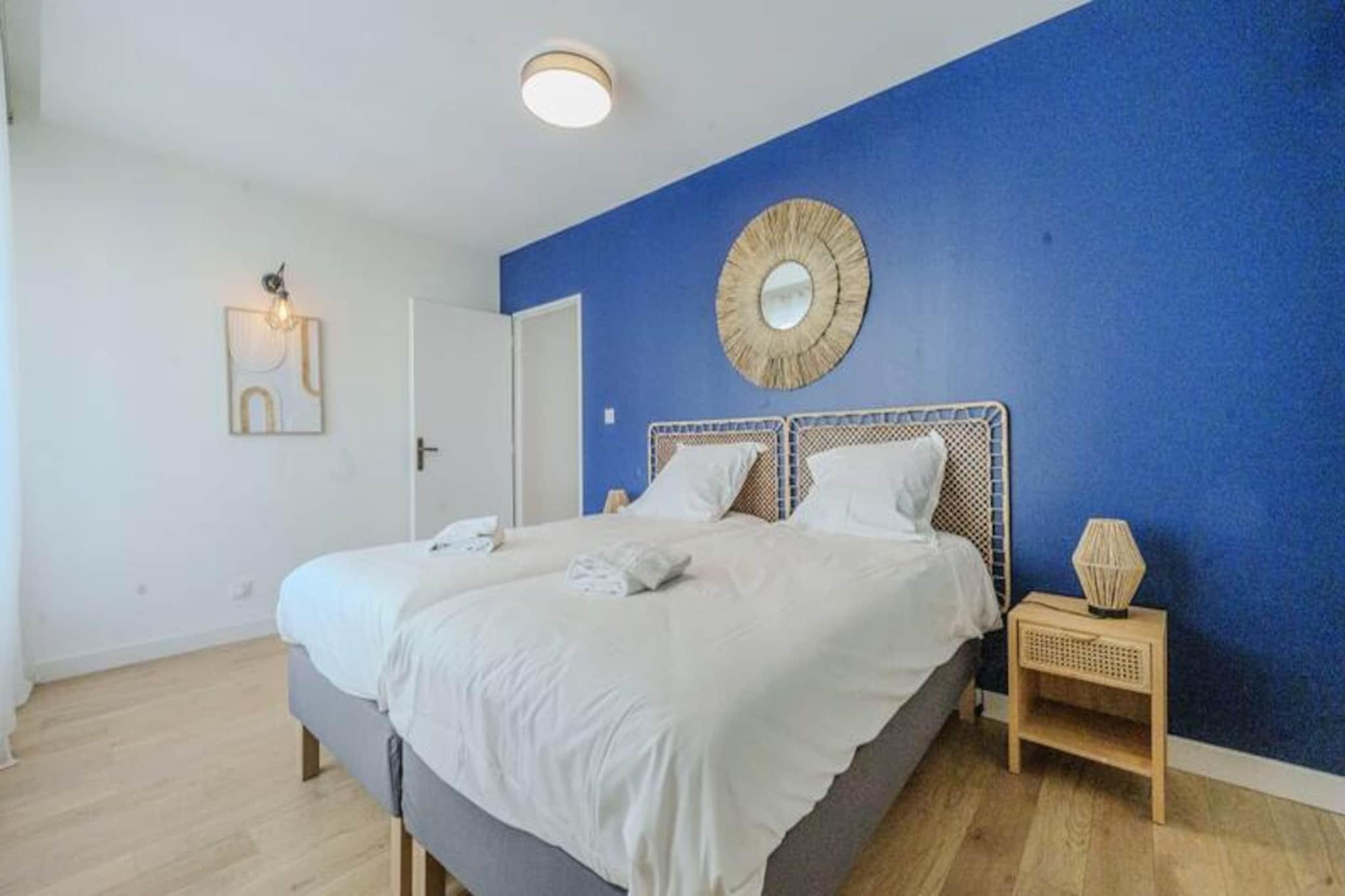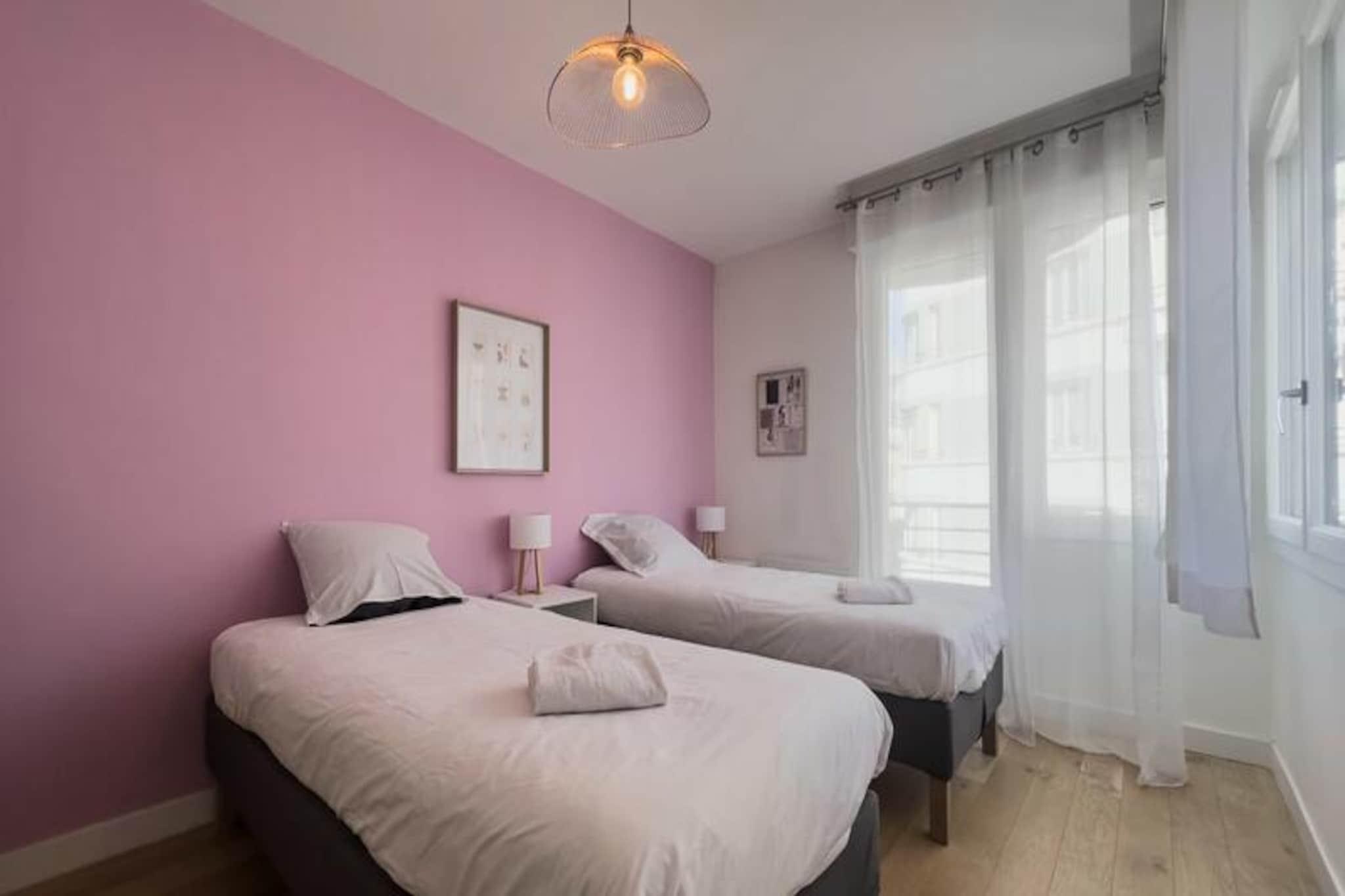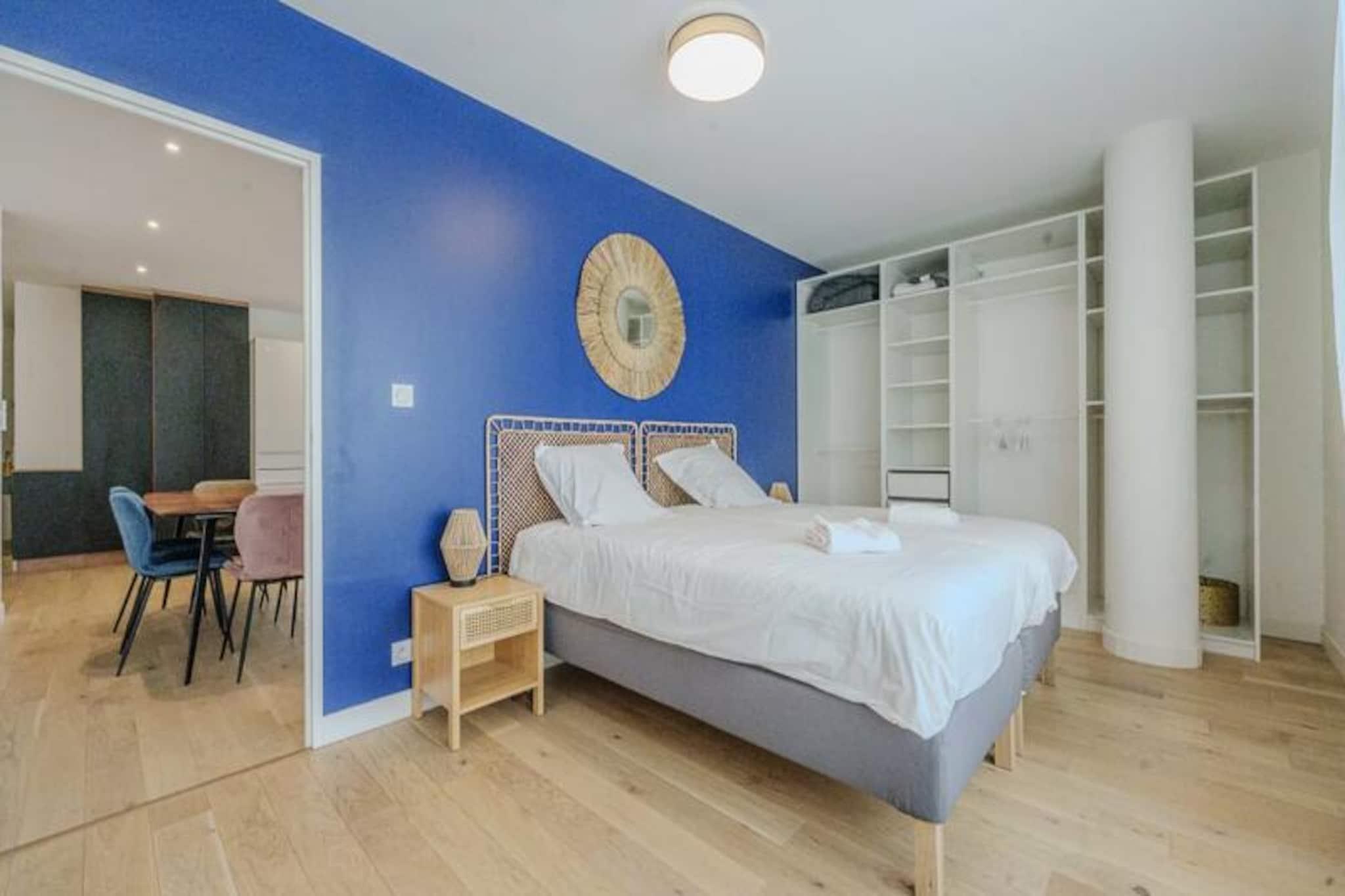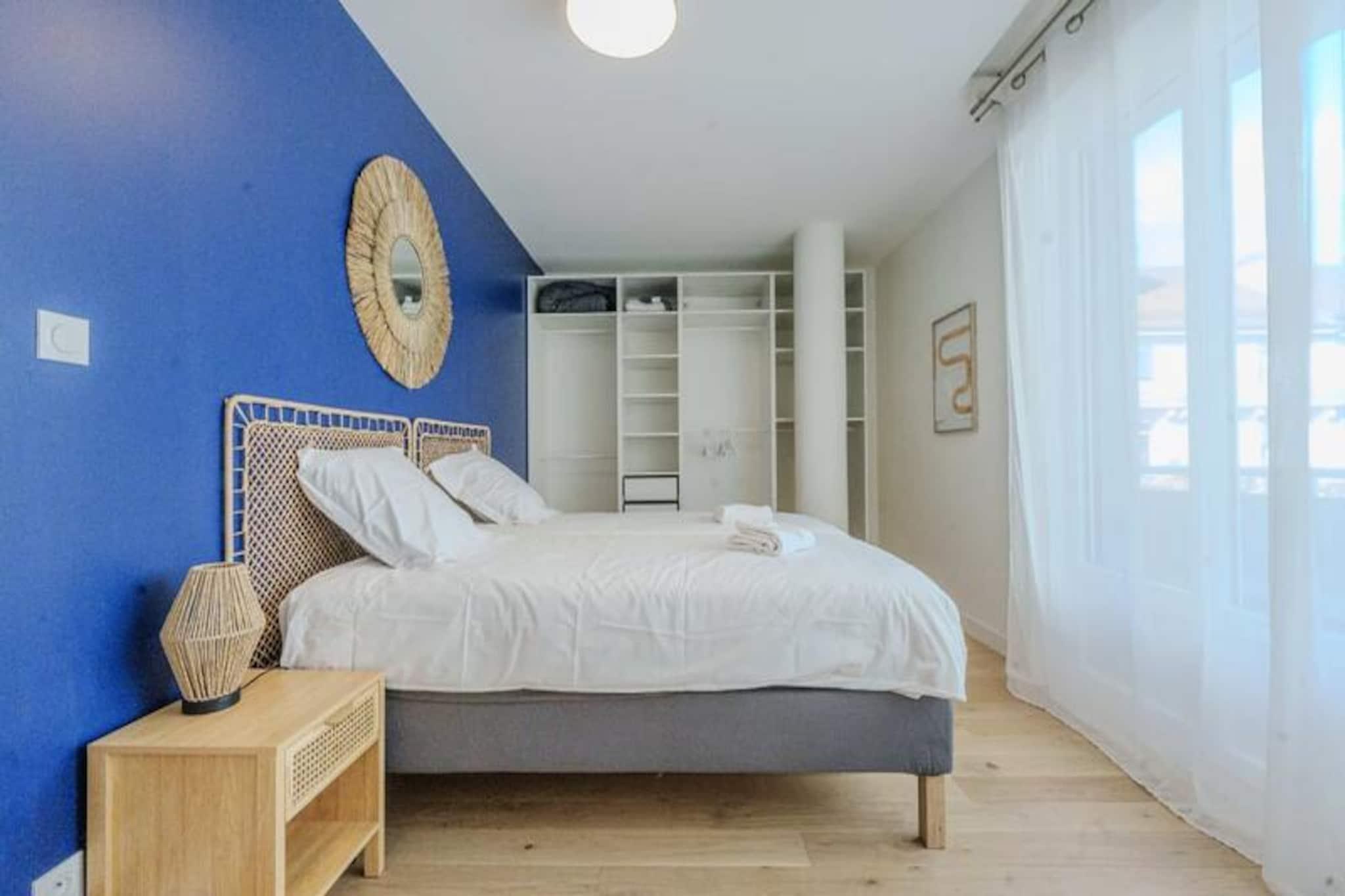 In the heart of Grenoble, where the charm of the French Alps meets urban sophistication, this beautifully renovated 2-bedroom apartment offers a perfect blend of comfort and convenience. Situated on Avenue Alsace Lorraine, between the train station and the vibrant city center, this fourth-floor retreat with elevator access provides a serene escape amidst the bustling city life. Step onto the private balcony and soak in the lively atmosphere while enjoying a cup of coffee or a quiet evening under the stars. The apartment is thoughtfully designed to cater to all your needs. The spacious living room invites you to unwind with its cozy sofa, armchair, and a dining area for six. Stay connected with high-speed Wi-Fi or relax with your favorite shows on the flat-screen TV. The open-plan kitchen is fully equipped with modern appliances, including a refrigerator, oven, microwave, induction hob, and Nespresso coffee machine, ensuring you can prepare meals with ease. The two bedrooms are havens of comfort, featuring a king-size bed in one and two single beds in the other, complete with plush duvets, pillows, and ample storage. The sleek bathroom boasts a bathtub and sink, while a separate toilet adds extra convenience. Perfectly located, the apartment is a stone's throw from Grenoble's tram lines, offering seamless access to key destinations such as Victor Hugo Square, the universities, and La Tronche Hospital. Whether you're exploring the historic streets, indulging in local cuisine, or venturing into the nearby Alps, everything is within easy reach. Paid street parking is available for those traveling by car, and the independent check-in process ensures a hassle-free arrival. Whether you're visiting for business or leisure, this apartment promises a memorable stay in the heart of Grenoble. With its modern amenities, prime location, and welcoming ambiance, it’s the ideal base for discovering the city and beyond.