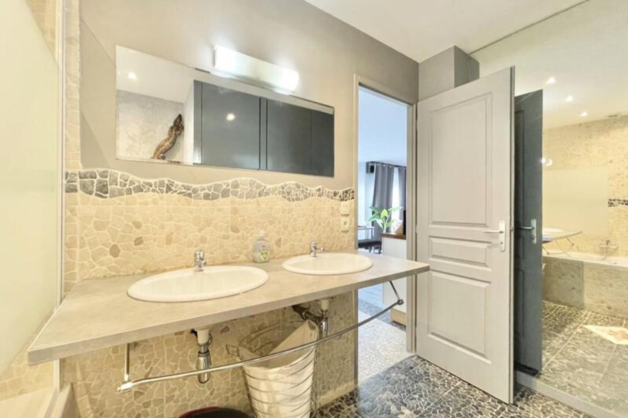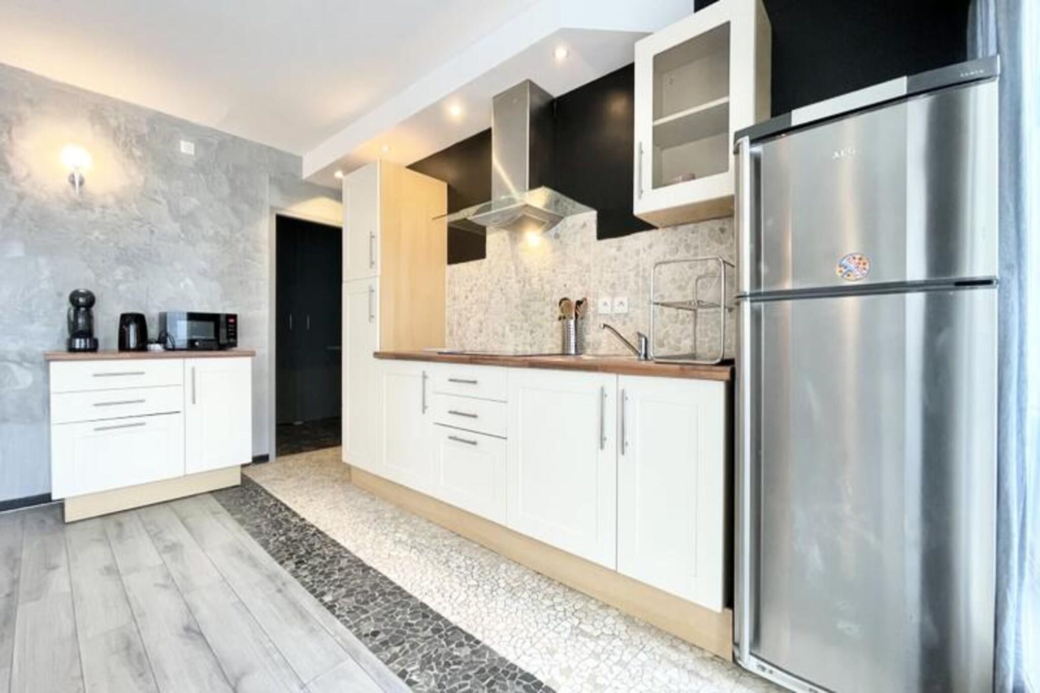 This spacious 61m² apartment offers a comfortable and well-decorated living space, perfect for short, medium, or long stays. It features three sleeping areas: a large double bed in the bedroom, plus two convertible sofas in the double living room. The apartment is air-conditioned and equipped with a television, fiber-optic Wi-Fi, storage cupboards, and all necessary bed linens and towels for your stay. Pets are welcome for an additional fee, ensuring everyone can enjoy the accommodation. Located just 10 minutes from the vibrant center of Grenoble, this apartment is ideally situated for exploring the area. Within walking distance, you'll find a variety of shops, including supermarkets, bakeries, and pharmacies. There are also plenty of cafes, brasseries, and restaurants offering diverse cuisines. Public transport is easily accessible with a tram stop right at the foot of the building, allowing easy access to the train station, city center, or university campus. Free parking is available around the building for added convenience. The fully equipped kitchen features everything you need, including a refrigerator, microwave, and more, perfect for preparing meals. The bathroom includes a bathtub with a double sink, offering ample space for relaxation. The apartment’s double living room opens to a large balcony, providing additional space and comfort for your stay.