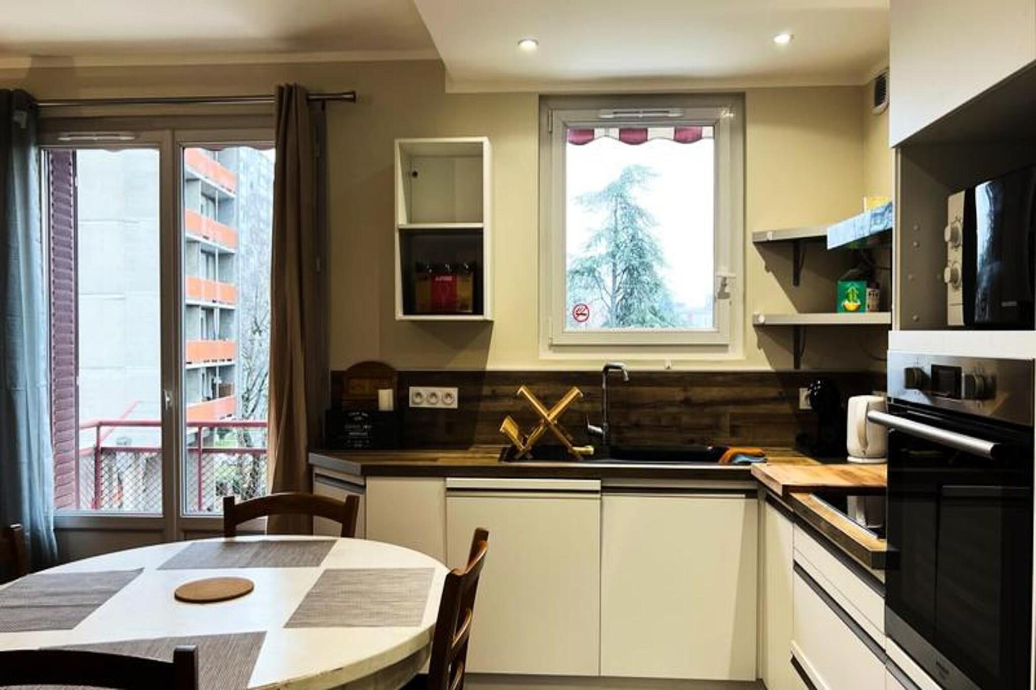 This bright and spacious 3-bedroom apartment offers a comfortable stay with a mix of modern and warm decor. It includes a bedroom with a 160 cm bed, another with two 90 cm beds, and a third with a 140 cm bed, all equipped with storage and desks. The apartment is pet-friendly, allowing your furry companions to join you for a stay. With Wi-Fi, TV, and a parking space located behind the building, this apartment is perfect for both short and long stays. It also features individual gas heating, along with additional electric heating in the living room for your comfort. Located in the Capuche Alliés district, the apartment is just 10 minutes by car or 15-20 minutes on foot from the city center. Nearby, you’ll find bars, restaurants, parks (200 meters), supermarkets like Lidl (200 meters), pharmacies, bakeries, and gas stations. Public transportation is easily accessible with bus stops at the bottom of the building, and tram stops A, C, and E are within a 10-minute walk. The surrounding area provides plenty of options for dining, shopping, and leisure activities. The apartment boasts a fully equipped kitchen with an induction hob, microwave, oven, coffee machine, kettle, refrigerator, toaster, and dishwasher. A modern bathroom with a shower and washing machine, along with a separate toilet, offers all the necessary conveniences. Two balconies add to the appeal, providing a spot to enjoy the view of the mountains and the surrounding neighborhood.