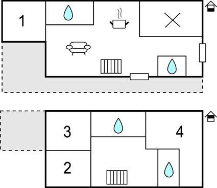 Badezimmer 4m2 (nr. 1) - WC. Warmes und kaltes Wasser. Dusche