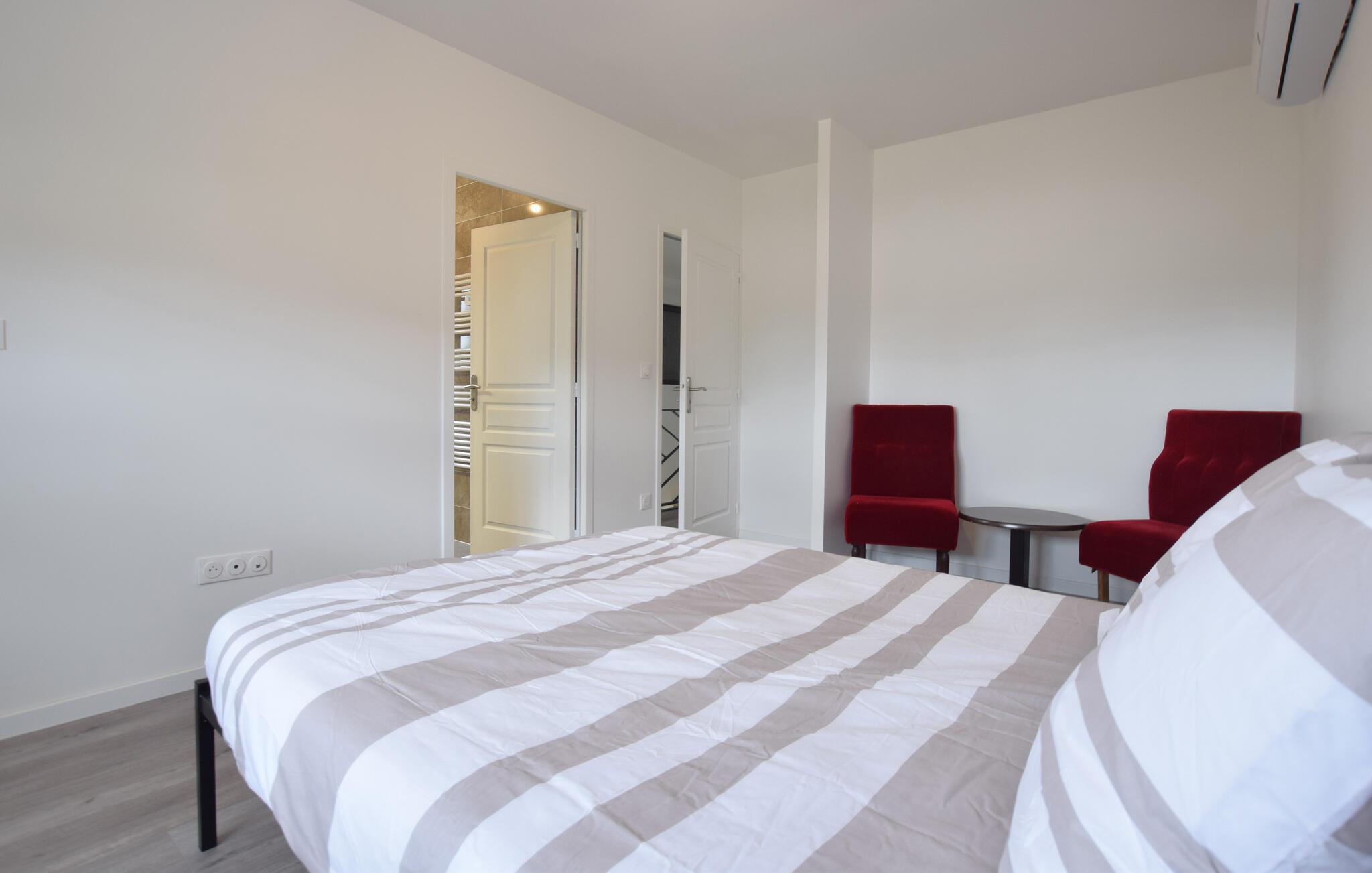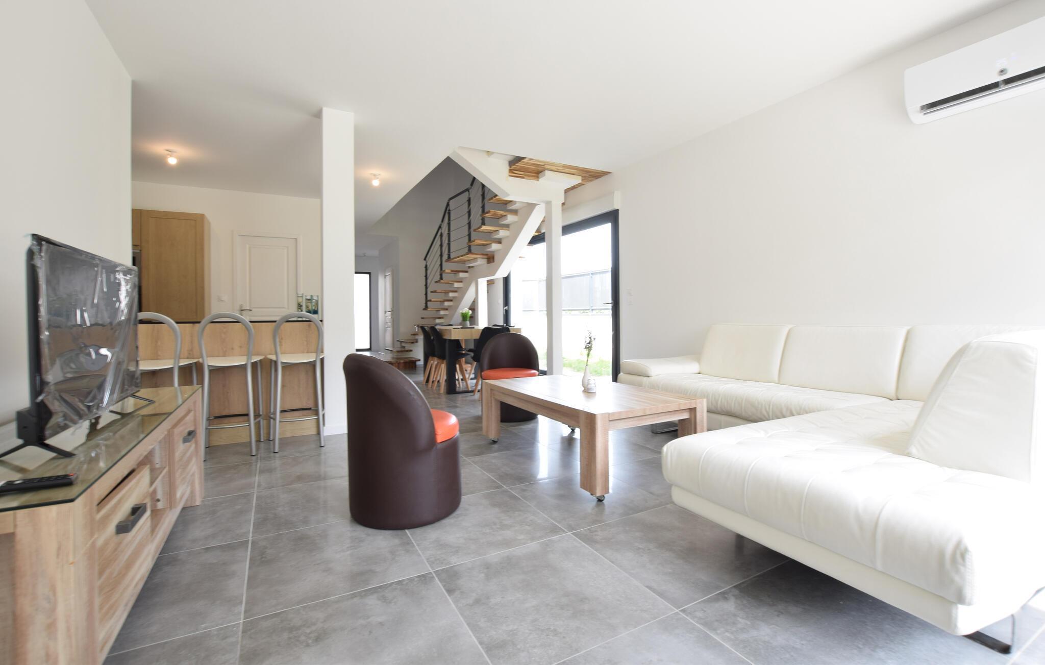 Dieses moderne Gebäude begeistert mit großzügigen, lichtdurchfluteten Räumen und eine schöne Terrasse. Im Inneren des Hauses erwarten Sie zahlreiche komfortable Schlafzimmer, zwei davon mit eigenem Bad und eines mit privater Terrasse. Die stilvolle Einrichtung und die modernen Annehmlichkeiten sorgen für ein gehobenes Wohlfühlambiente. Der sichere Parkplatz rundet das Angebot ab und garantiert Ihnen einen sorgenfreien Aufenthalt.