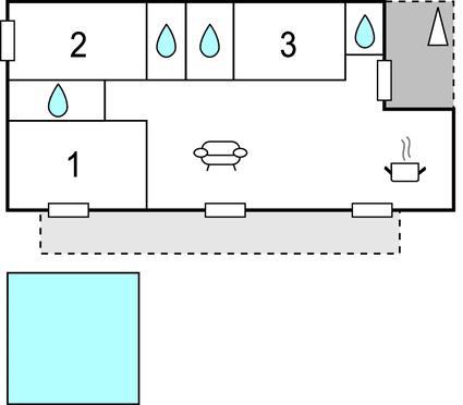 Badezimmer 5m2 (nr. 3) - WC. Warmes und kaltes Wasser. Dusche