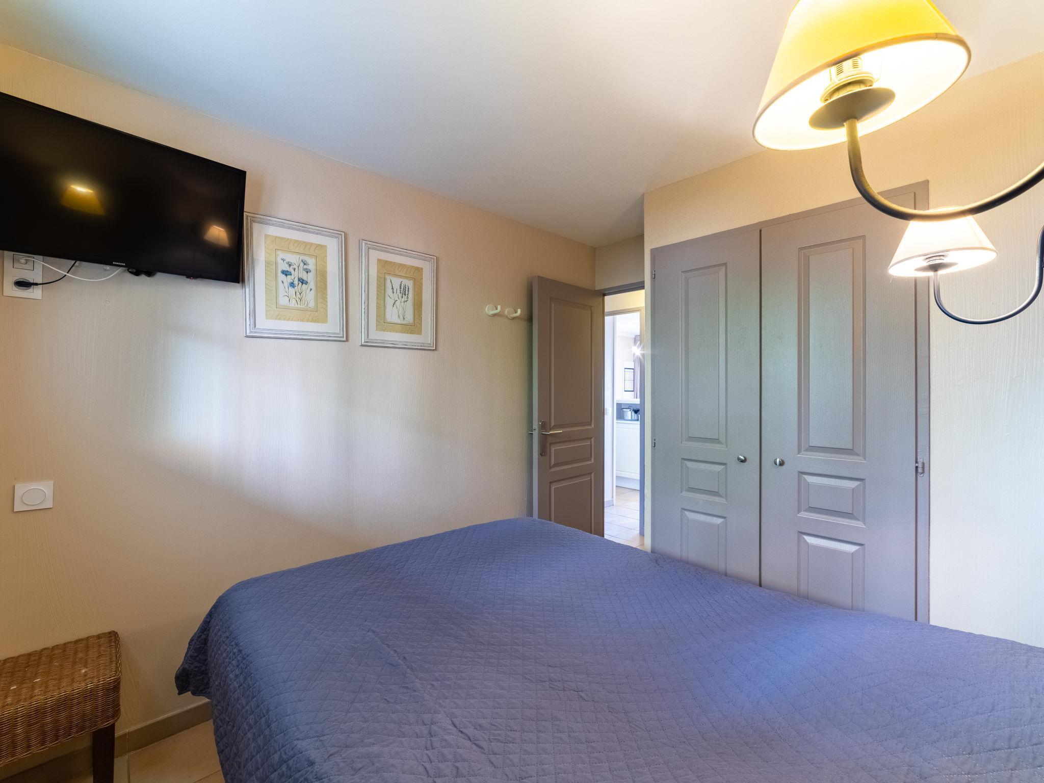 "Les Restanques 3", 3-room apartment 43 m2, on the ground floor. Beautiful furnishings: living/dining room with TV (flat screen). Exit to the terrace, to the patio. 1 room with 2 beds (80 cm, length 190 cm). 1 room with 1 french bed (140 cm, length 190 cm). Kitchenette (dishwasher, 4 induction hot plates, microwave, electric coffee machine). Bathroom, shower/WC. Electric heating. Terrace 15 m2, patio 15 m2. Beautiful view of the sea and the countryside. Facilities: Internet (WiFi, extra). Parking space n 4279. Please note: smoke alarm. 83068000010IV