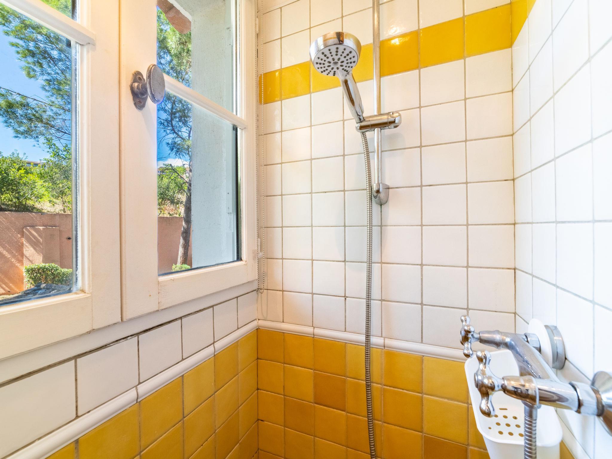 Child friendly holiday village "Les Restanques Golfe Saint Tropez", surrounded by trees. Outside the resort, 7.5 km from the centre of Grimaud, 3 km from the sea, 3 km from the beach. For shared use: park 24 ha (fenced), 3 swimming pools (seasonal availability: 01.May. - 01.Oct. pool opening hours: 10:00-19:00). Children's pool, slide, tennis, table tennis, children's playground. In the complex: restaurant, bar, playroom, boutique, laundry. Parking on the premises. Shop 2 km, supermarket 3 km, restaurant 3 km, bus stop "Saint Pons" 1.8 km, sandy beach "Port Grimaud" 3 km. Sports harbour 3 km, golf course (18 hole) 3 km, sailing school 5 km. Nearby attractions: Port Grimaud 3 km, Parc d'attractions Azur Park 4 km, Sainte Maxime 8 km, Saint Tropez 10 km, Plages de Pampelonne 16 km, Cannes 84 km. Well-known lakes can easily be reached: Le lac de Saint Croix 92 km. Hiking paths: Masif de l'Esterel 50 km. Please note: entertainment in the season. Childminding (extra).