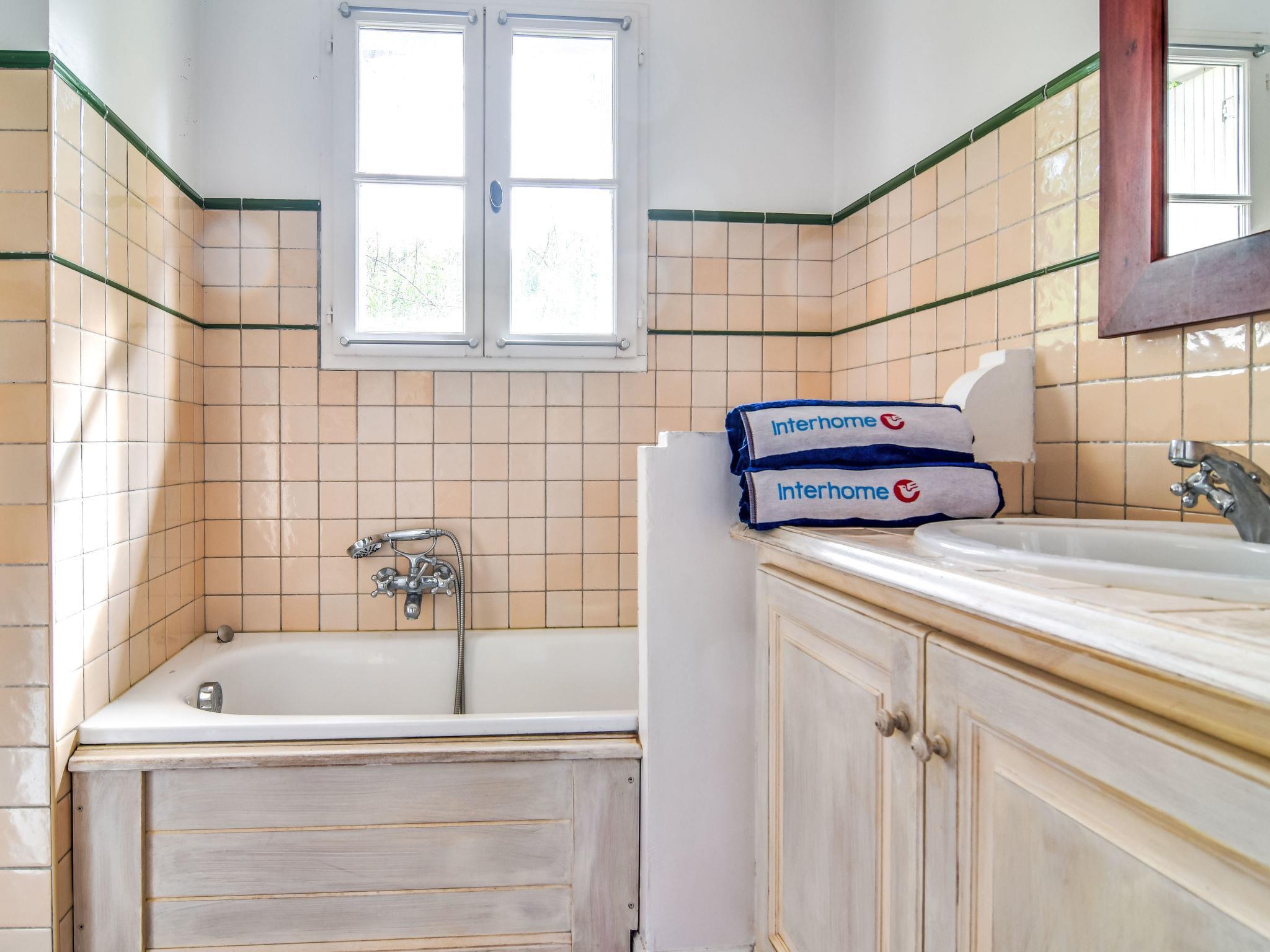 "Les Restanques 6", 3-room terraced house 75 m2 on 2 levels. Comfortable furnishings: living/dining room with 1 sofabed (160 cm, length 190 cm), TV (flat screen). Exit to the terrace. Kitchen (oven, dishwasher, 4 ceramic glass hob hotplates, microwave, freezer, electric coffee machine). Sep. WC. Upper floor: 1 room with 1 french bed (160 cm, length 200 cm). 1 room with 2 beds (90 cm, length 200 cm). Exit to the terrace. Bathroom, sep. WC. Electric heating, air-conditioning. 2 terraces 15 m2, patio 35 m2. Terrace furniture. Parking. Please note: smoke alarm. 8306800049037