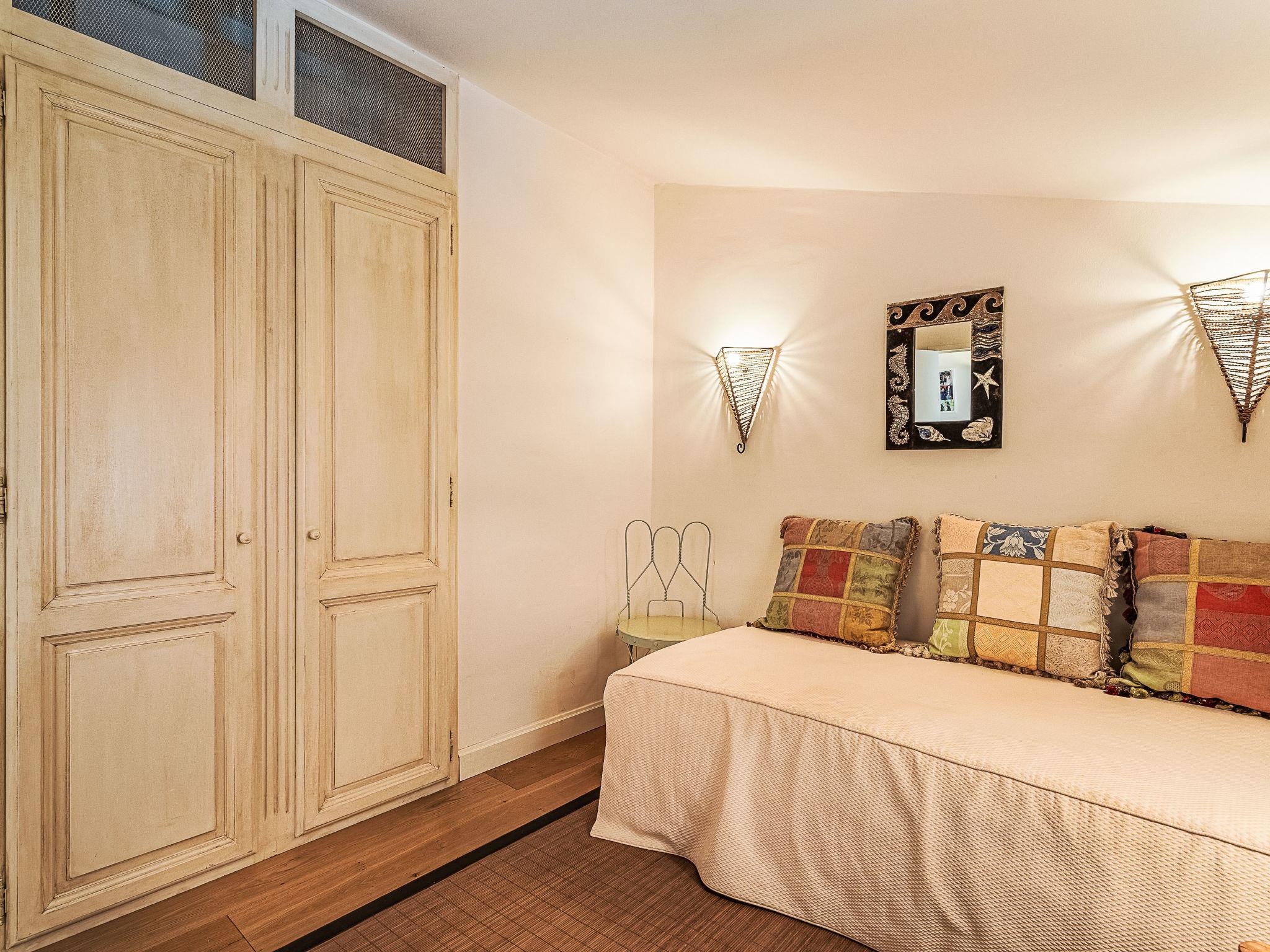 "Village de Silhouette 6", 3-room maisonette 60 m2 on 1st floor. Beautiful furnishings: living/dining room with TV (flat screen). Exit to the terrace. Open kitchen (3 hot plates, oven, dishwasher, toaster, kettle, microwave, freezer, electric coffee machine). Bathroom, sep. WC. Electric heating. Upper floor: 1 room with 1 french bed (2 x 80 cm, length 190 cm), air conditioning. 1 small room with 1 bed (90 cm, length 190 cm), air conditioning. Balcony 13 m2, patio 18 m2. Terrace furniture. View of the sea and the valley. Facilities: washing machine, baby cot for up to 2 year olds. Internet (WiFi, free). Parking. Please note: smoke alarm. Offer by a private individual according to Art. 155, IV of CGI. 83068002001AJ