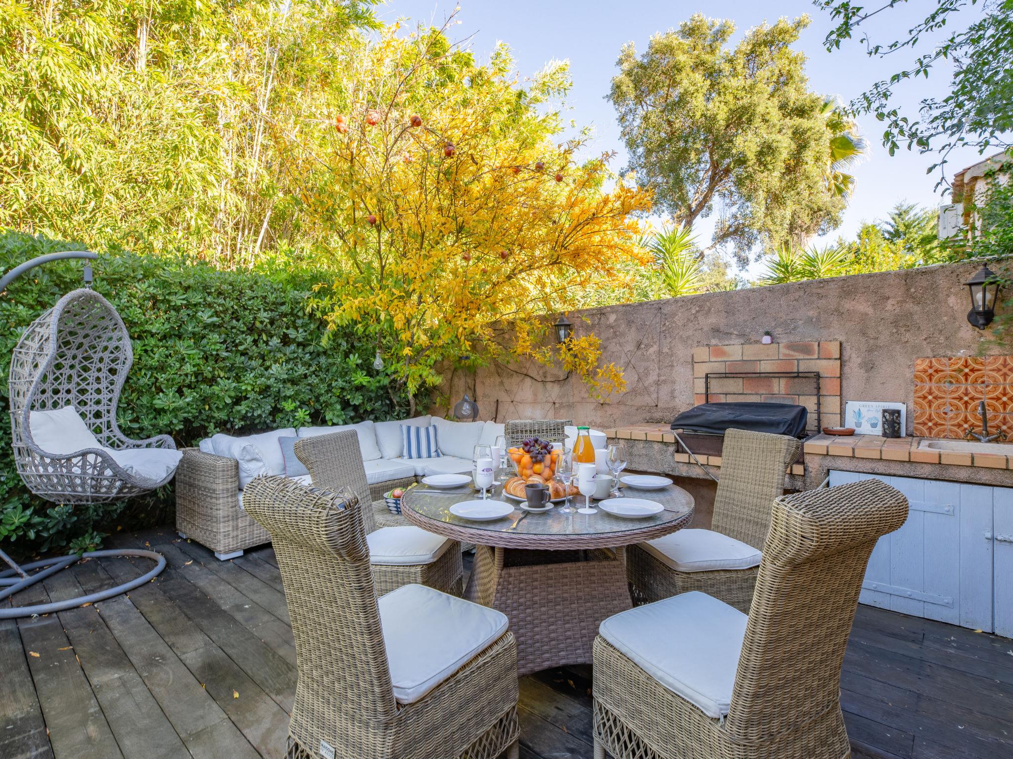 Beautiful terraced house "Villa Elica". 6 km from the centre of Grimaud, 1.5 km from the centre of Port Grimaud, 10 km from the centre of Saint Tropez, in the residential district, 1 km from the sea. Private: well-kept garden 300 m2 (fenced) with wildlife garden, swimming pool round (4 x 4 m, depth 120 cm, seasonal availability: 01.Apr. - 31.Oct.) with alarm system. Table tennis, barbecue. Stepped path (8 steps) to the house. Public parking on the road. Shop 200 m, bus stop 1.2 km, sandy beach 1 km. Golf course (18 hole) 3.5 km. Nearby attractions: Sainte Maxime 7 km, Nice aeroport 90 km. The owner does not accept any youth groups.