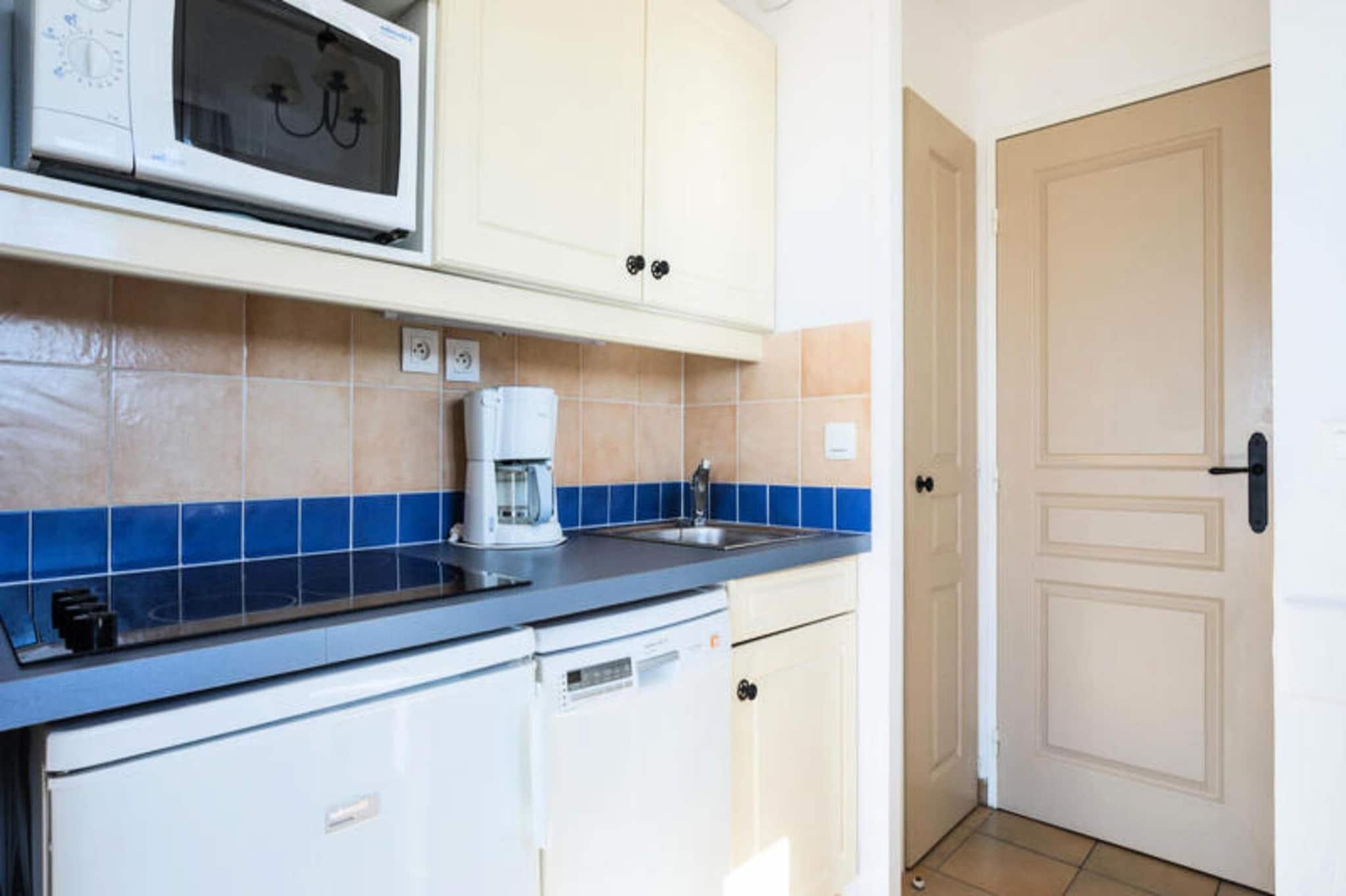 Set in a stunning 25-hectare landscaped park with panoramic views of the Mediterranean, this apartment offers a peaceful retreat. The accommodation includes a living room, a kitchen, one bedroom with a double bed, a bathroom, and a separate toilet, ideal for up to four people. Pets are allowed for an additional charge. Parking is free, subject to availability, and end-of-stay cleaning is included. Additional services such as bed linen, towels, and Wi-Fi are available for a fee. Nearby, the residence offers a wealth of attractions, including the magnificent Gulf of Saint-Tropez. The complex features two large swimming pools, including a wave pool with slides (open May to September), and a heated pool. Family-friendly activities are available, with children’s and teenagers’ clubs and entertainment options for all ages. Enjoy exploring the local area, with cafes, shops, and the vibrant resort life just a short distance away. The apartment is fully equipped with a kitchen, including a dishwasher, and a bathroom with modern amenities. A maintenance kit is included for added convenience. Additional services like baby kits, daily linen changes, and optional housekeeping can be arranged. The property provides a comfortable and well-maintained space for a memorable holiday.
