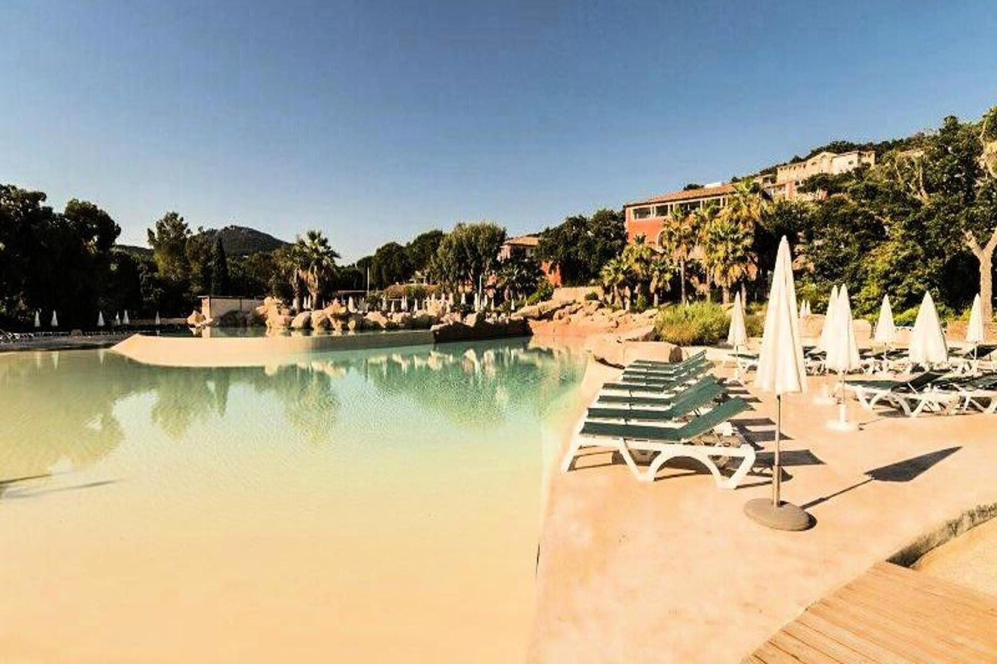 Nestled in a stunning 25-hectare wooded estate, this 3-room holiday home offers a tranquil retreat for up to 6 guests. The property features a spacious living room, two cozy bedrooms, a well-appointed bathroom, and a private terrace. Some units boast breathtaking sea views. Guests can enjoy free covered parking within the residence and bring along their pets, making it a perfect getaway for the whole family. Located just 3 km from the beach, the property is ideally situated for enjoying the Mediterranean coast. Guests can explore nearby attractions, including charming local markets, restaurants, and scenic walking paths. The residence also features a 1600 m² aquatic area with two swimming pools, including a wave pool with slides open from May to mid-September and a heated pool available from April to September. The fully equipped kitchen includes modern appliances for convenient meal preparation, while the bright terrace offers a serene outdoor dining space. Additional amenities include Wi-Fi (available with a supplement), access to baby kits, and optional extras like bed linens and towels. Whether you're here to relax by the pool or explore the surrounding beauty, this property ensures a comfortable and memorable stay.