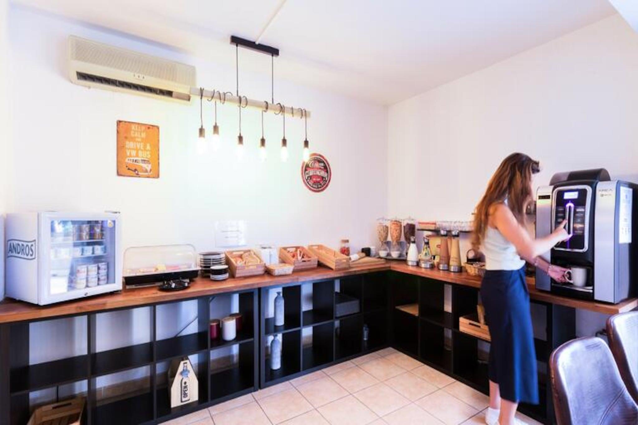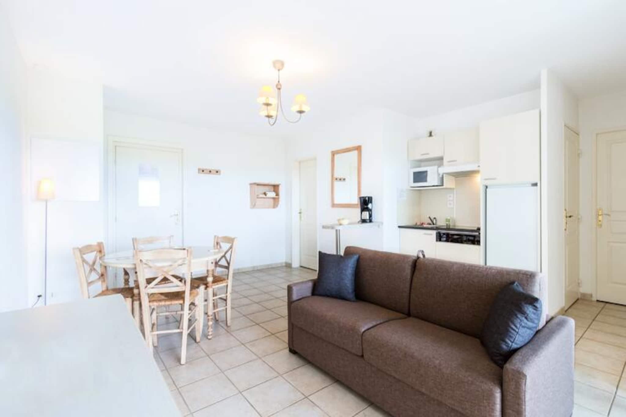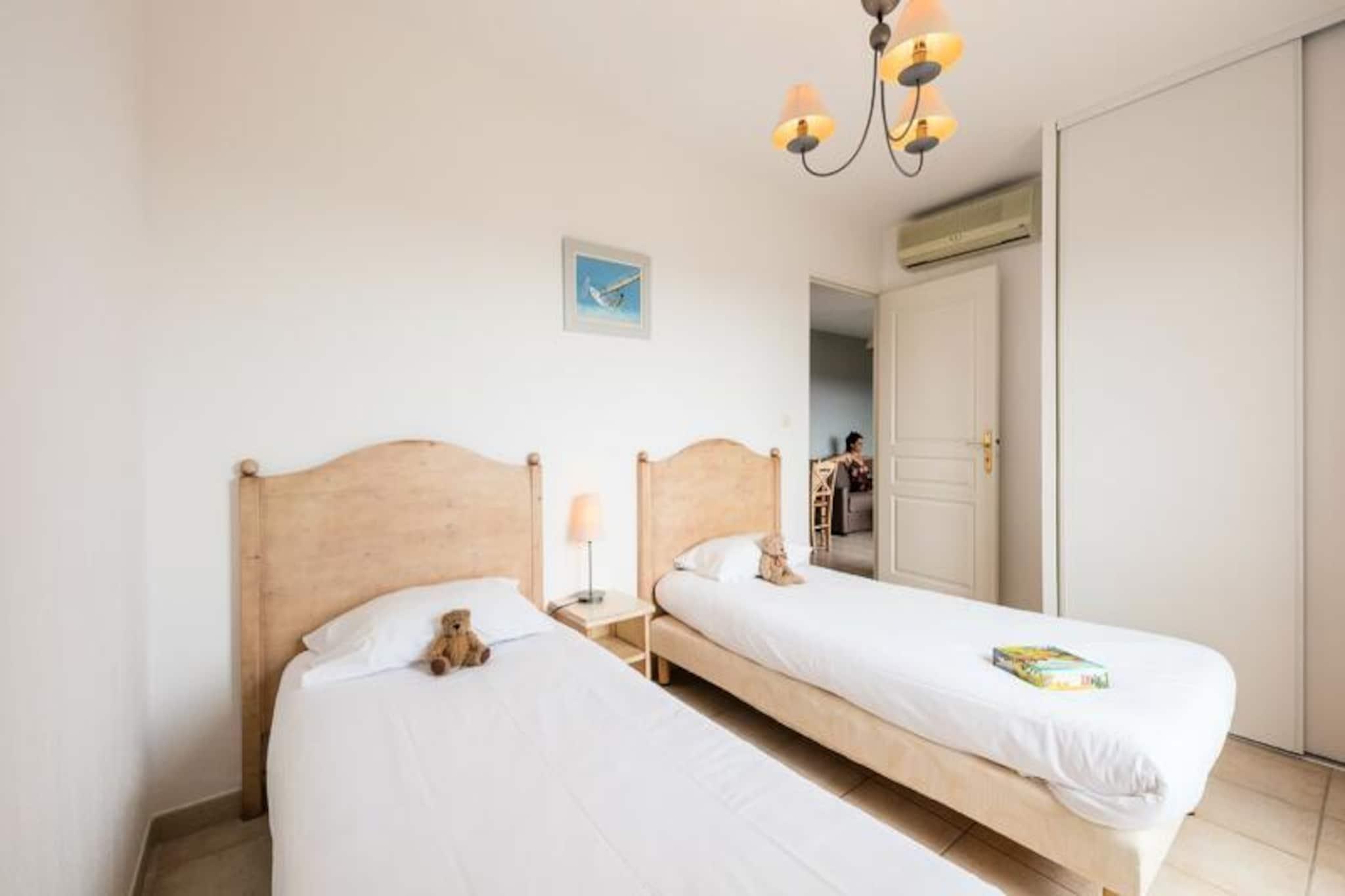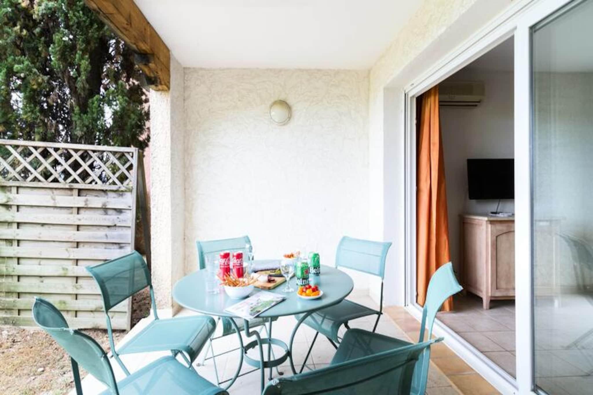 Set in a peaceful location, this residence offers spacious apartments ideal for families or small groups, with a capacity for up to 6 people. The accommodations include a living room with a trundle bed for 2, a bedroom with a double bed, and another with 2 single or bunk beds. Pets are allowed for an extra fee, and each apartment features a private terrace with beautiful views. WiFi, bed linen, and bathroom linen are included, while final cleaning is covered (excluding kitchen area and dishes). The residence is located just 1km from the charming village of Grimaud, one of the oldest towns in the Massif des Maures, and offers easy access to the stunning beaches of the Gulf, approximately 7km away. Nearby, you can explore the cultural and historical sites like the feudal castle, or enjoy outdoor activities such as water sports. The town’s lively atmosphere, with a wide selection of cafes and markets, ensures you will have plenty to explore. Each apartment features a fully equipped kitchenette with everything you need for self-catering, including a refrigerator and stovetop. Additional amenities include a bathroom with a shower, a baby kit (upon request), and free parking. During the summer season, guests can enjoy the outdoor swimming pool, and a buffet breakfast is available to start the day.
