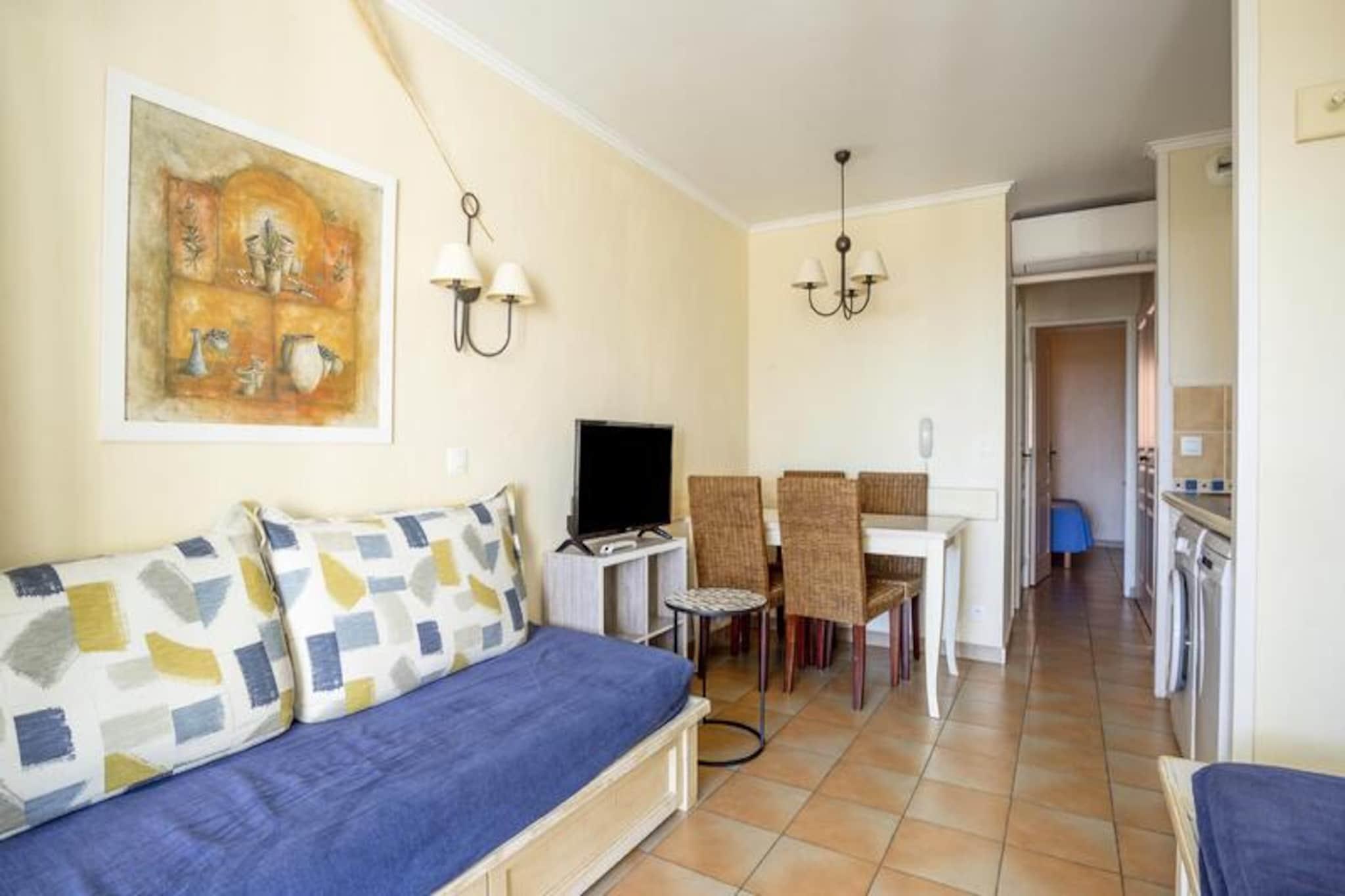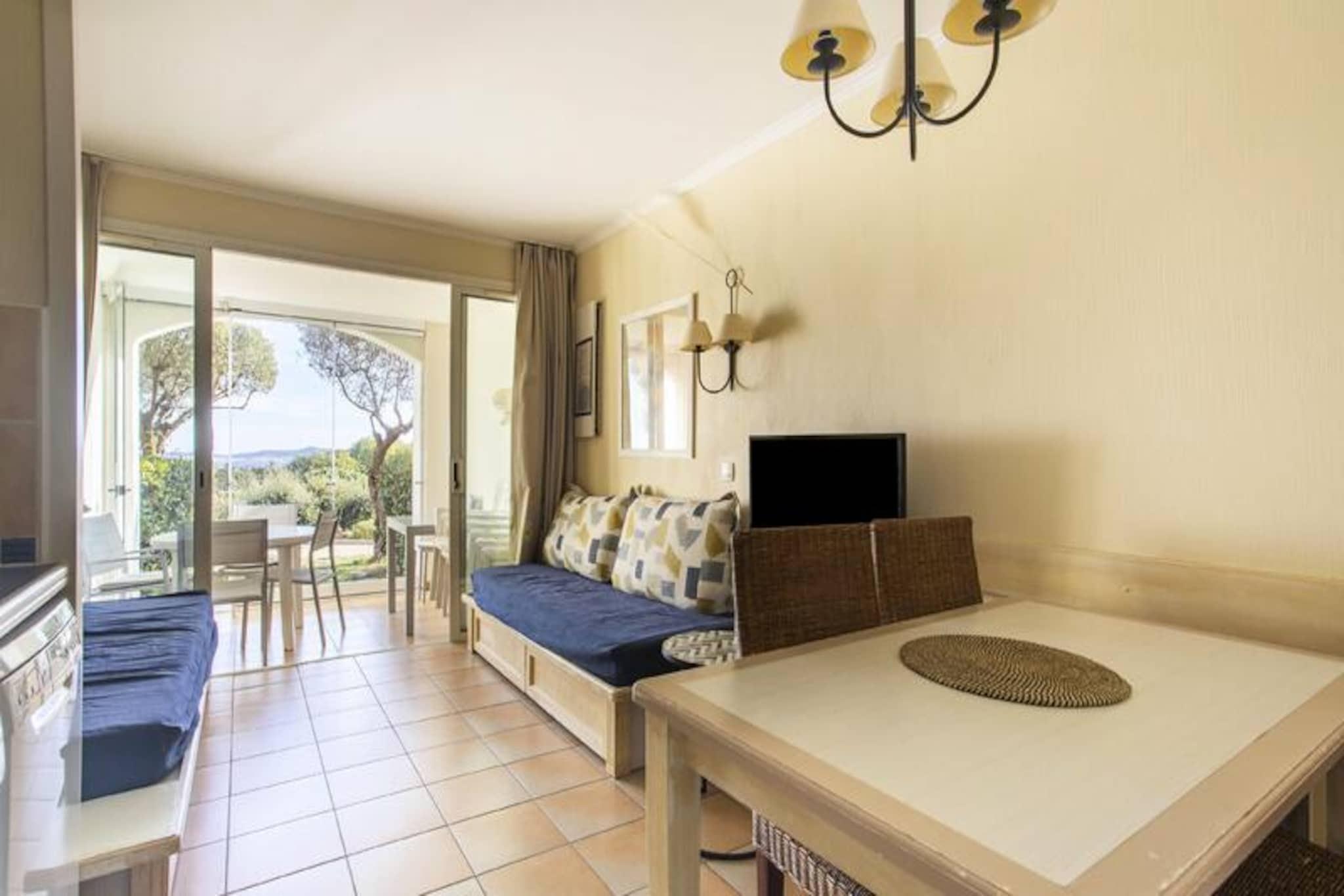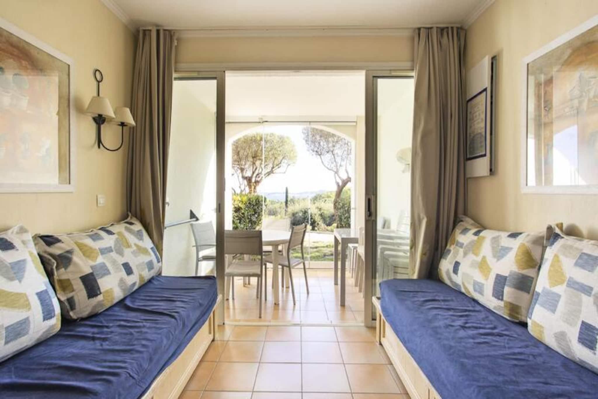 This spacious holiday apartment is located on the ground floor and features a comfortable bedroom with a double bed, plus a living room with two sofa beds, one with a trundle bed. It’s pet-friendly, offers free parking (subject to availability), and includes optional Wi-Fi. A baby kit is available on request, making it ideal for families. Bed linen and towels are available for an additional charge, and end-of-stay cleaning is mandatory. The property is located just 3 km from a sandy beach, offering easy access to local attractions such as the picturesque village of Grimaud, the bustling town of Saint-Tropez, and the fun-filled Luna Park. The surrounding area is perfect for leisurely walks, with popular destinations like Croix Valmer, Ramatuelle, and the beautiful Lavandou beach within reach. A car is recommended to fully explore the area. The apartment includes a fully equipped kitchen, a bathroom with a shower, and a separate toilet. Guests can enjoy the residence's amenities, including a large aquatic area with pools, sports facilities, and bike rentals during the summer months. A restaurant and supermarket on-site add to the convenience, making this a perfect base for exploring the region.