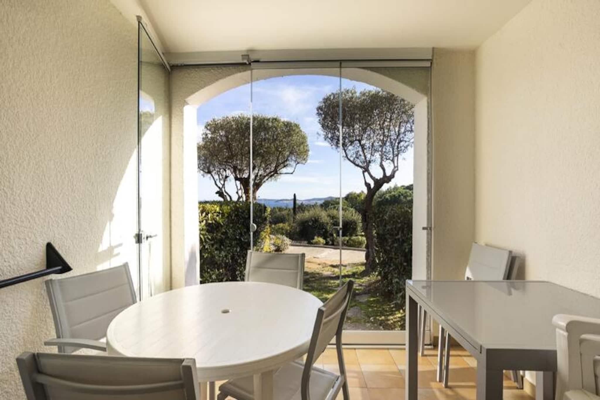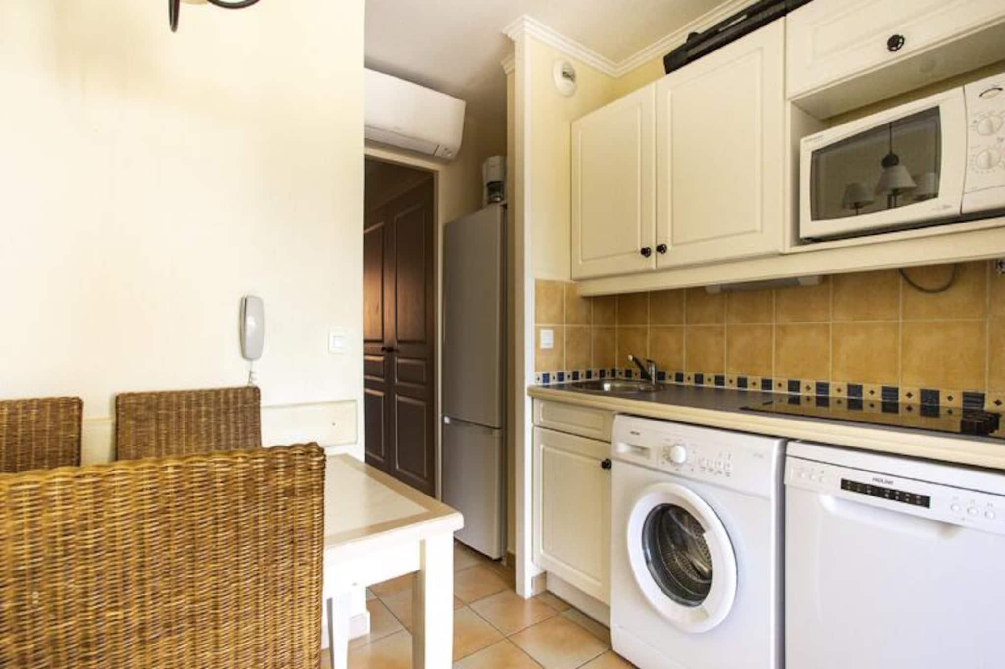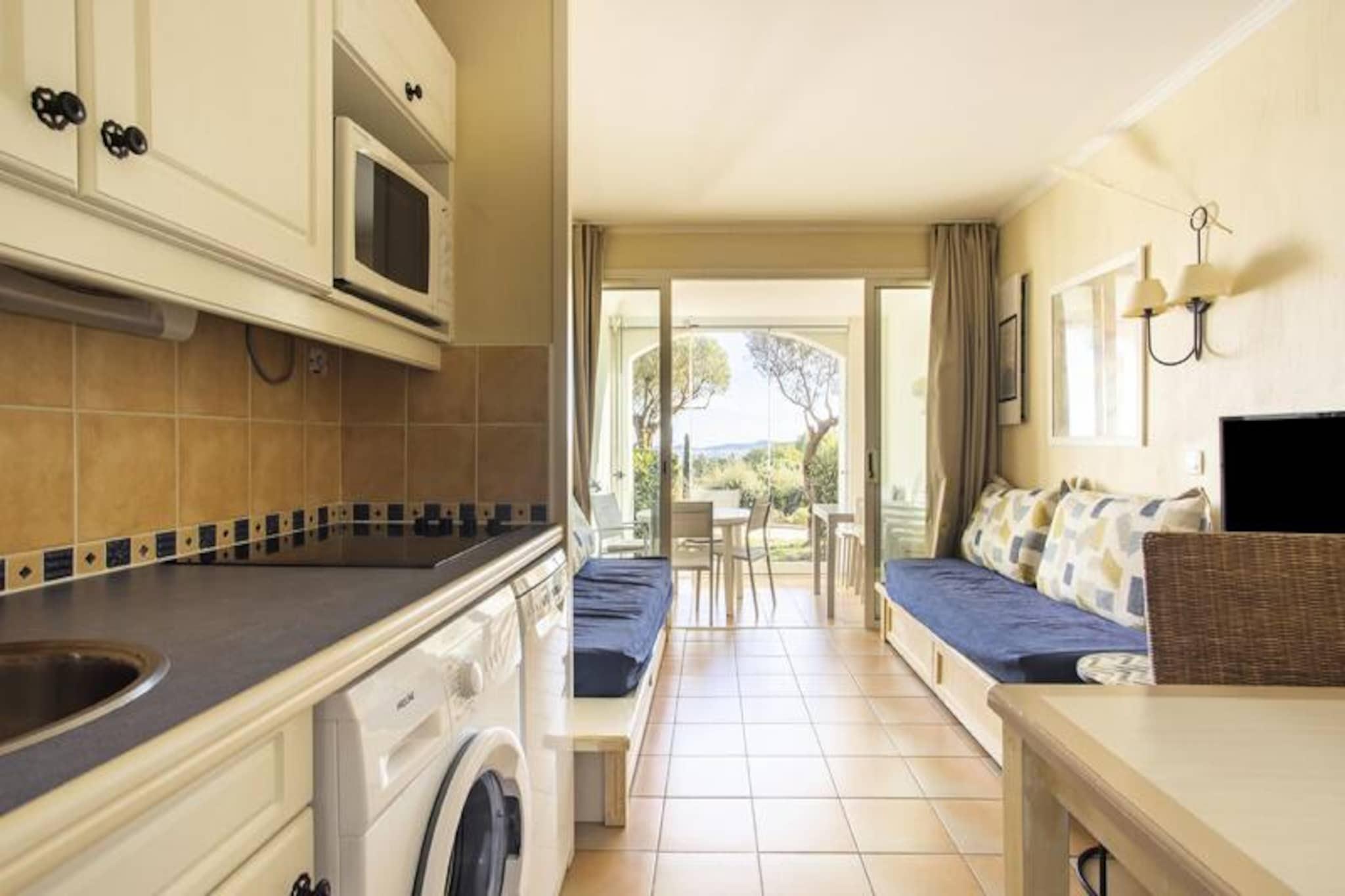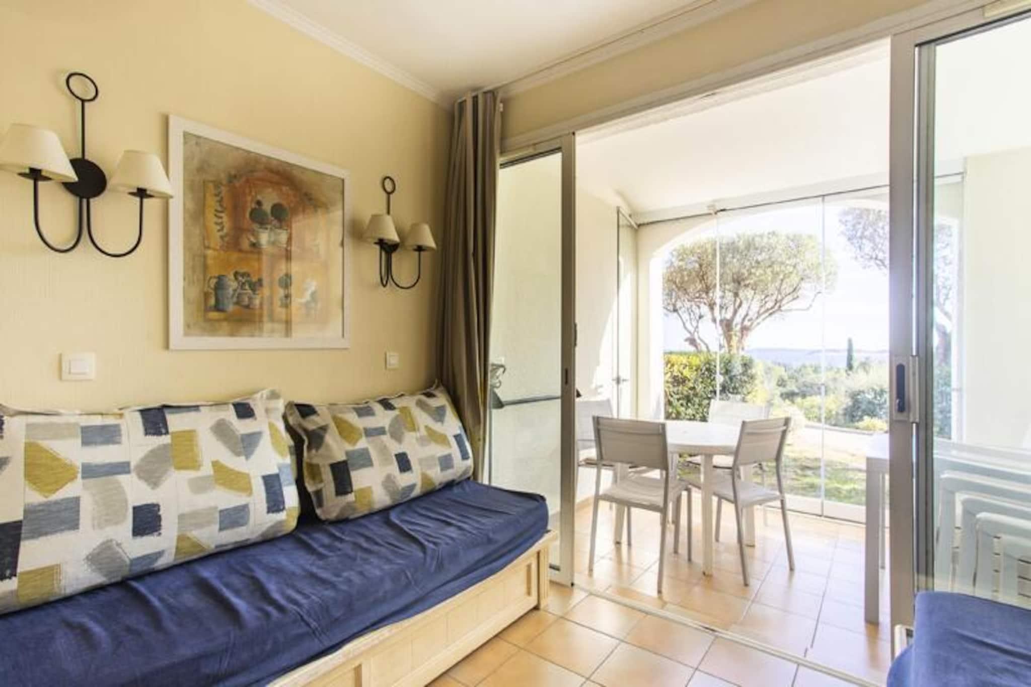 This spacious holiday apartment is located on the ground floor and features a comfortable bedroom with a double bed, plus a living room with two sofa beds, one with a trundle bed. It’s pet-friendly, offers free parking (subject to availability), and includes optional Wi-Fi. A baby kit is available on request, making it ideal for families. Bed linen and towels are available for an additional charge, and end-of-stay cleaning is mandatory. The property is located just 3 km from a sandy beach, offering easy access to local attractions such as the picturesque village of Grimaud, the bustling town of Saint-Tropez, and the fun-filled Luna Park. The surrounding area is perfect for leisurely walks, with popular destinations like Croix Valmer, Ramatuelle, and the beautiful Lavandou beach within reach. A car is recommended to fully explore the area. The apartment includes a fully equipped kitchen, a bathroom with a shower, and a separate toilet. Guests can enjoy the residence's amenities, including a large aquatic area with pools, sports facilities, and bike rentals during the summer months. A restaurant and supermarket on-site add to the convenience, making this a perfect base for exploring the region.
