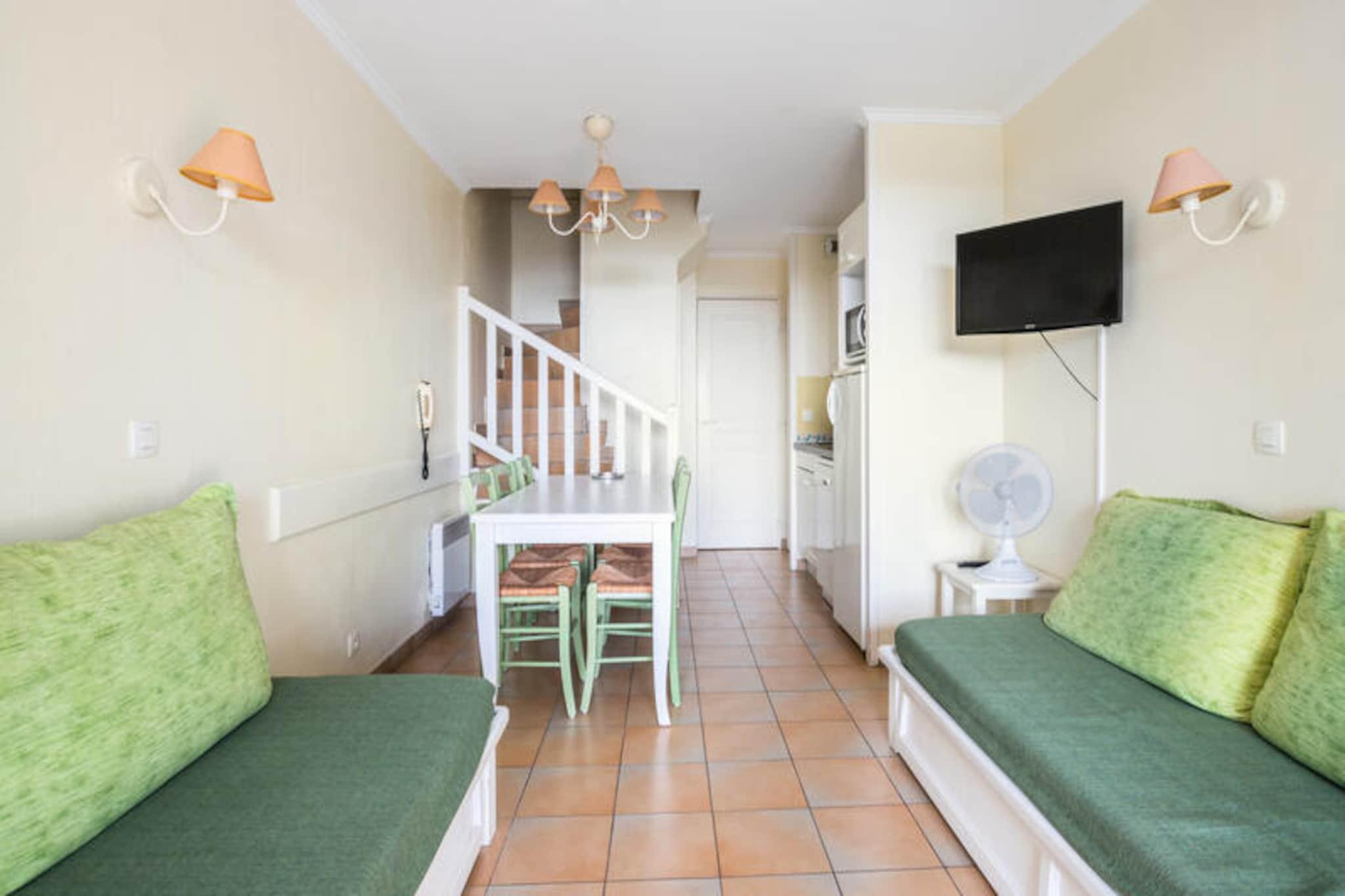 Set within a stunning 25-hectare landscaped park, this cozy apartment offers incredible views of the Mediterranean and accommodations for up to seven guests. The property includes a welcoming living room, a comfortable bedroom, a convenient cabin area, and a bathroom with a separate toilet. Two shared pools, including a wave pool with slides and a heated pool, provide endless fun and relaxation. Pets are welcome for an additional fee, making it a great choice for family getaways. Ideally located overlooking the Gulf of Saint-Tropez, this residence places you close to beautiful beaches, charming cafes, and vibrant local markets. Explore the scenic coastline, enjoy water sports, or visit the iconic town of Saint-Tropez for cultural and outdoor adventures. Whether you prefer leisure or exploration, this destination offers the perfect mix of relaxation and activity. The apartment features a well-equipped kitchen for easy meal preparation and comes with a maintenance kit for added convenience. Optional services like linen rentals, baby kits, and end-of-stay cleaning are available. Free parking is provided (subject to availability), and Wi-Fi access can be arranged for an additional fee. Thoughtfully designed with your comfort in mind, this property ensures a hassle-free and enjoyable stay.